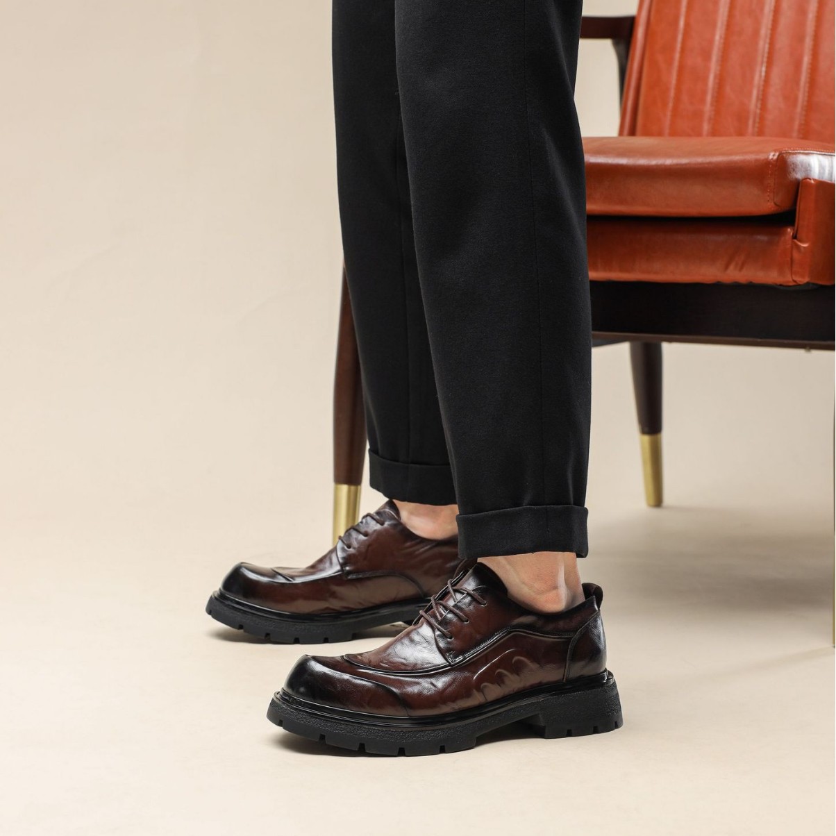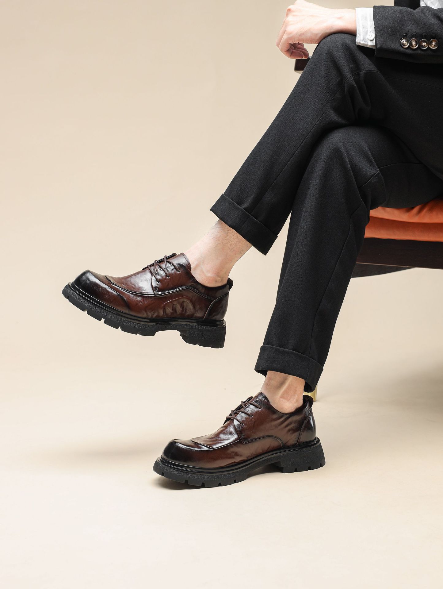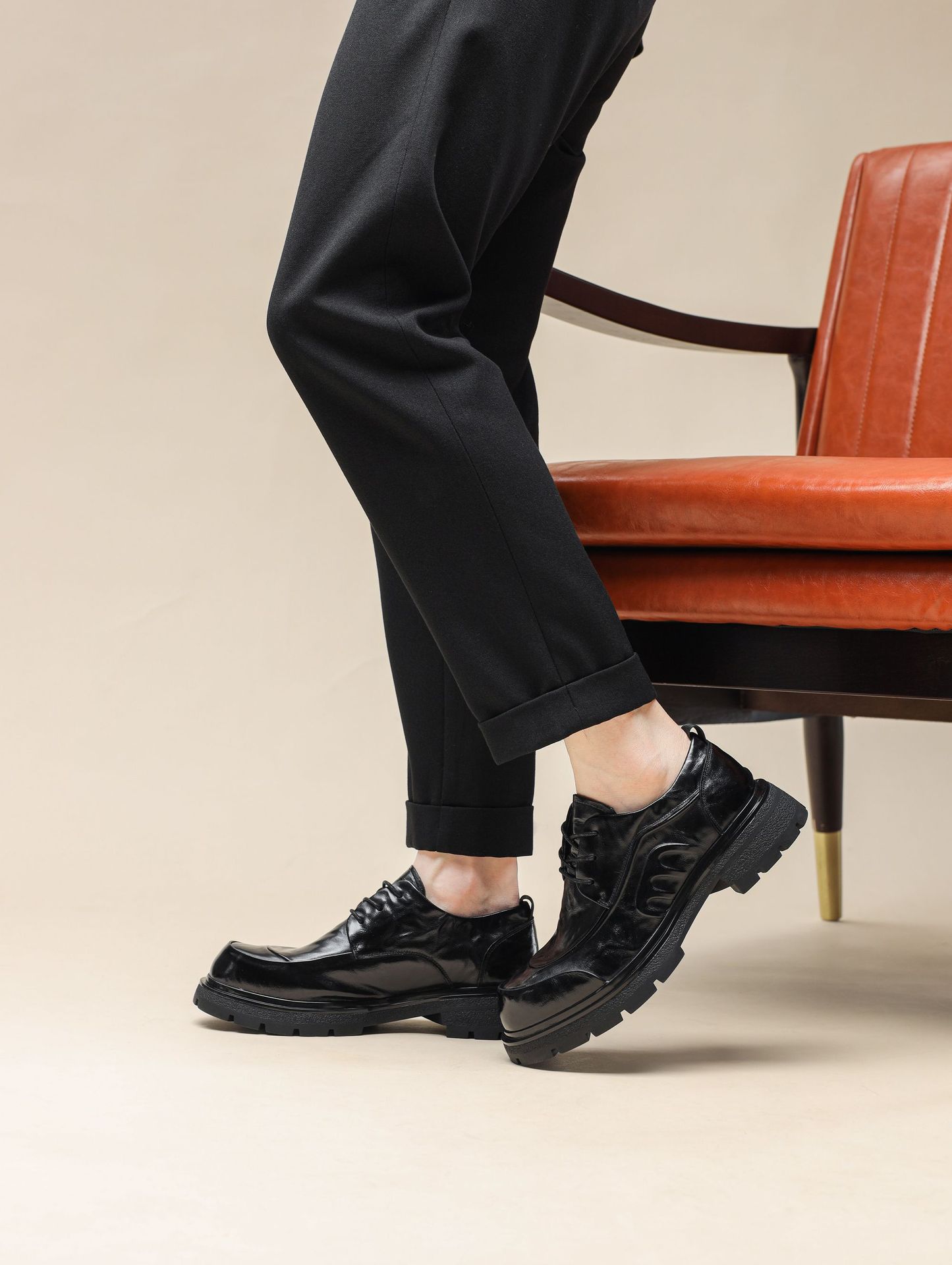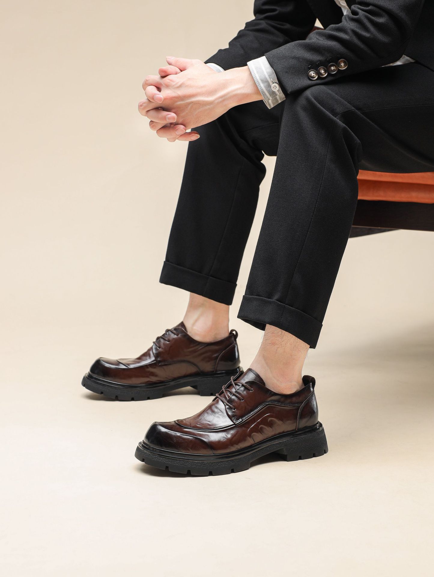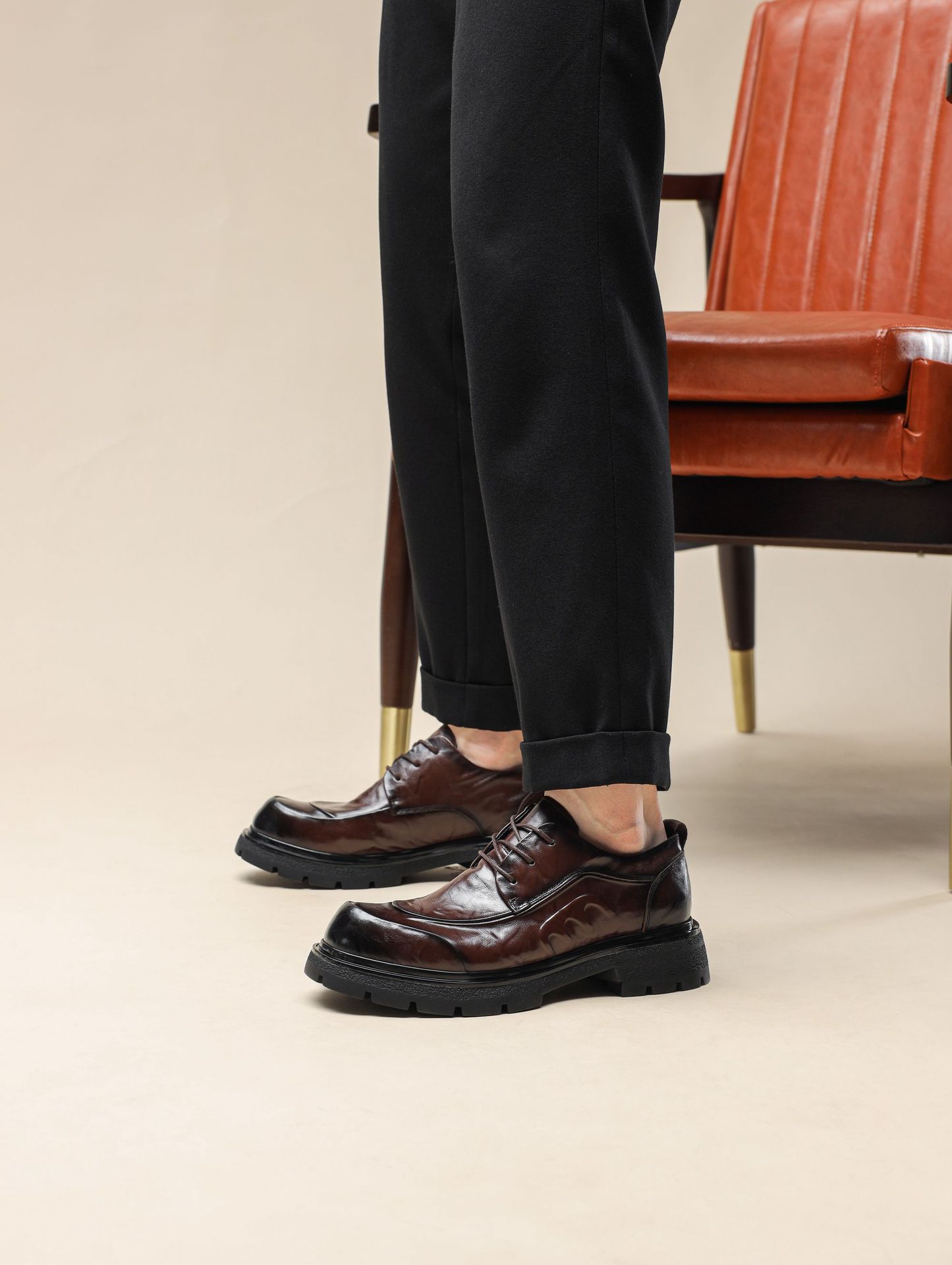 Giày da nam thiết kế dáng rộng, phần mũi vuông vức tạo cảm giác thoải mái cho bàn chân. Sản phẩm được làm từ chất liệu da bò mềm mại, bền đẹp theo thời gian. Đế giày dày vừa phải, giúp nâng đỡ tốt và phù hợp cho việc di chuyển nhiều. Bạn có thể dễ dàng phối cùng quần âu để đi làm hoặc kết hợp với quần jeans cho những dịp gặp gỡ thường ngày. Sử dụng cùng bộ đồ công sở hoặc trang phục đơn giản đều rất phù hợp. | Tên sản phẩm: Giày Da Nam Chất Liệu Da Bò Đế Cao - Giày Dép Nam | Mã sản phẩm: K3507 - Giá: 1.350.000đ | Mã nhà sản xuất: WEDS-G04Hình ảnh sản phẩm