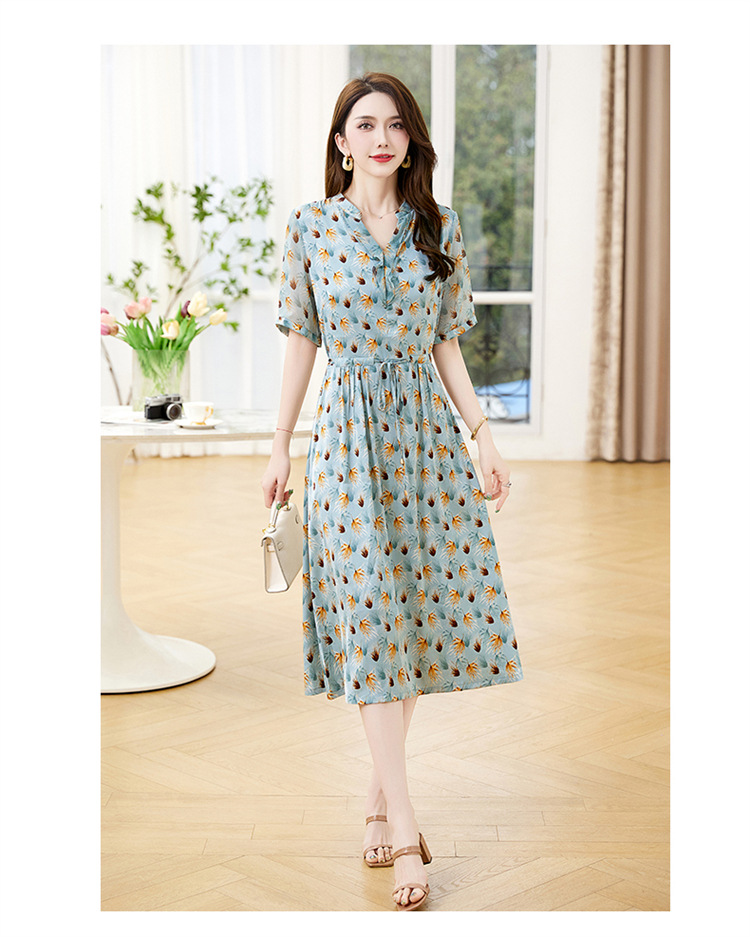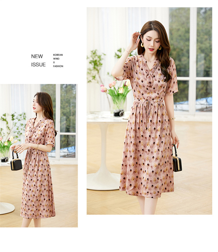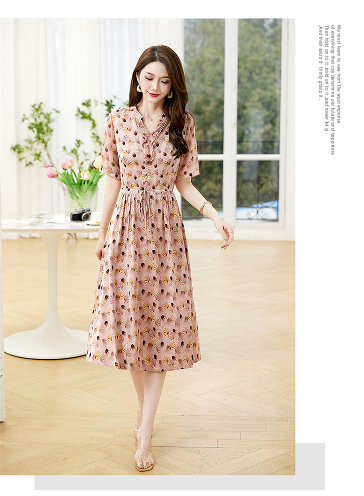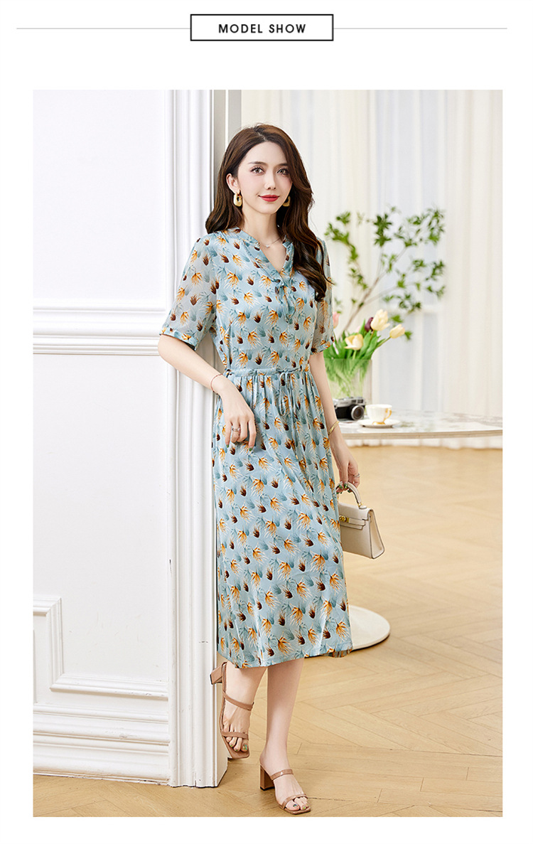 Đầm thiết kế kiểu dáng cổ chữ V thon gọn, kết hợp điểm nhấn là dây buộc nơ dịu dàng. Trên nền vải in họa tiết hoa nhỏ tinh tế, các đường viền vải xếp lớp tạo nên sự mềm mại, sinh động. Chất vải mềm nhẹ, thoáng mát, mang lại cảm giác dễ chịu khi mặc. Sản phẩm phù hợp cho những ngày hè, dễ dàng phối cùng giày sandal hoặc dép mỏng để tạo vẻ thanh thoát. | Tên sản phẩm: Váy Đầm Liền Thân Nữ Họa Tiết Hoa Cổ Chữ V Hàng Mùa Hè - Thời Trang Nữ | Mã sản phẩm: K3524 - Giá: 1.350.000đ | Mã nhà sản xuất: HADG-G04Hình ảnh sản phẩm