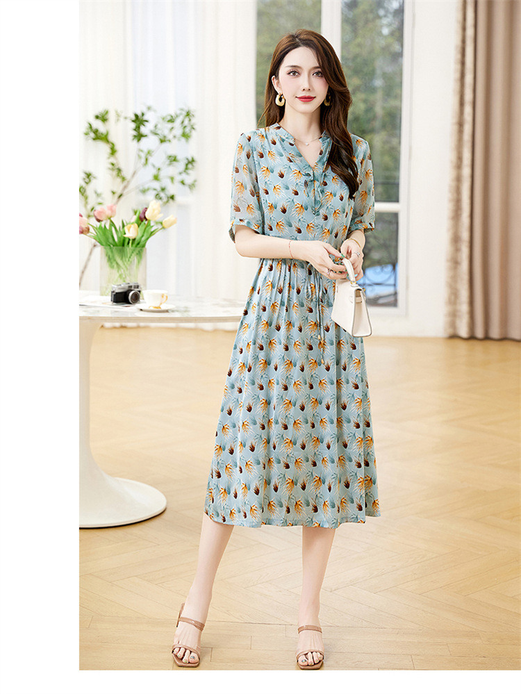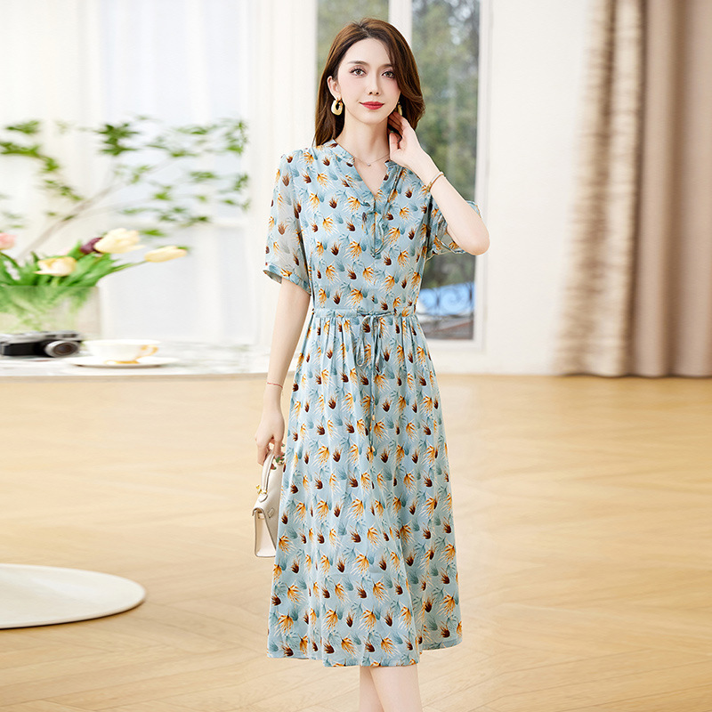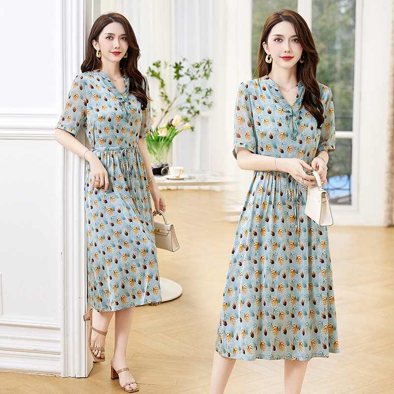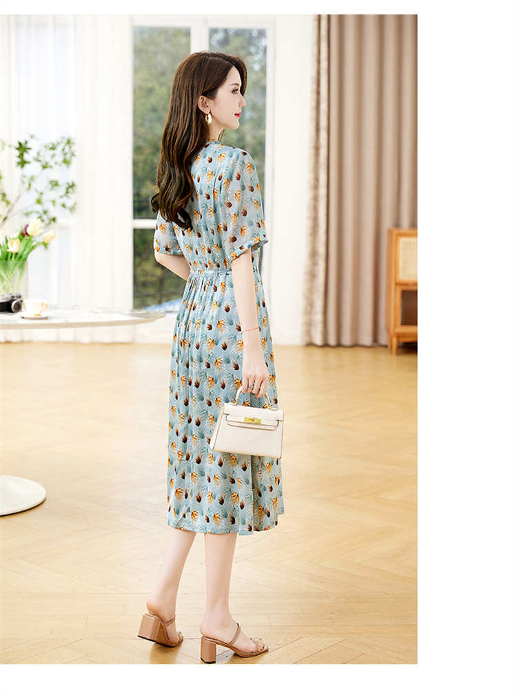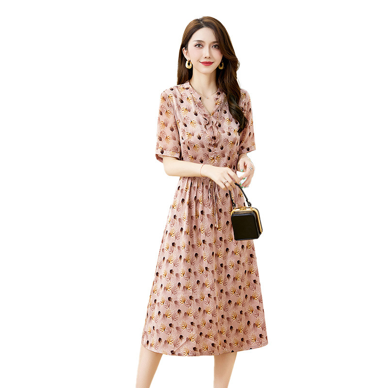 Đầm thiết kế kiểu dáng cổ chữ V thon gọn, kết hợp điểm nhấn là dây buộc nơ dịu dàng. Trên nền vải in họa tiết hoa nhỏ tinh tế, các đường viền vải xếp lớp tạo nên sự mềm mại, sinh động. Chất vải mềm nhẹ, thoáng mát, mang lại cảm giác dễ chịu khi mặc. Sản phẩm phù hợp cho những ngày hè, dễ dàng phối cùng giày sandal hoặc dép mỏng để tạo vẻ thanh thoát. | Tên sản phẩm: Váy Đầm Liền Thân Nữ Họa Tiết Hoa Cổ Chữ V Hàng Mùa Hè - Thời Trang Nữ | Mã sản phẩm: K3524 - Giá: 1.350.000đ | Mã nhà sản xuất: HADG-G04Hình ảnh sản phẩm