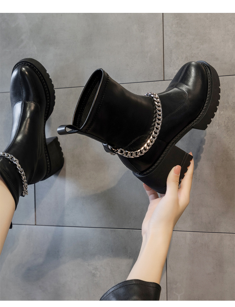 Giày bốt nữ 2023 với thiết kế hiện đại, tiện lợi và phong cách. Sản phẩm có thể tháo rời dây xích, cho phép bạn biến tấu thành nhiều kiểu dáng khác nhau. Đế dày chắc chắn giúp bạn tự tin di chuyển trên mọi địa hình trong mùa thu đông. Đôi giày này kết hợp hoàn hảo giữa sự thoải mái và thời trang, thích hợp cho nhiều dịp khác nhau, từ đi làm đến dạo phố. Dễ dàng phối với nhiều loại trang phục, bạn chỉ cần kết hợp cùng quần jeans hoặc chân váy để tạo nên phong cách riêng. | Tên sản phẩm: Boot Cổ Thấp Nữ Đế Cao Hàng Mùa Xuân Thu Đông - Giày Dép Nữ | Mã sản phẩm: K3556 - Giá: 1.810.000đ | Mã nhà sản xuất: WEDSH-G05Hình ảnh sản phẩm