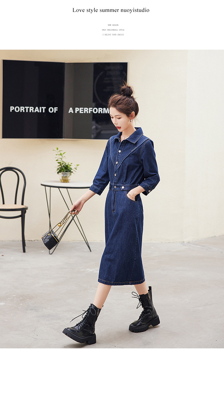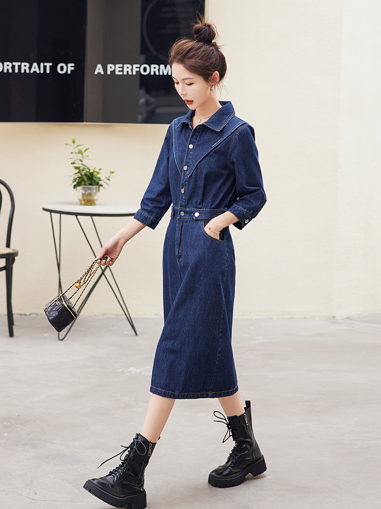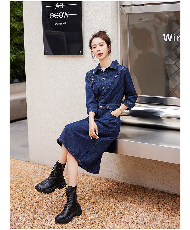 Chiếc váy jeans mới cho mùa thu năm nay, được thiết kế với điểm nhấn là các mảnh ghép tạo hình khối nổi bật. Kiểu dáng bảy phần tay và chiều dài váy phù hợp, dễ dàng phối cùng nhiều loại áo khác nhau. Sản phẩm thích hợp để mặc khi đi làm hoặc dạo phố. Bạn có thể kết hợp với áo thun, giày thể thao cho phong cách năng động, hoặc mặc cùng áo sơ mi nhẹ nhàng để tạo vẻ thanh lịch. | Tên sản phẩm: Váy Đầm Liền Thân Nữ Chất Liệu Jean Bò Hàng Mùa Xuân Thu Đông - Thời Trang Nữ | Mã sản phẩm: K3616 - Giá: 1.520.000đ | Mã nhà sản xuất: HADG-G04Hình ảnh sản phẩm
