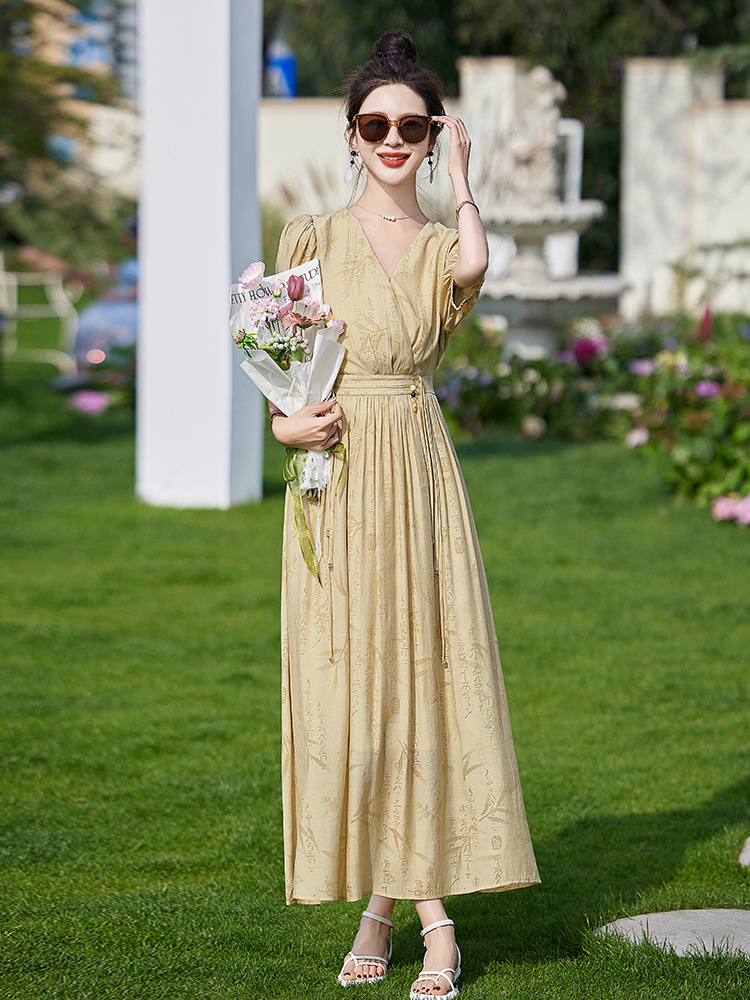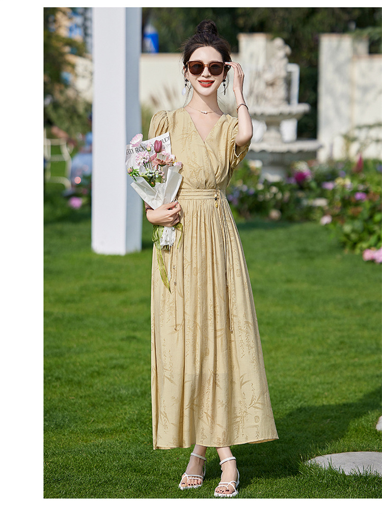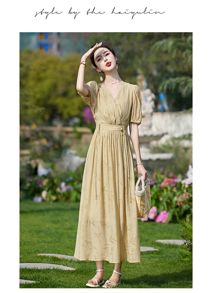 Chiếc đầm dành cho những ngày hè, được điểm xuyết họa tiết in bắt mắt. Cổ chữ V tôn dáng, kết hợp cùng thiết kế eo cao và phần chân váy xòe nhẹ dáng chữ A, giúp tạo hình thanh thoát. Kiểu dáng ôm gọn cơ thể một cách nhẹ nhàng, phù hợp cho nhiều dịp đi chơi hàng ngày. Mặc cùng dép sandal hoặc giày búp bê đều rất hợp. Bạn có thể giặt máy và phơi khô một cách dễ dàng. | Tên sản phẩm: Váy Đầm Liền Thân Nữ Dáng Chữ A Họa Tiết Hoa Cổ Chữ V Hàng Mùa Hè Phục Cổ Cổ Điển - Thời Trang Nữ | Mã sản phẩm: K3623 - Giá: 1.600.000đ | Mã nhà sản xuất: HADG-G04Hình ảnh sản phẩm