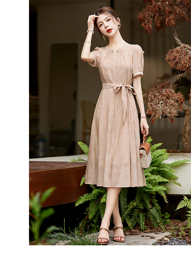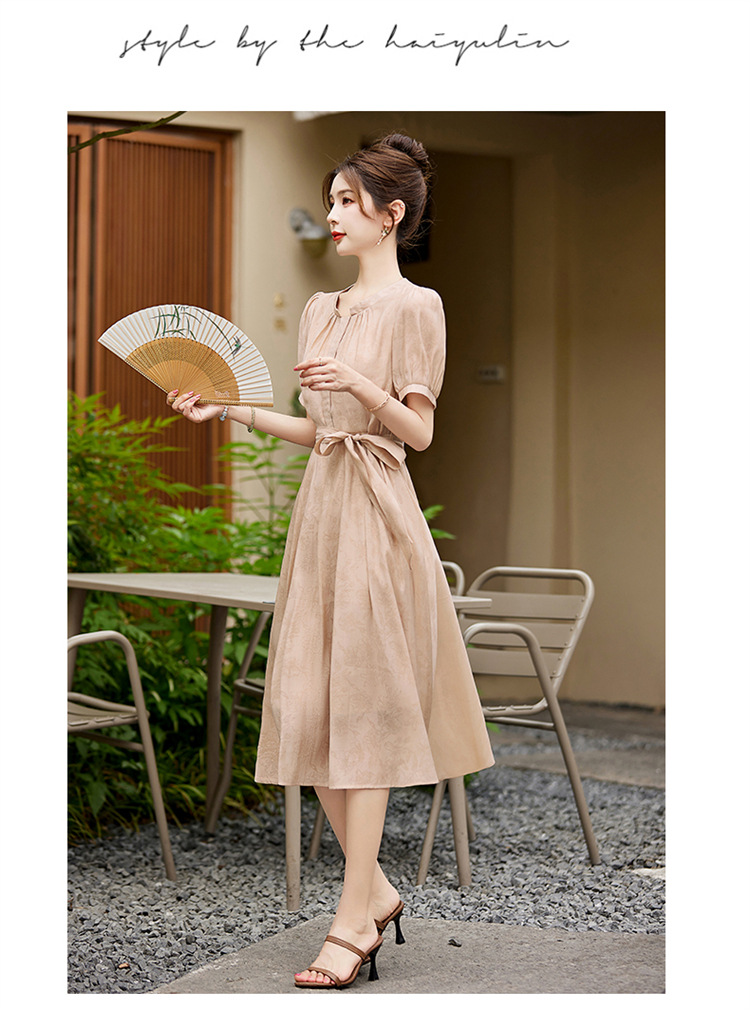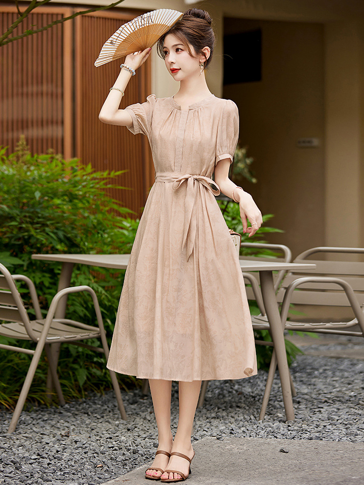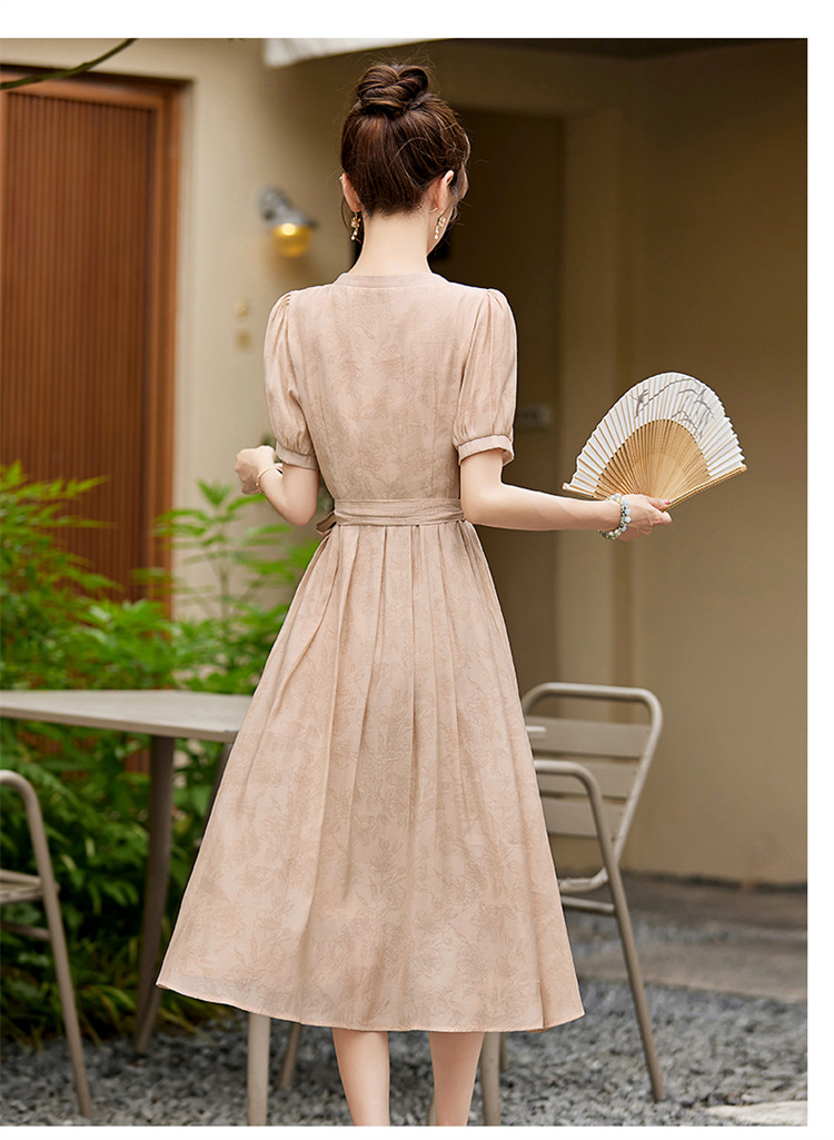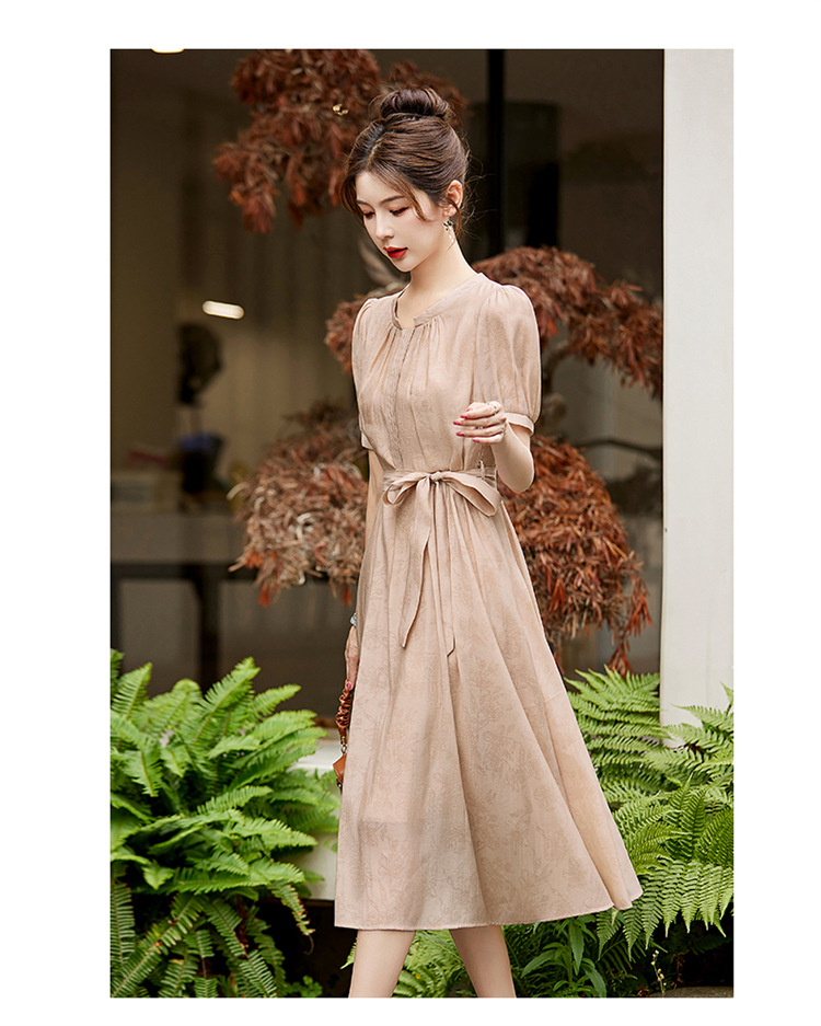 Chiếc đầm dành cho những buổi trà chiều, mang phong cách nhẹ nhàng. Đầm có cổ thuyết thanh lịch, tay ngắn và thân dài. Điểm nhấn là dây thắt nơ eo, giúp tôn lên vòng h. Họa tiết in trên vải mềm mại, bay bổng. Bạn có thể mặc đi dạo, dự tiệc nhẹ hay các buổi gặp mặt. Phù hợp cho mùa hè với chất liệu thoáng mát. | Tên sản phẩm: Váy Đầm Liền Thân Dáng Dài Nữ Ngắn Tay Họa Tiết Hoa Hàng Mùa Hè - Thời Trang Nữ | Mã sản phẩm: K3626 - Giá: 1.390.000đ | Mã nhà sản xuất: HADG-G04Hình ảnh sản phẩm