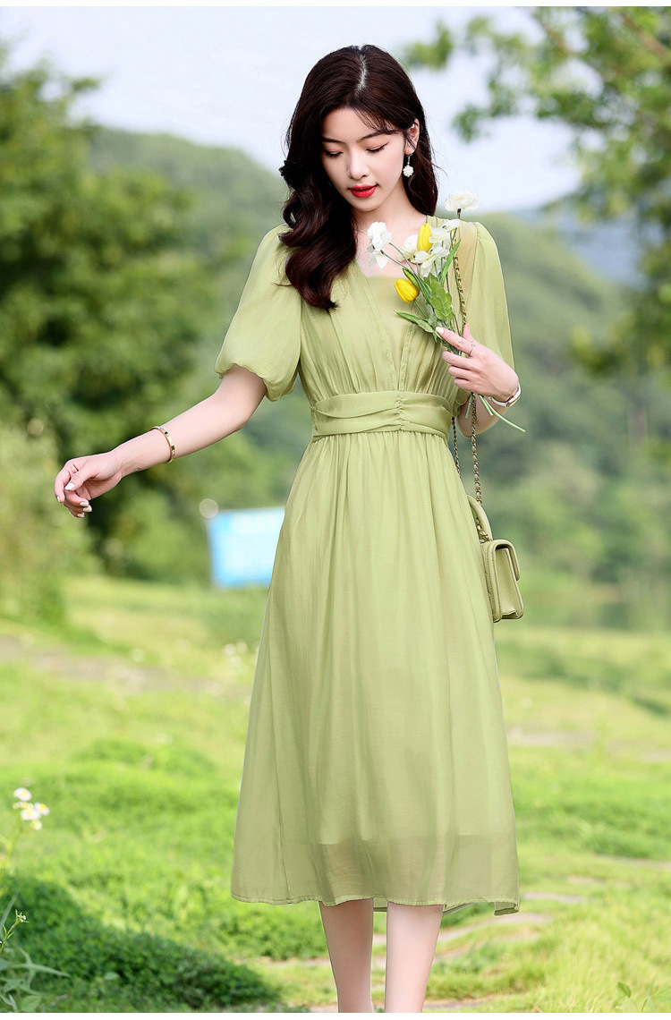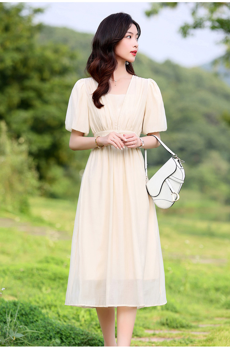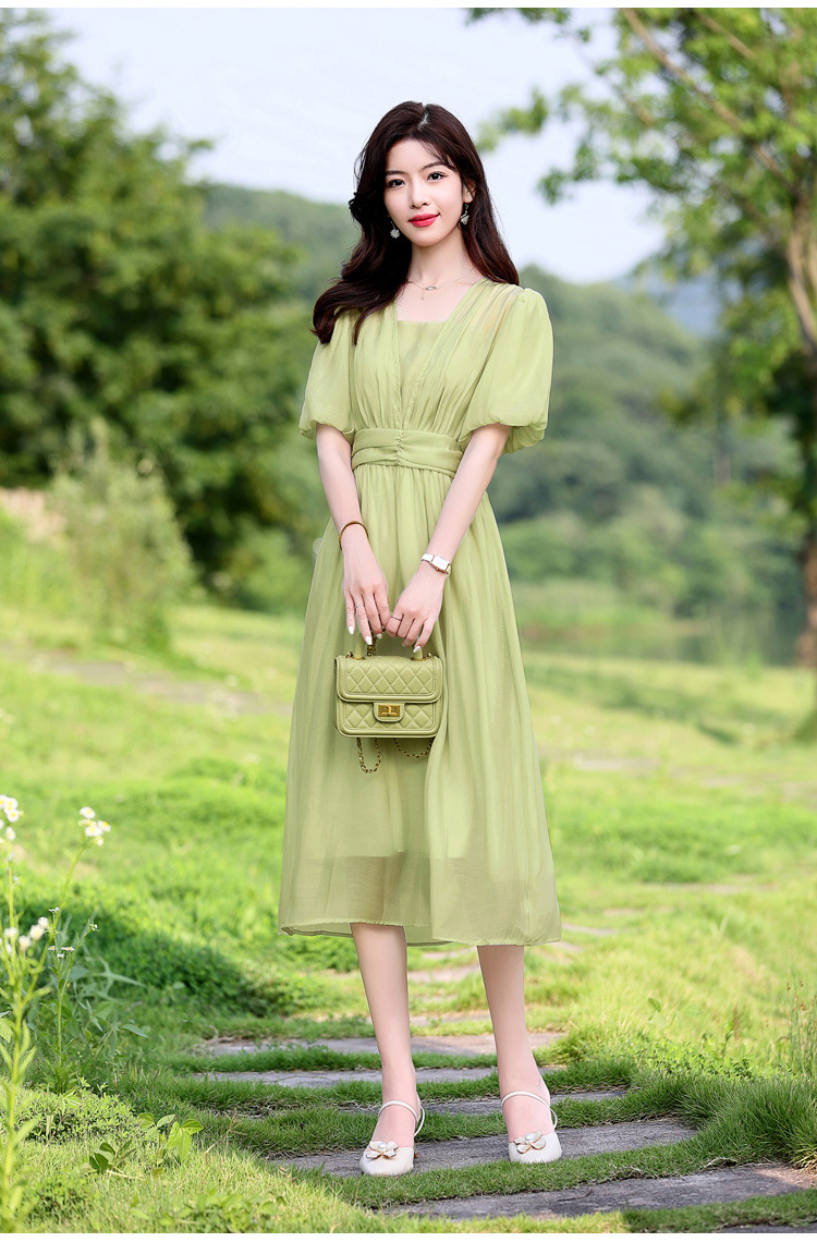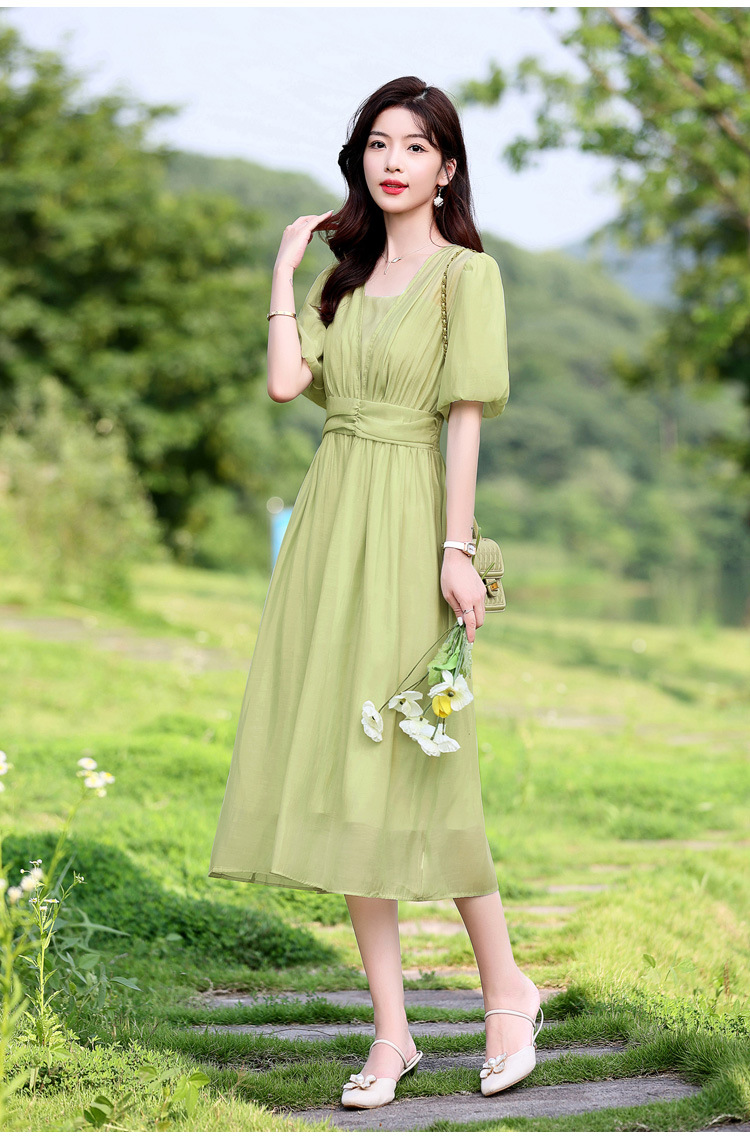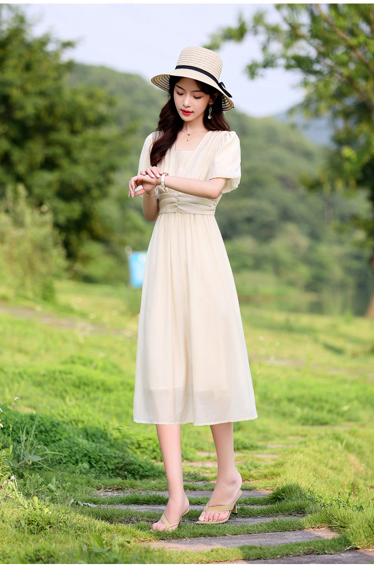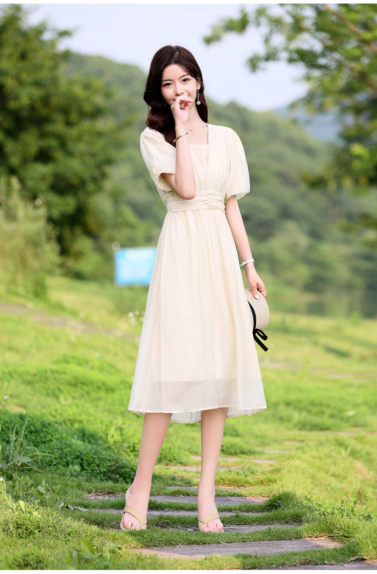 Chiếc đầm dạo phố mới cho mùa hè, mang phong cách tươi mát và ngọt ngào. Thiết kế có phần bồng bềnh ở tay áo, cổ vuông thanh lịch và phần eo cao giúp tôn dáng. Chất vải mềm mại, thoáng mát, thích hợp mặc đi chơi hay dạo phố. Dễ dàng phối cùng giày bệt hoặc giày có qu. Một lựa chọn nhẹ nhàng và nữ tính cho những ngày hè năng động. | Tên sản phẩm: Váy Đầm Liền Thân Nữ Ngắn Tay Hàng Mùa Hè - Thời Trang Nữ | Mã sản phẩm: K3746 - Giá: 1.300.000đ | Mã nhà sản xuất: HADG-G04Hình ảnh sản phẩm