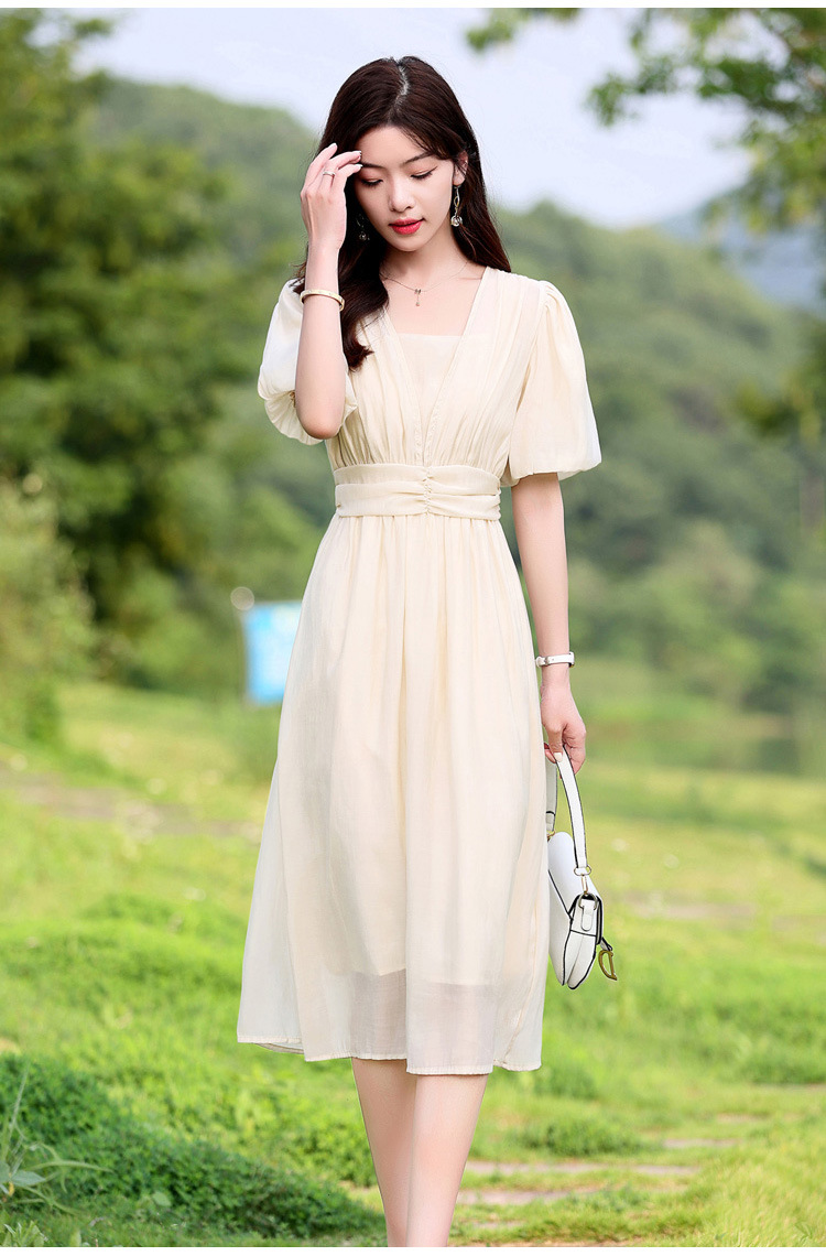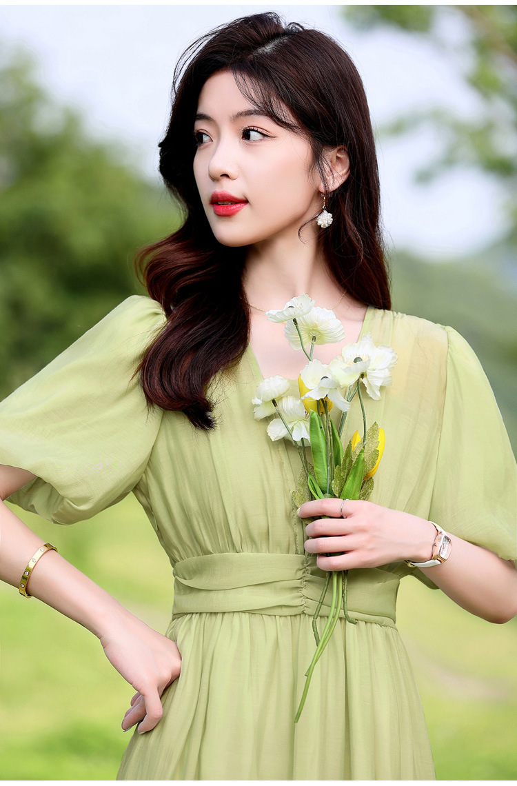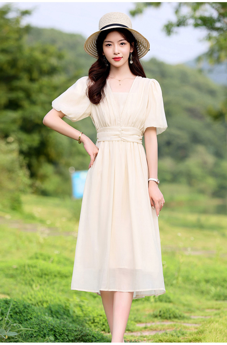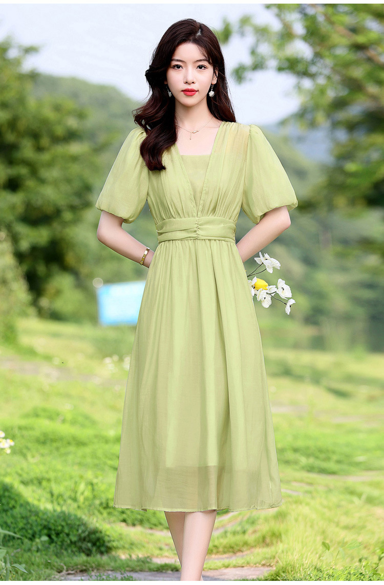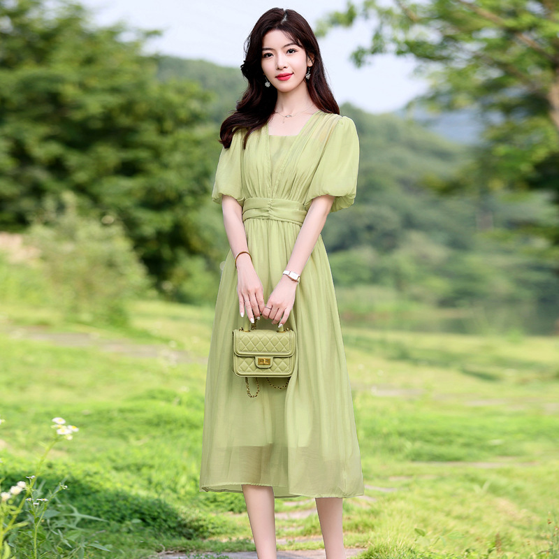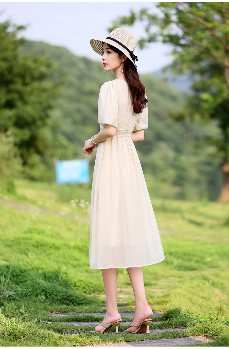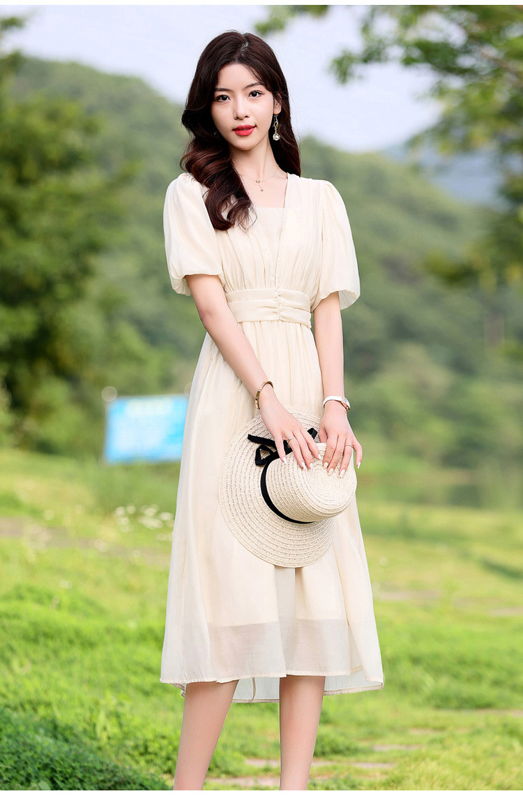 Chiếc đầm dạo phố mới cho mùa hè, mang phong cách tươi mát và ngọt ngào. Thiết kế có phần bồng bềnh ở tay áo, cổ vuông thanh lịch và phần eo cao giúp tôn dáng. Chất vải mềm mại, thoáng mát, thích hợp mặc đi chơi hay dạo phố. Dễ dàng phối cùng giày bệt hoặc giày có qu. Một lựa chọn nhẹ nhàng và nữ tính cho những ngày hè năng động. | Tên sản phẩm: Váy Đầm Liền Thân Nữ Ngắn Tay Hàng Mùa Hè - Thời Trang Nữ | Mã sản phẩm: K3746 - Giá: 1.300.000đ | Mã nhà sản xuất: HADG-G04Hình ảnh sản phẩm