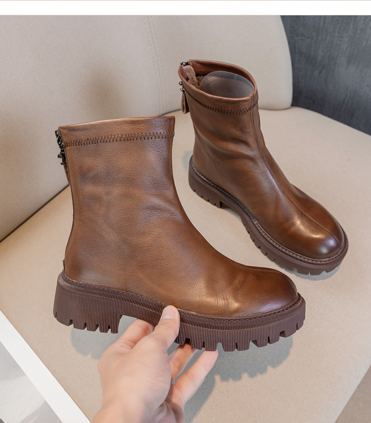Đôi bốt cổ thấp này có kiểu dáng đơn giản, dễ dàng phối hợp với nhiều trang phục khác nhau. Sản phẩm được làm từ chất liệu da thật, cho cảm giác mềm mại và bền bỉ. Phần đế bằng phẳng và hơi dày giúp nâng đỡ bàn chân thoải mái cho cả ngày dài. Bạn có thể mang đôi bốt này cùng quần jeans, váy hay quần tây để tạo nên những phong cách khác nhau. | Tên sản phẩm: Boot Cổ Thấp Nữ Chất Liệu Da Bò Đế Cao - Giày Dép Nữ | Mã sản phẩm: K3755 - Giá: 2.480.000đ | Mã nhà sản xuất: WEDSH-G05Hình ảnh sản phẩm