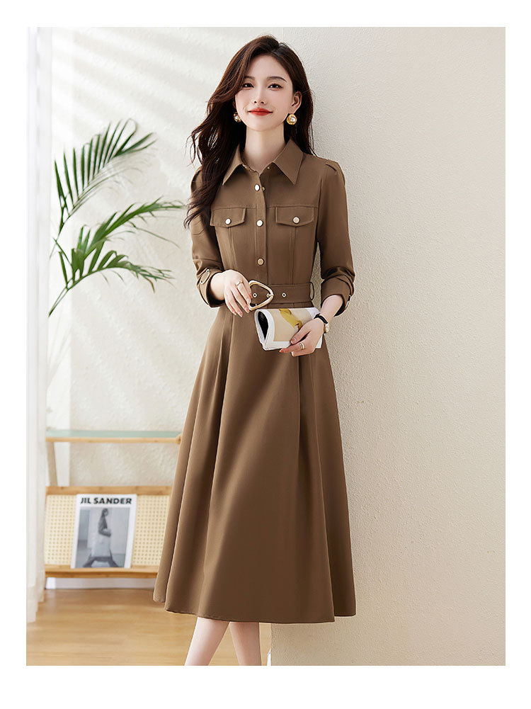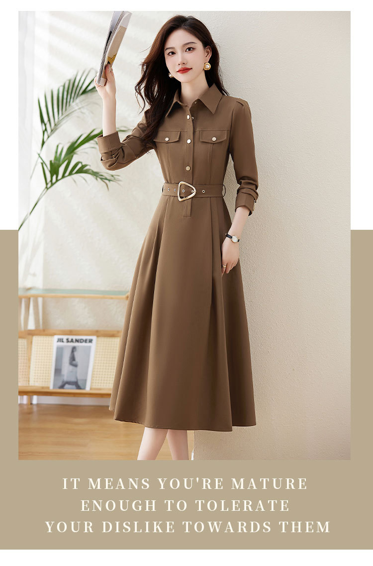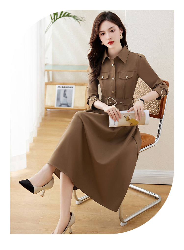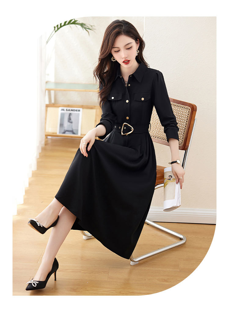 Chiếc váy này có cổ bẻ kiểu áo polo, tạo vẻ ngoài lịch sự và năng động. Thiết kế ôm nhẹ phần eo và phần eo được may cao lên, giúp tôn dáng người mặc một cách tự nhiên. Váy có màu trơn, dễ dàng phối hợp với nhiều loại áo và giày dép khác nhau. Chất vải mềm mại, thoáng mát, phù hợp cho việc mặc đi làm hoặc dạo phố. Có thể giặt máy và ủi ở nhiệt độ thích hợp để giữ dáng váy được bền đẹp. | Tên sản phẩm: Váy Đầm Liền Thân Nữ Hàng Mùa Xuân Thu Đông - Thời Trang Nữ | Mã sản phẩm: K3863 - Giá: 1.540.000đ | Mã nhà sản xuất: HADG-G04Hình ảnh sản phẩm