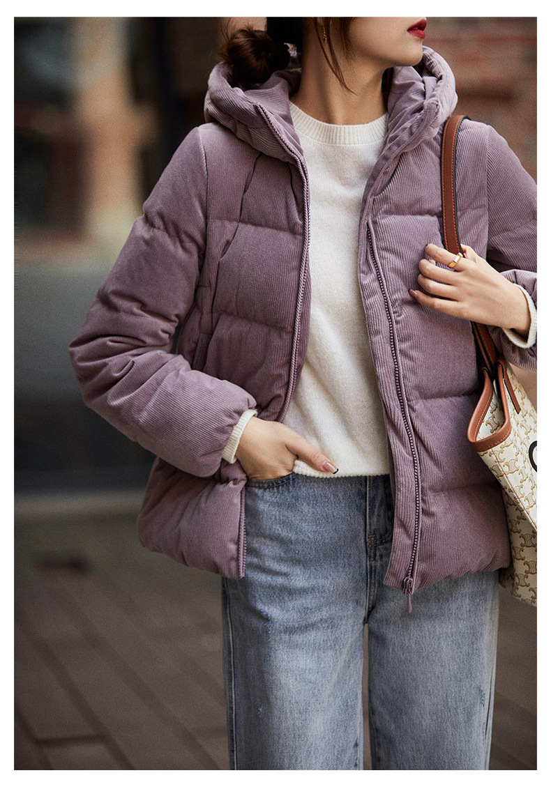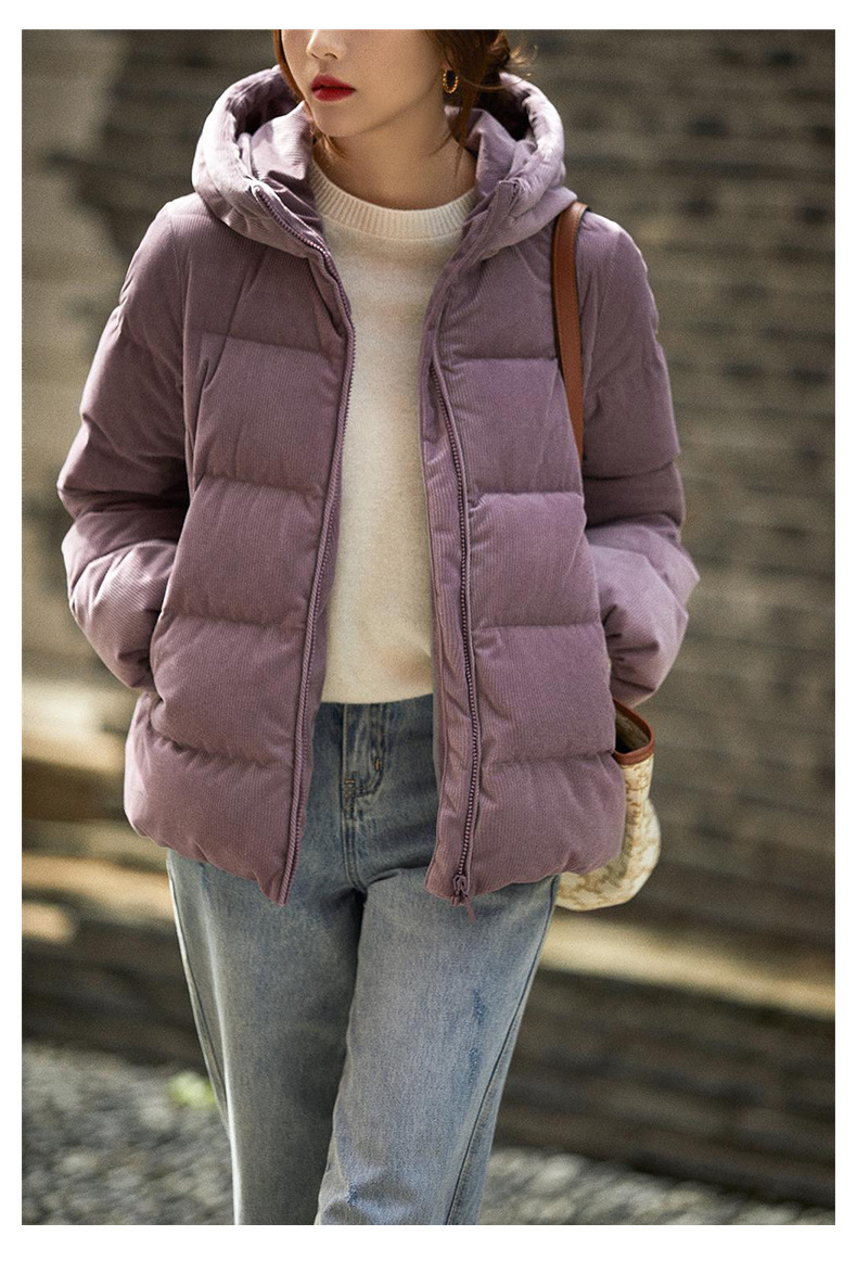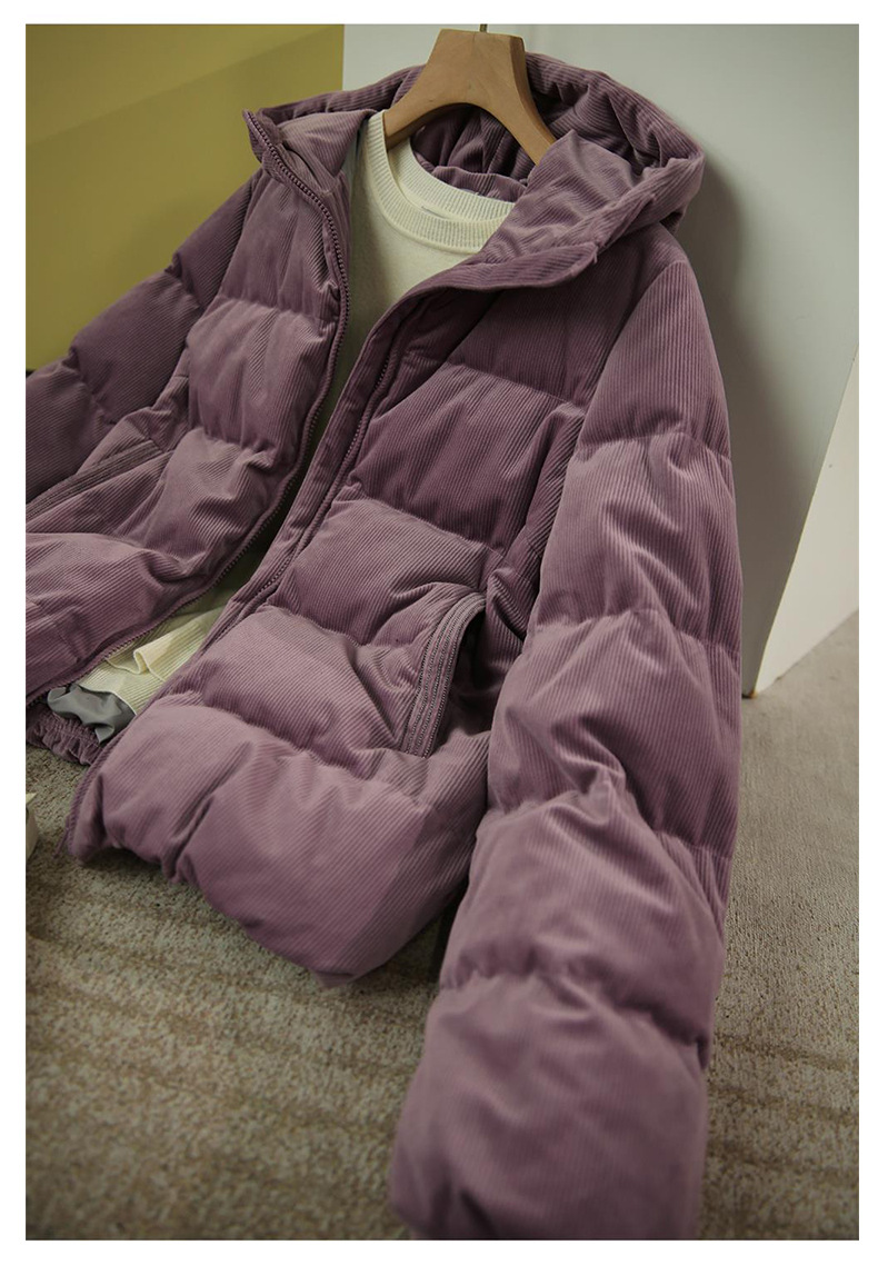 Áo khoác dành cho nữ, có mũ trùm và chất liệu thun mềm mại, được nhuộm màu tím đẹp mắt. Lớp bên trong chứa nhiều lông vũ tơ ngỗng trắng, mang lại cảm giác ấm áp và nhẹ nhàng cho những ngày thời tiết lạnh. Kiểu dáng mang phong cách trẻ trung, hiện đại, dễ dàng kết hợp cùng nhiều loại trang phục khác nhau. Sản phẩm phù hợp để mặc khi đi chơi, đi làm hoặc trong các sinh hoạt hằng ngày. | Tên sản phẩm: Áo Khoác Nữ Mũ Liền Dày Ấm Hàng Mùa Xuân Thu Đông - Thời Trang Nữ | Mã sản phẩm: K3878 - Giá: 2.200.000đ | Mã nhà sản xuất: DODG-G05Hình ảnh sản phẩm