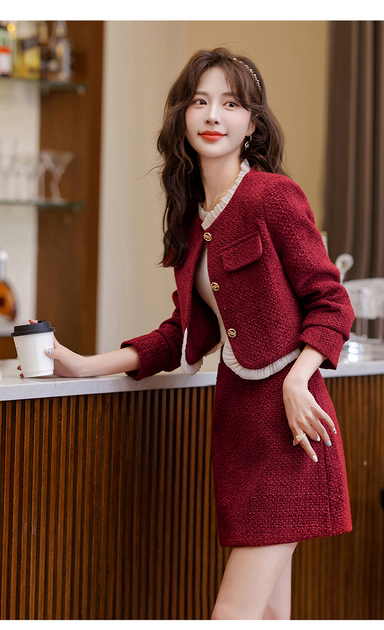 Bộ trang phục hai mảnh dành cho nàng công sở, kết hợp áo khoác cùng chân váy ngắn. Thiết kế theo phong cách thanh lịch, tôn vinh vẻ đẹp dịu dàng. Chất vải dày dặn, giữ form đẹp suốt ngày dài. Dễ dàng phối cùng áo thun bên trong và giày cao gót. Phù hợp cho các buổi gặp mặt, đi làm hay dạo phố. Bạn chỉ cần mặc nguyên bộ và chọn phụ kiện phù hợp là đã có set đồ hoàn chỉnh. | Tên sản phẩm: Đồ Bộ Nữ Cả Bộ 2 Món Hàng Mùa Xuân Thu Đông - Thời Trang Nữ | Mã sản phẩm: K4126 - Giá: 2.070.000đ | Mã nhà sản xuất: HADG-G05Hình ảnh sản phẩm