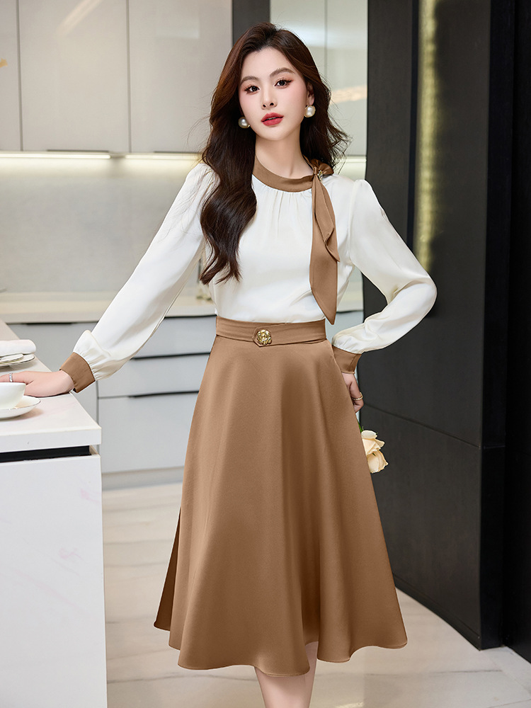 Bộ trang phục hai mảnh này có điểm nhấn ở phần eo cao, tạo dáng chữ A giúp tôn lên đường nét cơ thể một cách nhẹ nhàng. Chất liệu vải mềm mại, thoáng mát, phù hợp cho tiết trời mùa xuân. Kiểu dáng đơn giản, dễ phối đồ với nhiều loại phụ kiện khác nhau. Có thể mặc đi làm, đi chơi hay dự tiệc nhẹ. Bạn chỉ cần chọn size vừa vặn và kết hợp cùng giày dép, túi xách theo sở thích là đã có một set đồ hoàn chỉnh. | Tên sản phẩm: Váy Đầm Liền Thân Nữ Dáng Chữ A Cả Bộ 2 Món Hàng Mùa Xuân Thu Đông - Thời Trang Nữ | Mã sản phẩm: K4127 - Giá: 2.020.000đ | Mã nhà sản xuất: HADG-G05Hình ảnh sản phẩm