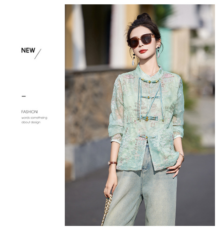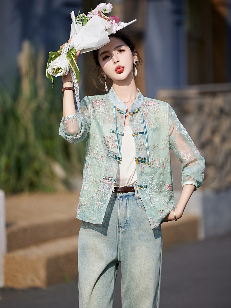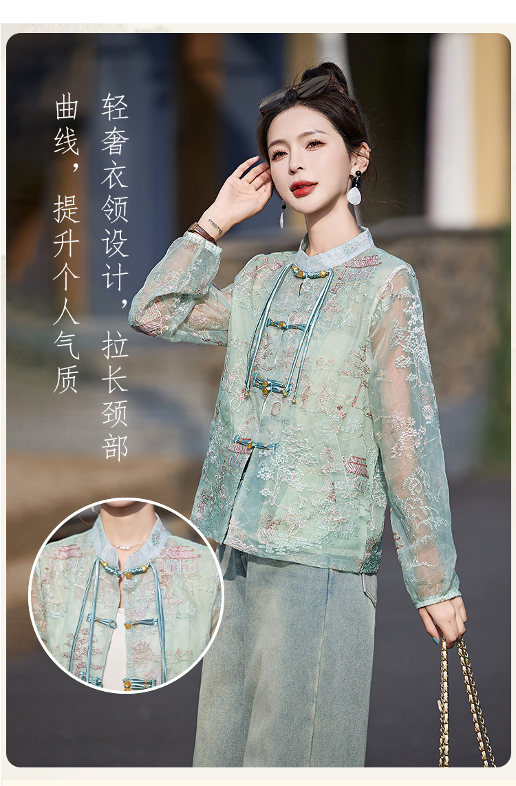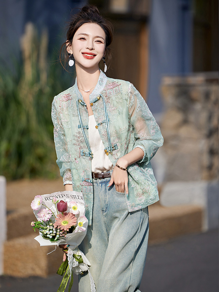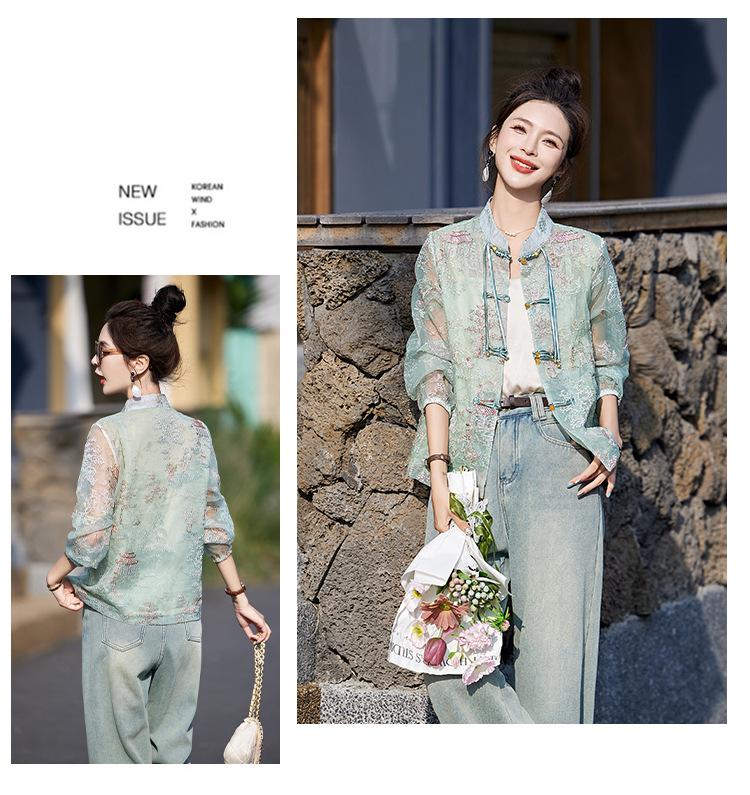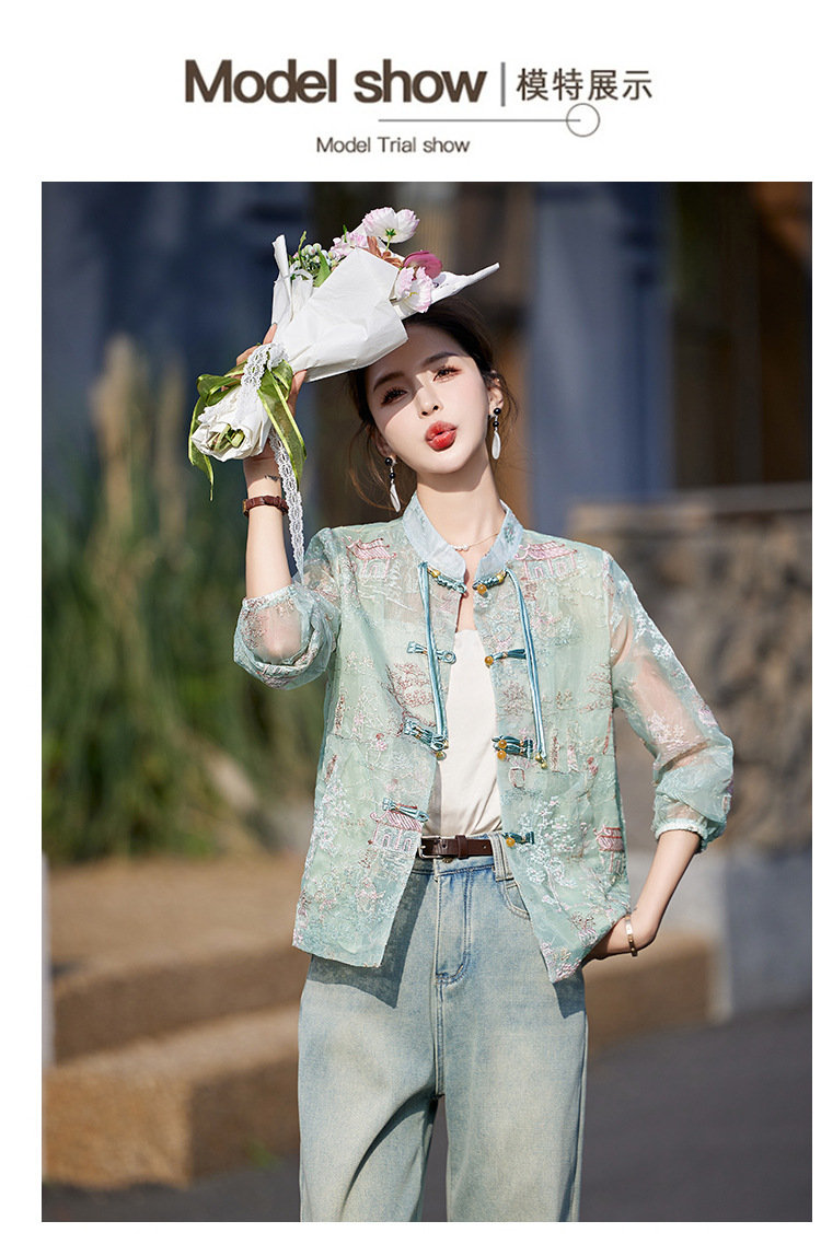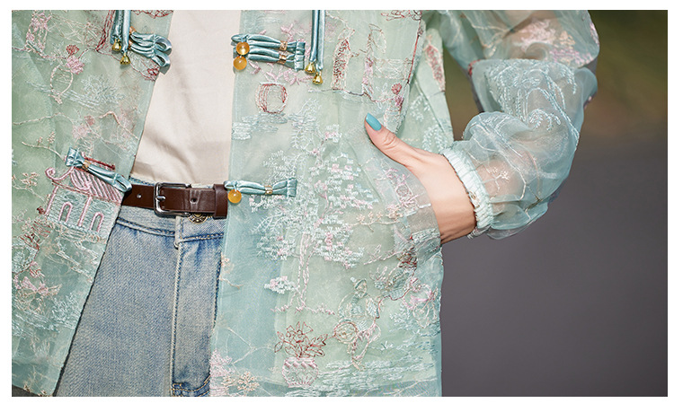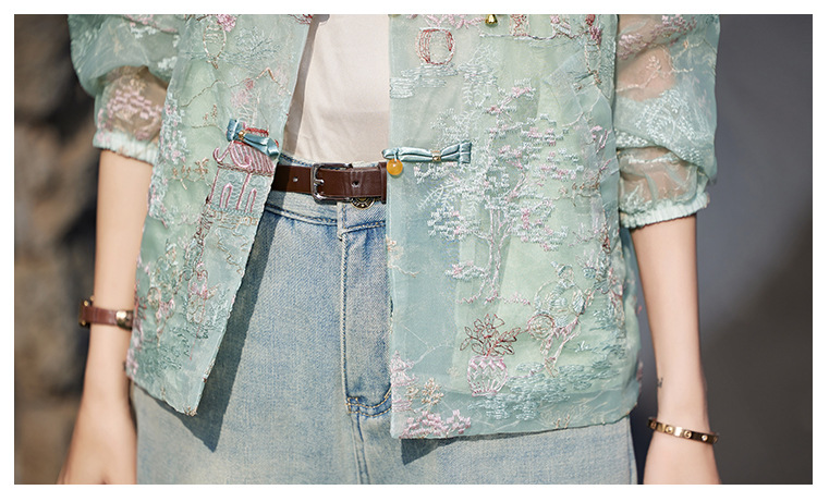 Áo khoác nữ cổ đứng với thiết kế thêu tinh tế, kết hợp nét đẹp hiện đại và truyền thống. Chất vải mỏng nhẹ và thoáng khí, mang lại sự dễ chịu cho những ngày hè. Kiểu dáng dễ phối đồ, phù hợp cho nhiều dịp sinh hoạt thường ngày. Có thể mặc như áo khoác mỏng bên ngoài các loại áo thun, đầm để tạo điểm nhấn. Mẫu mã mới cho mùa hè này. | Tên sản phẩm: Áo Khoác Nữ Thêu Họa Tiết Hoa Thoáng Khí Hàng Mùa Hè - Thời Trang Nữ | Mã sản phẩm: K4193 - Giá: 1.730.000đ | Mã nhà sản xuất: HADG-G05Hình ảnh sản phẩm