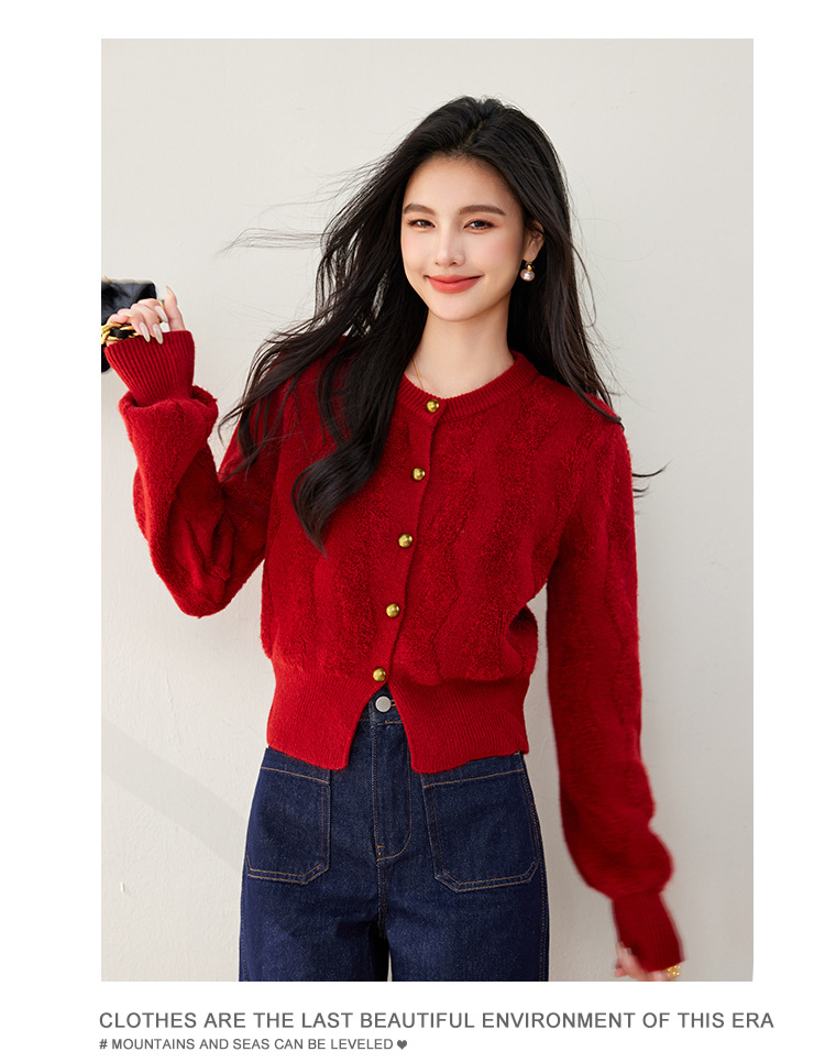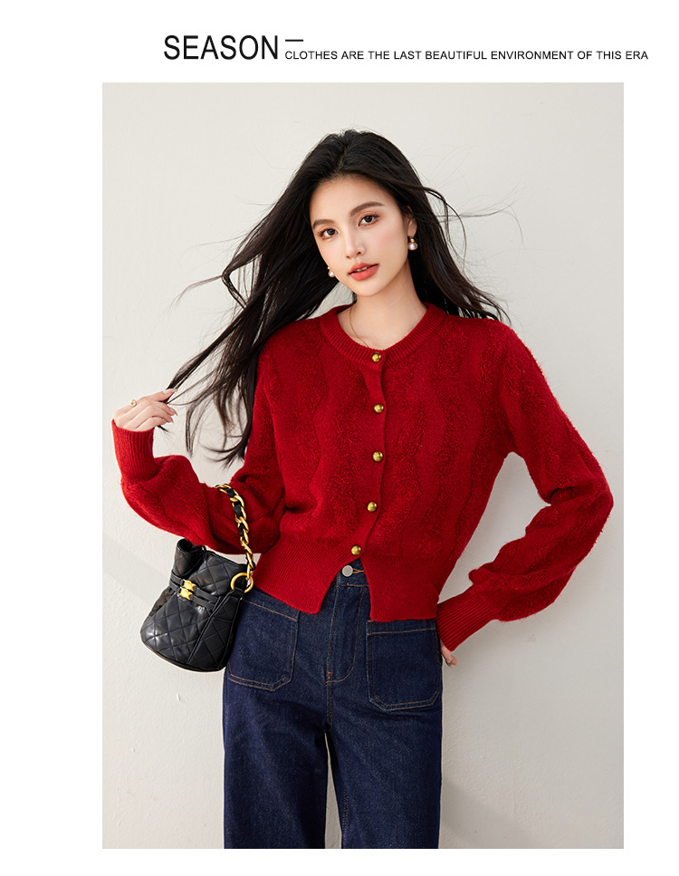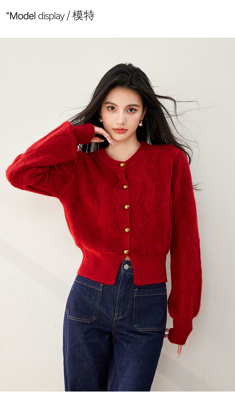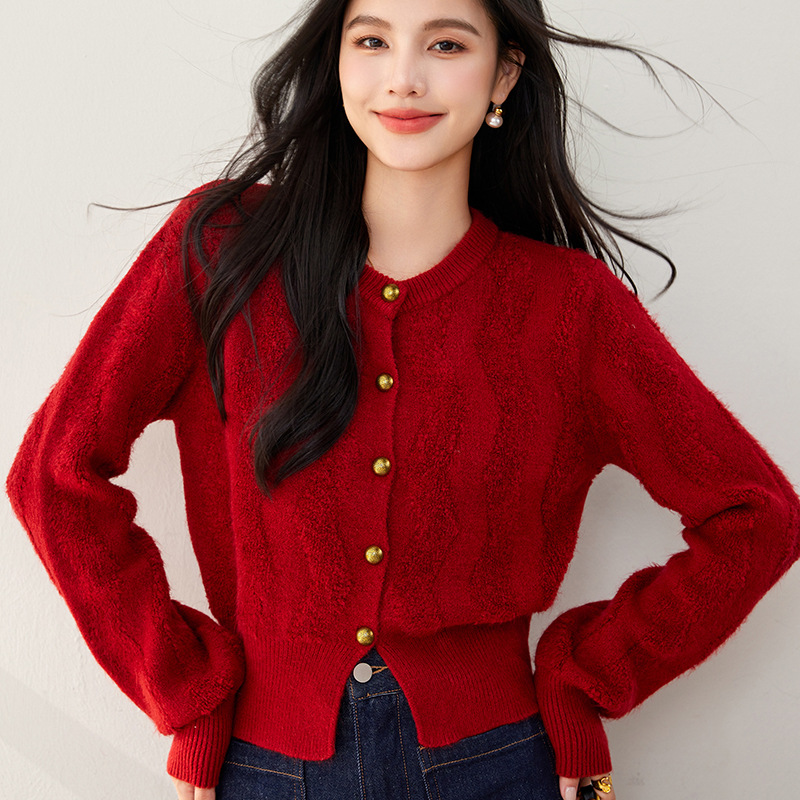 Chiếc áo khoác len này có thiết kế dáng rộng thoải mái, tay dài và hàng cúc cài phía trước. Sản phẩm sở hữu sắc đỏ rực rỡ, phối cùng kiểu dáng cổ điển mang đến vẻ đẹp dịu dàng và ấn tượng. Bạn có thể mặc như một lớp áo bên ngoài để giữ ấm trong tiết trời se lạnh. Chất liệu len mềm mại giúp tạo cảm giác dễ chịu khi mặc mỗi ngày. | Tên sản phẩm: Áo Len Nữ Áo Len Dài Tay Hàng Mùa Xuân Thu Đông Phục Cổ Cổ Điển - Thời Trang Nữ | Mã sản phẩm: K4227 - Giá: 1.060.000đ | Mã nhà sản xuất: SHDFA-G03Hình ảnh sản phẩm