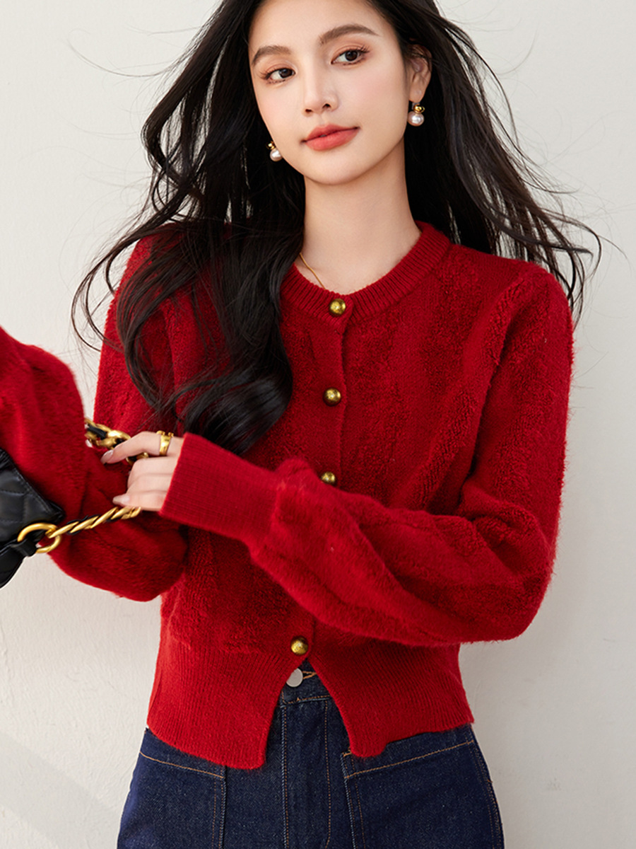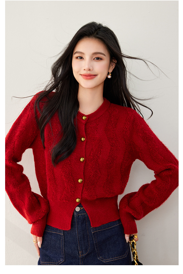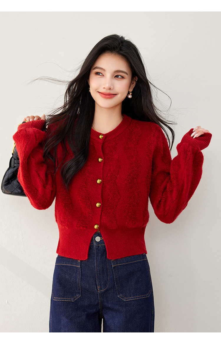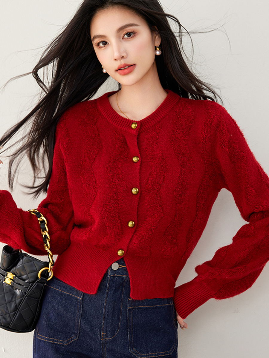 Chiếc áo khoác len này có thiết kế dáng rộng thoải mái, tay dài và hàng cúc cài phía trước. Sản phẩm sở hữu sắc đỏ rực rỡ, phối cùng kiểu dáng cổ điển mang đến vẻ đẹp dịu dàng và ấn tượng. Bạn có thể mặc như một lớp áo bên ngoài để giữ ấm trong tiết trời se lạnh. Chất liệu len mềm mại giúp tạo cảm giác dễ chịu khi mặc mỗi ngày. | Tên sản phẩm: Áo Len Nữ Áo Len Dài Tay Hàng Mùa Xuân Thu Đông Phục Cổ Cổ Điển - Thời Trang Nữ | Mã sản phẩm: K4227 - Giá: 1.060.000đ | Mã nhà sản xuất: SHDFA-G03Hình ảnh sản phẩm