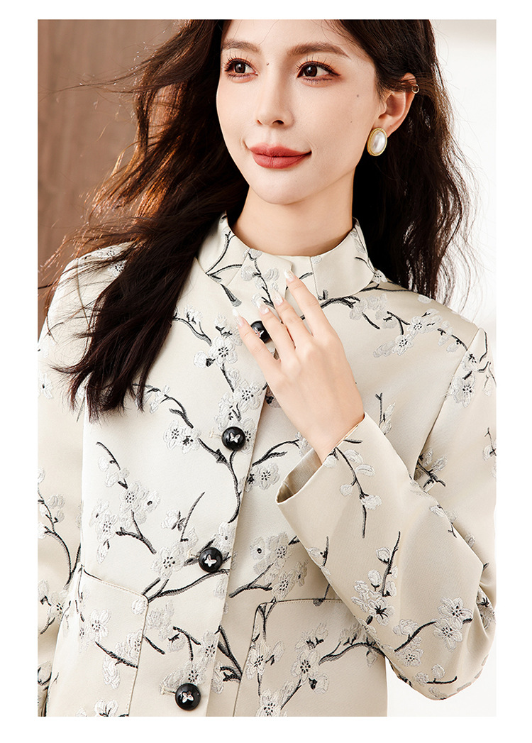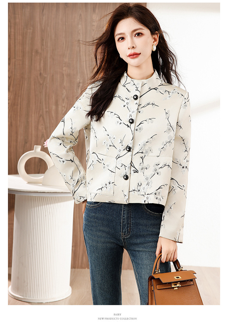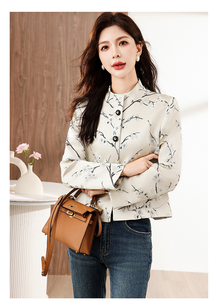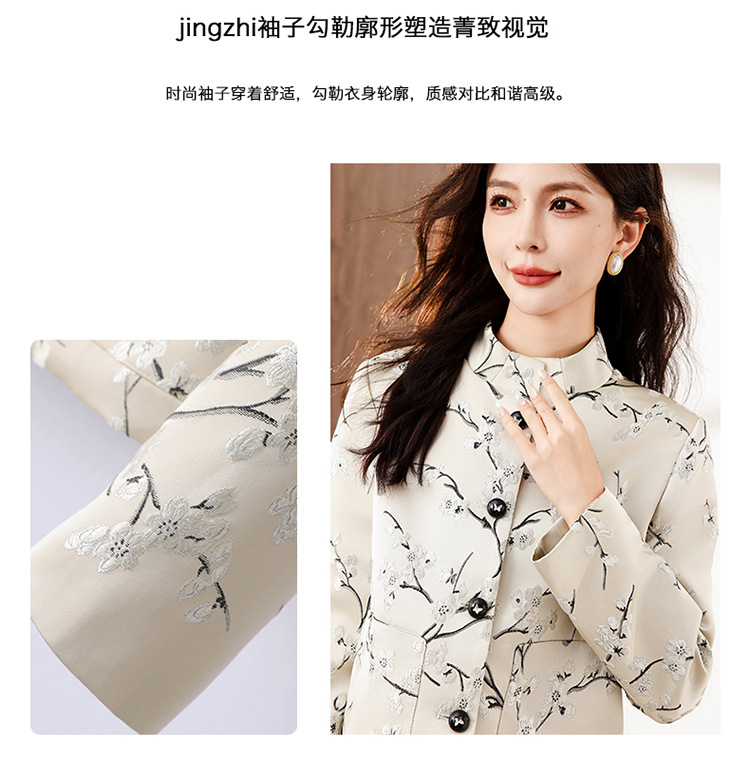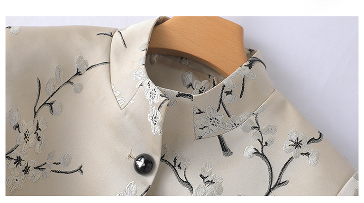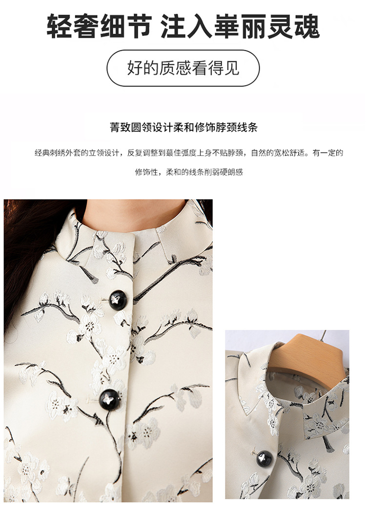 Áo khoác nhẹ mang phong cách hoài cổ, điểm nhấn là cổ dựng thanh lịch. Chất liệu dệt hoa văn tinh xảo kết hợp đường thêu thủ công tạo nên vẻ đẹp tinh tế. Kiểu dáng dễ phối đồ, mặc đẹp khi kết hợp cùng quần ống rộng hoặc chân váy. Sản phẩm phù hợp cho tiết trời thu đông, có thể dùng làm áo khoác ngoài hoặc mặc phủ ngoài áo dài. Giữ form áo bằng cách giặt tay và phơi trong bóng râm. | Tên sản phẩm: Áo Khoác Nữ Thêu Họa Tiết Hoa Hàng Mùa Xuân Thu Đông Phục Cổ Cổ Điển - Thời Trang Nữ | Mã sản phẩm: K4232 - Giá: 1.590.000đ | Mã nhà sản xuất: HADG-G04Hình ảnh sản phẩm