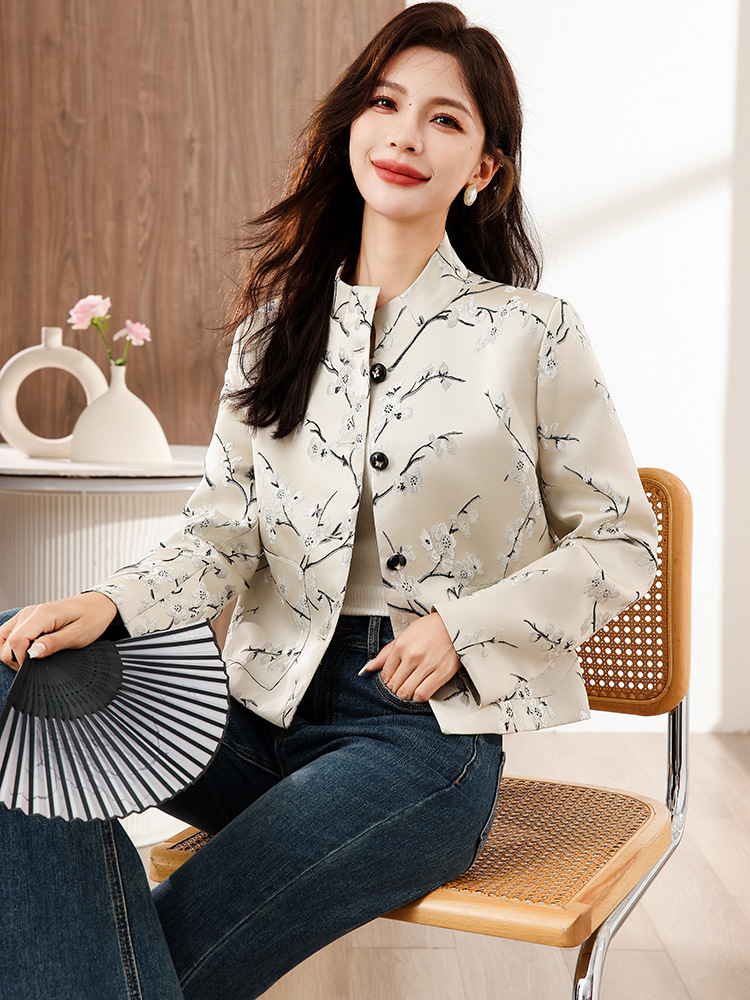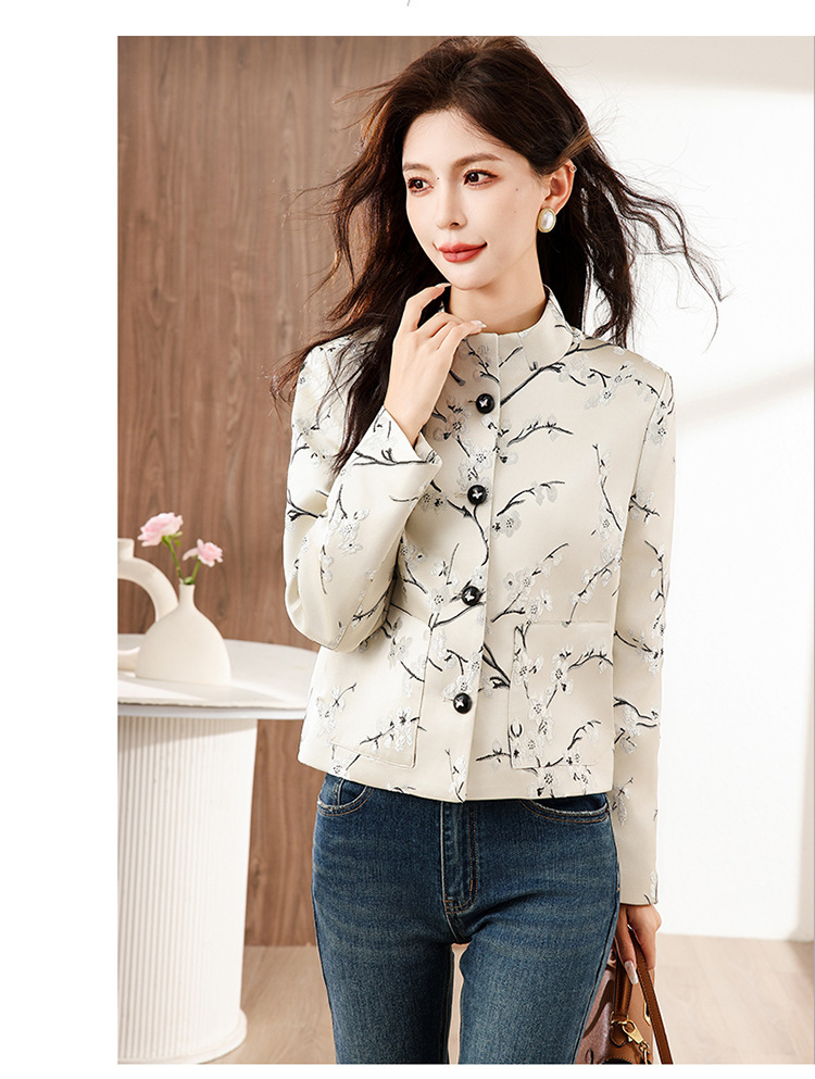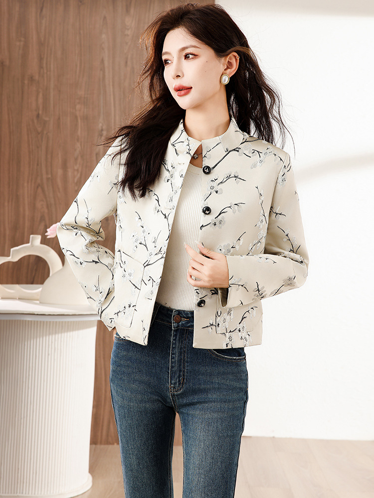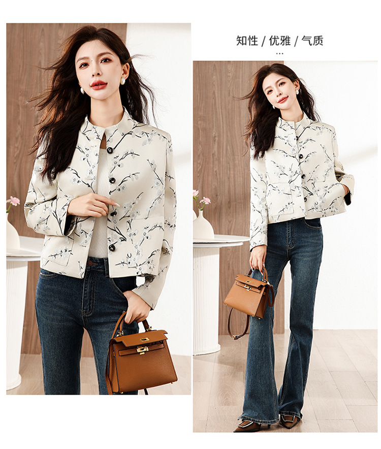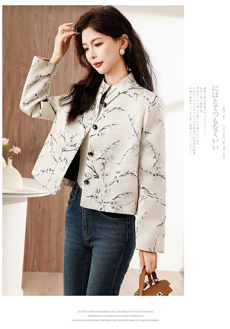 Áo khoác nhẹ mang phong cách hoài cổ, điểm nhấn là cổ dựng thanh lịch. Chất liệu dệt hoa văn tinh xảo kết hợp đường thêu thủ công tạo nên vẻ đẹp tinh tế. Kiểu dáng dễ phối đồ, mặc đẹp khi kết hợp cùng quần ống rộng hoặc chân váy. Sản phẩm phù hợp cho tiết trời thu đông, có thể dùng làm áo khoác ngoài hoặc mặc phủ ngoài áo dài. Giữ form áo bằng cách giặt tay và phơi trong bóng râm. | Tên sản phẩm: Áo Khoác Nữ Thêu Họa Tiết Hoa Hàng Mùa Xuân Thu Đông Phục Cổ Cổ Điển - Thời Trang Nữ | Mã sản phẩm: K4232 - Giá: 1.590.000đ | Mã nhà sản xuất: HADG-G04Hình ảnh sản phẩm