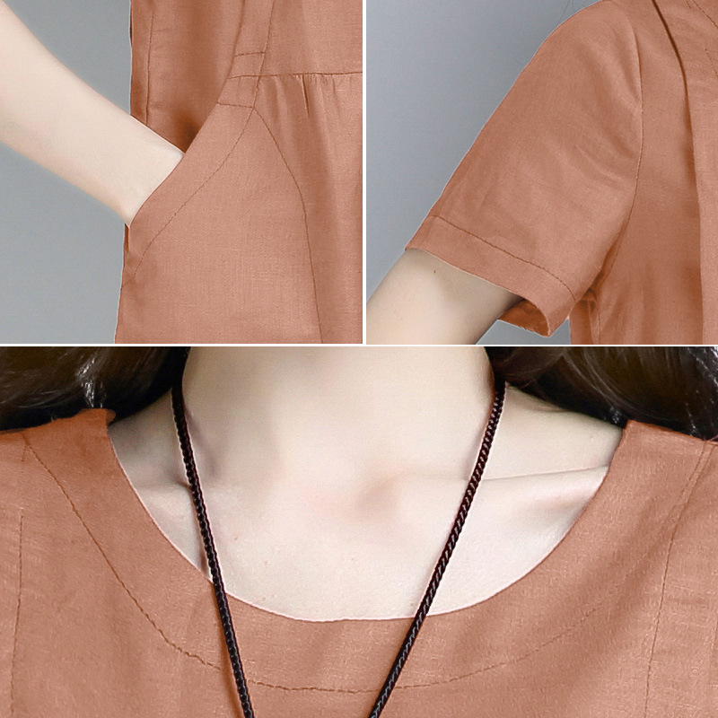 Chiếc đầm thời trang này được dệt từ chất liệu vải lanh và cotton tự nhiên, mang đến cảm giác mát mẻ, thoáng khí cho những ngày hè. Kiểu dáng rộng rãi, thoải mái cùng thiết kế đơn giản, dễ phối đồ. Đường cắt may khéo léo giúp tôn dáng và che đi phần bụng một cách tự nhiên. Bạn có thể mặc đi dạo, đi làm hay dự những buổi gặp mặt thân mật. | Tên sản phẩm: Váy Đầm Liền Thân Nữ Chất Liệu Vải Bông Hàng Mùa Hè - Thời Trang Nữ | Mã sản phẩm: K4444 - Giá: 1.230.000đ | Mã nhà sản xuất: HADA-G04Hình ảnh sản phẩm