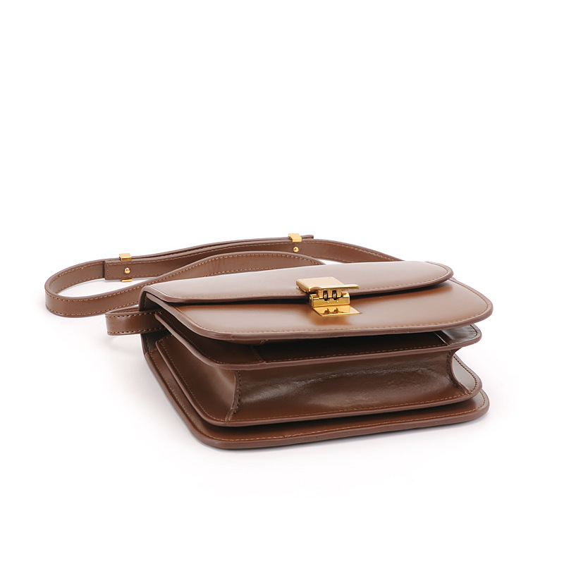 Túi xách tay dành cho nữ với kiểu dáng hộp vuông vức mang phong cách xưa nhẹ nhàng. Sản phẩm được làm từ chất liệu da mềm mịn, có màu nâu caramel dễ phối đồ. Điểm nhấn là khóa kim loại chắc chắn, tạo nên vẻ đẹp cổ điển. Túi có qu xách và dây đeo v linh hoạt. Bạn có thể dùng để đựng ví, điện thoại và các vật dụng cá nhân hằng ngày một cách gọn gàng và tiện lợi. | Tên sản phẩm: Túi Xách Nữ Chất Liệu Da Bò Phục Cổ Cổ Điển - Túi Ví Nữ | Mã sản phẩm: K4487 - Giá: 2.100.000đ | Mã nhà sản xuất: MAENLO-G05Hình ảnh sản phẩm