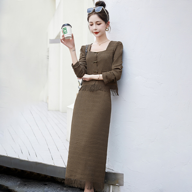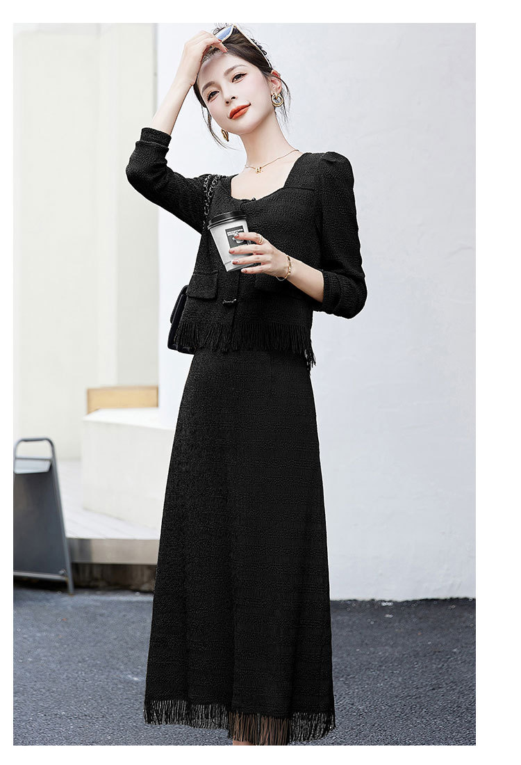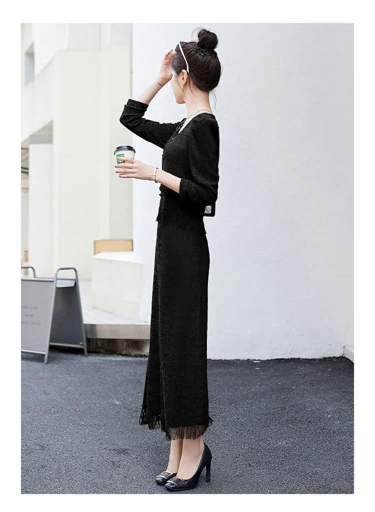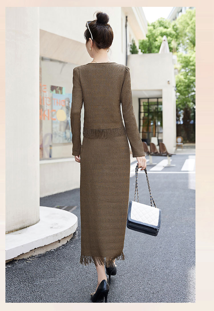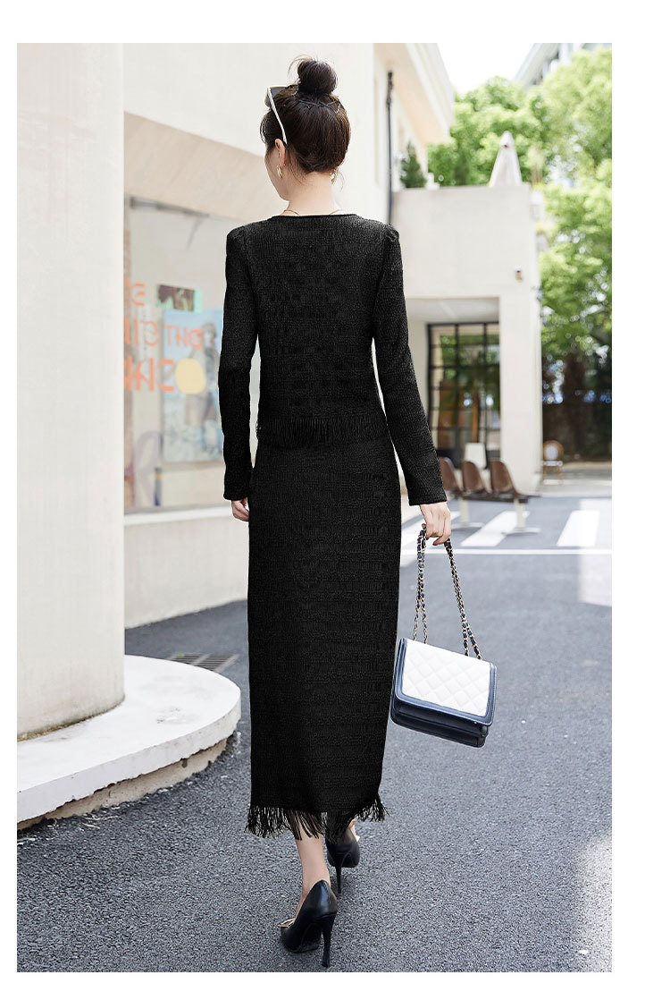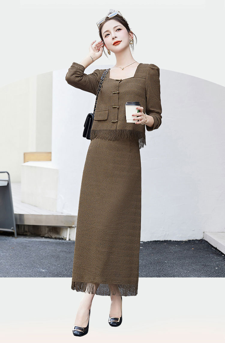 Bộ trang phục tay dài này là lựa chọn lý tưởng cho mùa thu. Thiết kế gồm hai món dễ dàng phối đồ, tạo dáng ôn cơ thể một cách tinh tế, giúp tôn lên vẻ ngoài gọn gàng. Điểm nhấn là những chi tiết tua rua mềm mại, tăng thêm nét duyên dáng và uyển chuyển khi di chuyển. Bạn có thể mặc bộ này để đi làm, gặp gỡ bạn bè hoặc dự các buổi họp mặt. Chỉ cần chọn size phù hợp và kết hợp cùng giày dép, phụ kiện đơn giản là đã có một bộ trang phục hoàn chỉnh. | Tên sản phẩm: Đồ Bộ Nữ Dáng Ôm Cả Bộ 2 Món Hàng Mùa Xuân Thu Đông - Thời Trang Nữ | Mã sản phẩm: K4593 - Giá: 1.680.000đ | Mã nhà sản xuất: HADA-G05Hình ảnh sản phẩm