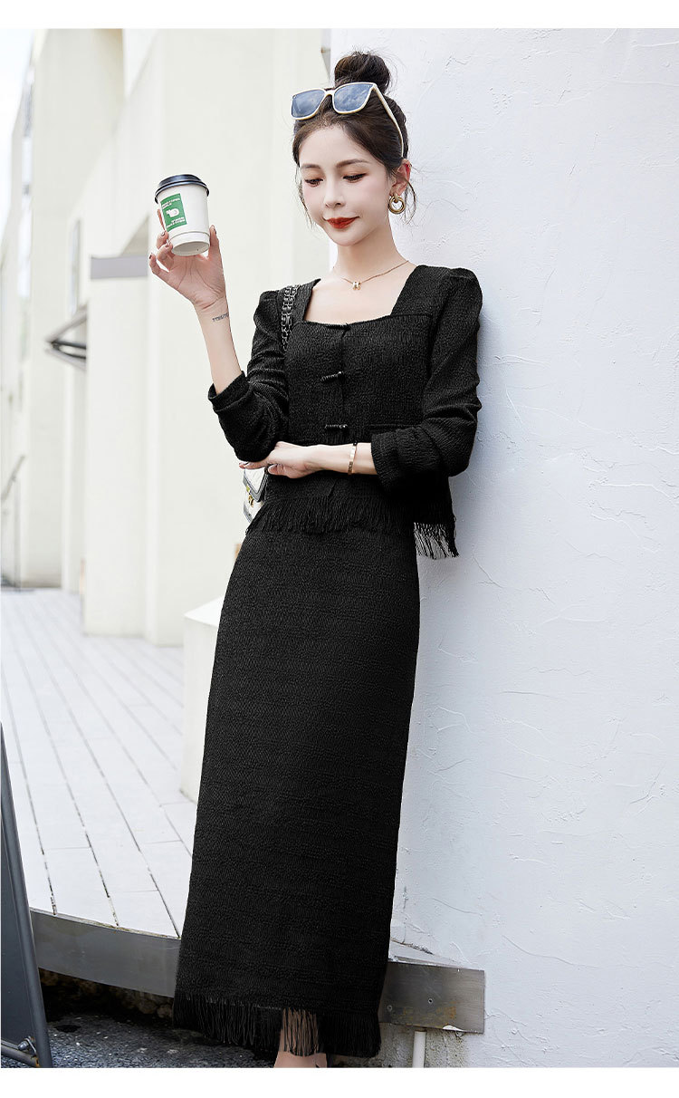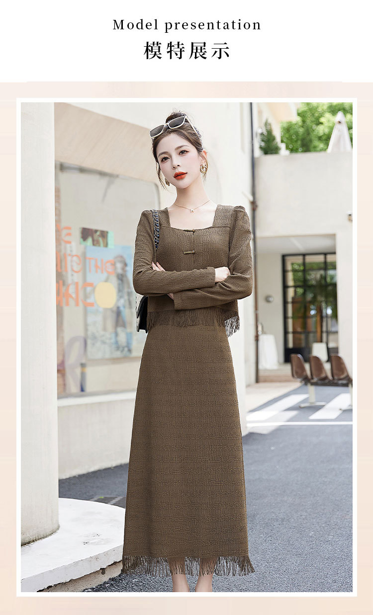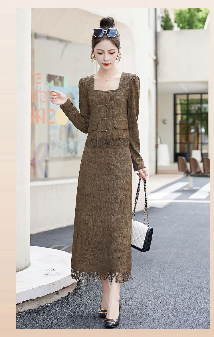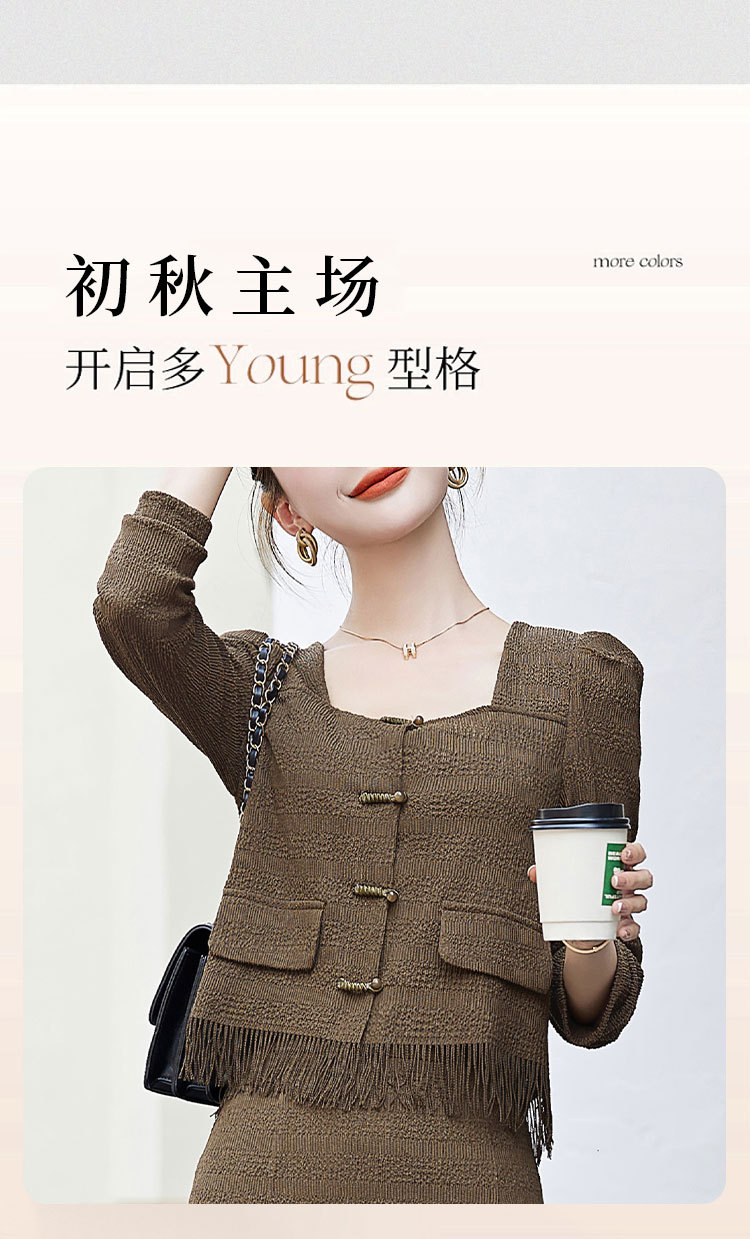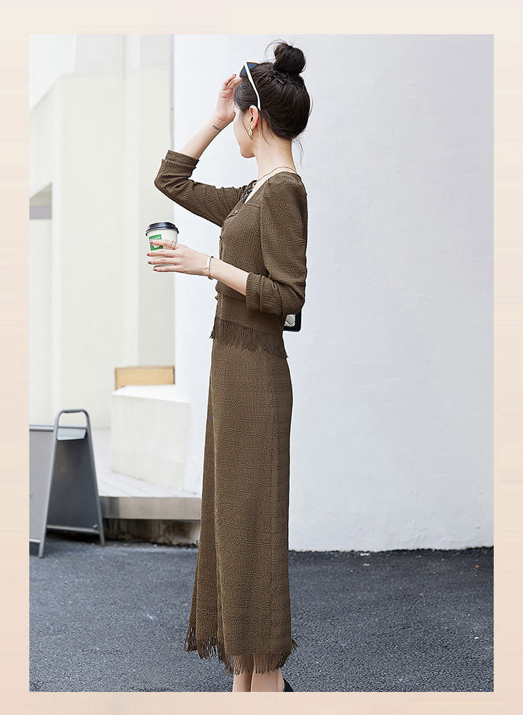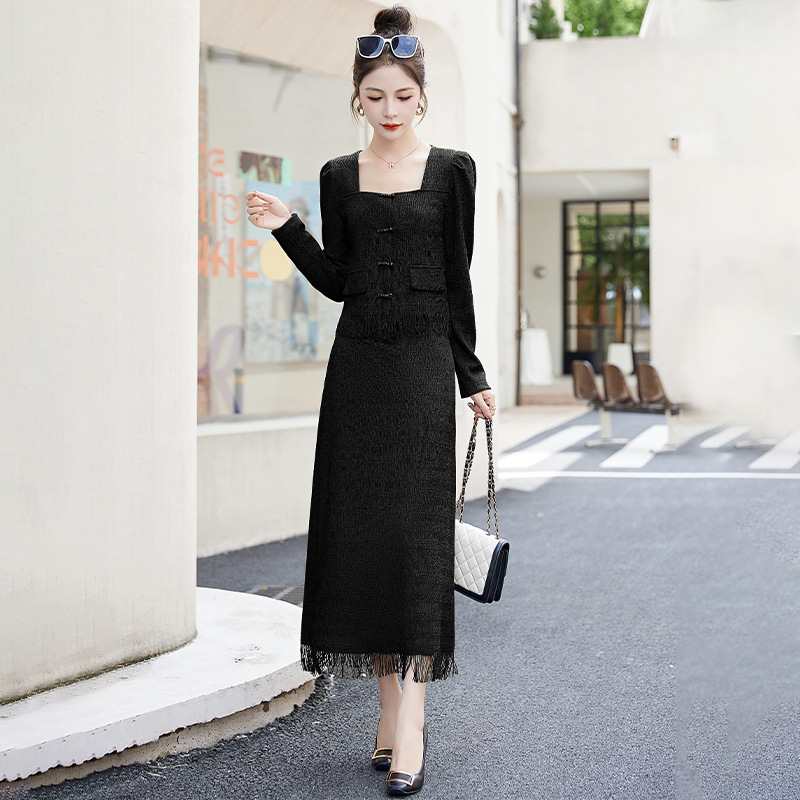 Bộ trang phục tay dài này là lựa chọn lý tưởng cho mùa thu. Thiết kế gồm hai món dễ dàng phối đồ, tạo dáng ôn cơ thể một cách tinh tế, giúp tôn lên vẻ ngoài gọn gàng. Điểm nhấn là những chi tiết tua rua mềm mại, tăng thêm nét duyên dáng và uyển chuyển khi di chuyển. Bạn có thể mặc bộ này để đi làm, gặp gỡ bạn bè hoặc dự các buổi họp mặt. Chỉ cần chọn size phù hợp và kết hợp cùng giày dép, phụ kiện đơn giản là đã có một bộ trang phục hoàn chỉnh. | Tên sản phẩm: Đồ Bộ Nữ Dáng Ôm Cả Bộ 2 Món Hàng Mùa Xuân Thu Đông - Thời Trang Nữ | Mã sản phẩm: K4593 - Giá: 1.680.000đ | Mã nhà sản xuất: HADA-G05Hình ảnh sản phẩm