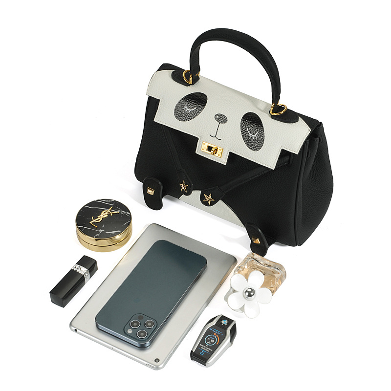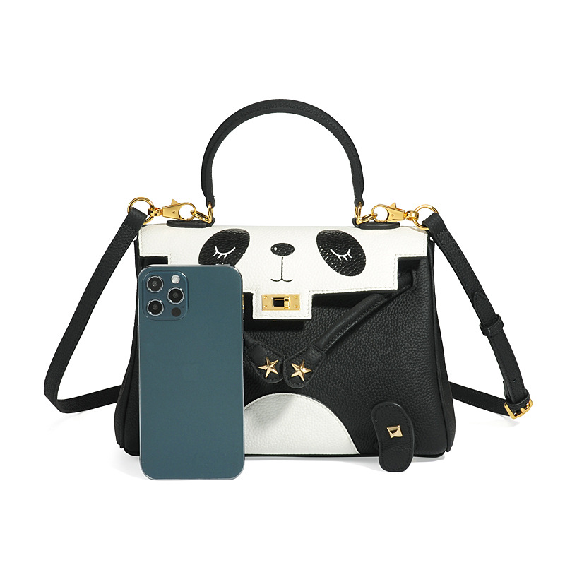 Túi xách tay dành cho nữ, được làm thủ công tỉ mỉ với hình chú gấu trúc nhỏ xinh đáng yêu. Chất liệu chính là lớp da bò mềm mại bên ngoài, có bề mặt vân sần tự nhiên, mang lại cảm giác dễ chịu khi cầm nắm. Kiểu dáng túi thanh lịch, dễ dàng phối hợp cùng nhiều trang phục khác nhau. Bạn có thể sử dụng như một chiếc túi xách tay đi làm, đi chơi hoặc trong những dịp gặp mặt thường ngày. | Tên sản phẩm: Túi Xách Nữ Chất Liệu Da Bò - Túi Ví Nữ | Mã sản phẩm: K4604 - Giá: 2.270.000đ | Mã nhà sản xuất: MAENLO-G05Hình ảnh sản phẩm
