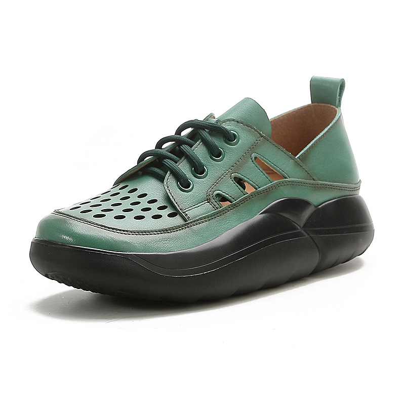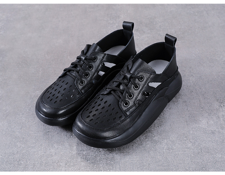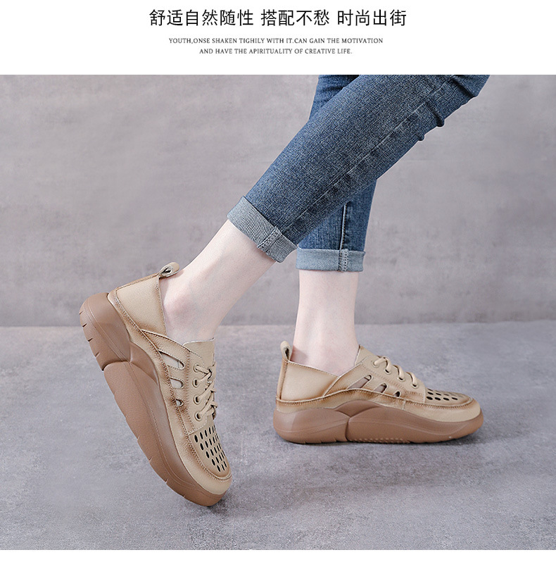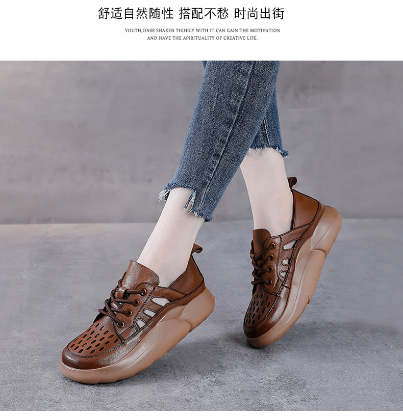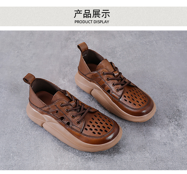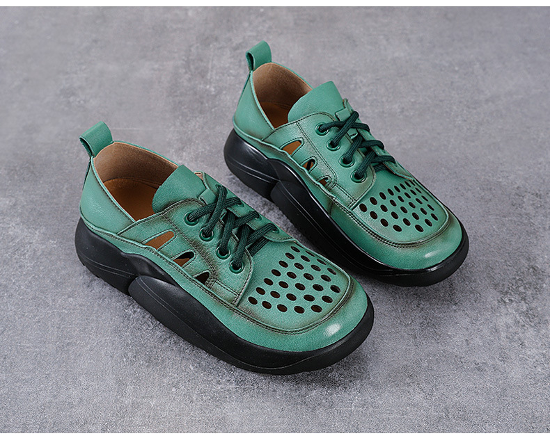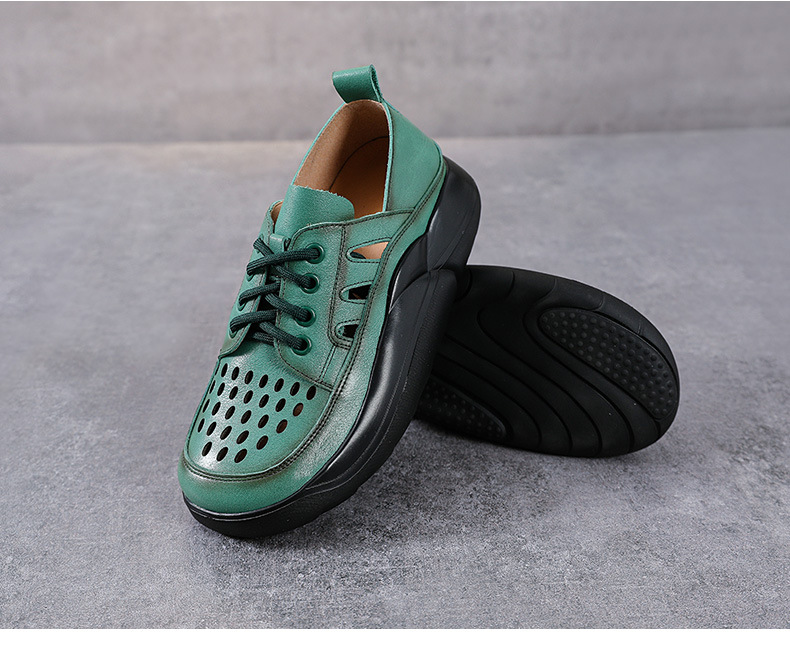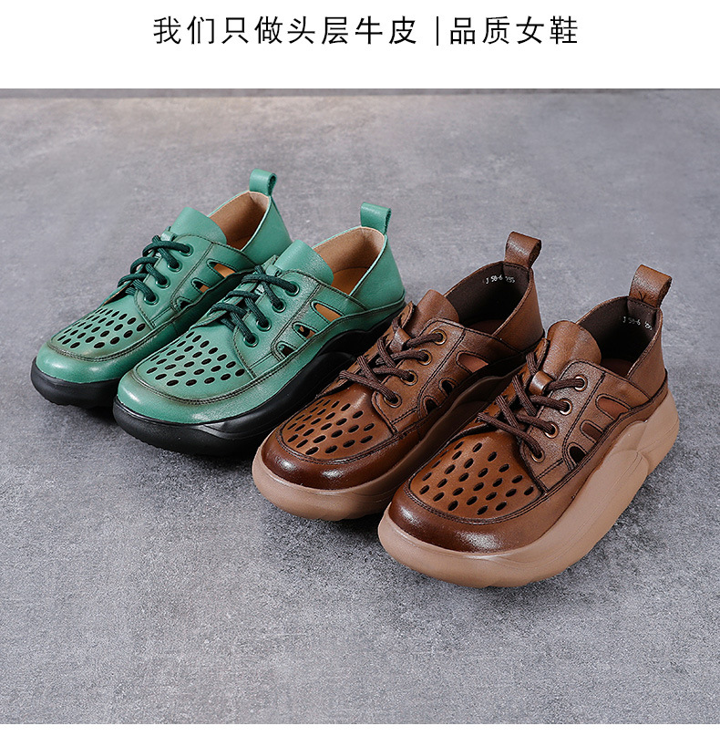 Đôi giày sử dụng chất liệu da thật, mang đến cảm giác mềm mại và bền lâu. Phong cách thiết kế cổ điển kết hợp đế xuồng dày dặn, tạo điểm nhấn cá tính. Các lỗ thông hơi nhỏ ở mũi giày giúp không khí lưu thông tốt, mang lại sự thoáng mát cho đôi chân trong những ngày hè. Dây giày có thể điều chỉnh linh hoạt, ôm vừa vặn bàn chân. Sản phẩm phù hợp để đi dạo hoặc kết hợp với nhiều trang phục thường ngày. | Tên sản phẩm: Giày Dép Sandal Nữ Chất Liệu Da Bò Thoáng Khí Đế Cao Hàng Mùa Hè Phục Cổ Cổ Điển - Giày Dép Nữ | Mã sản phẩm: K4728 - Giá: 1.420.000đ | Mã nhà sản xuất: WEDS-G04Hình ảnh sản phẩm