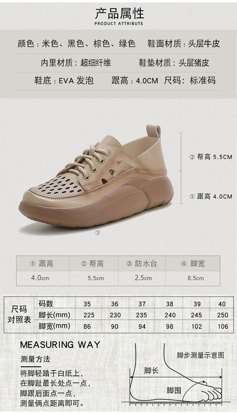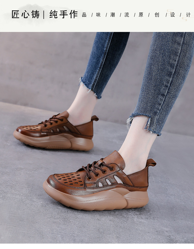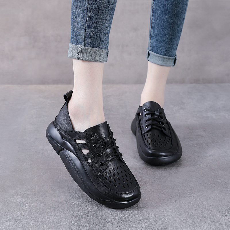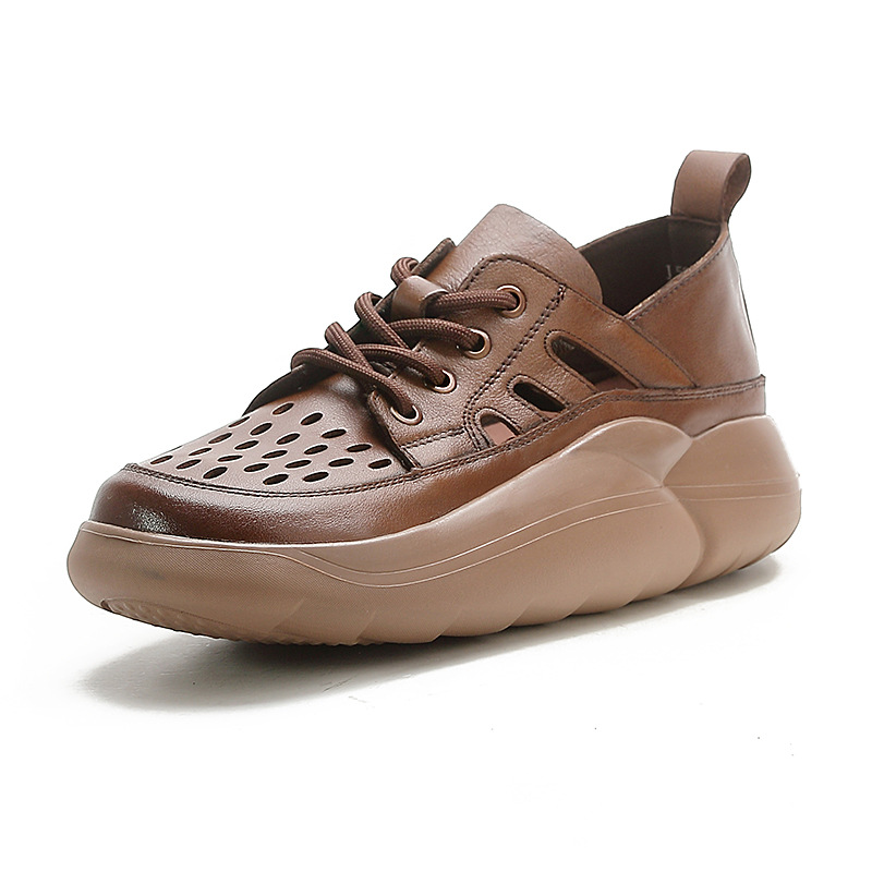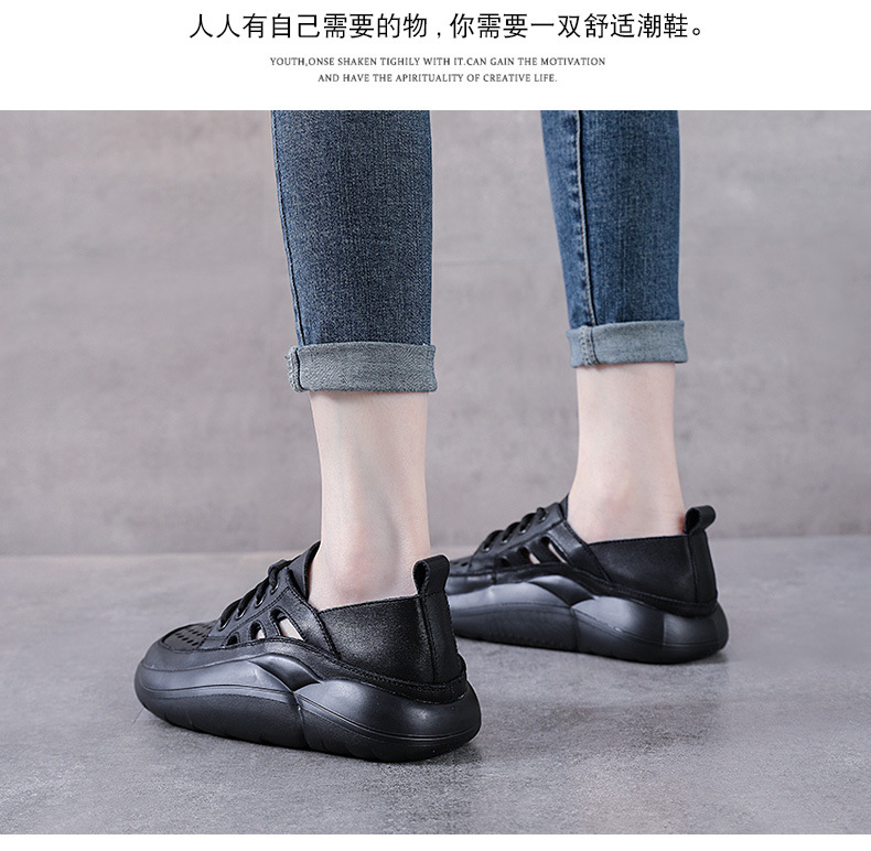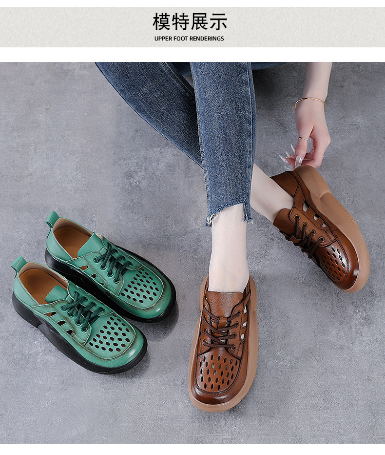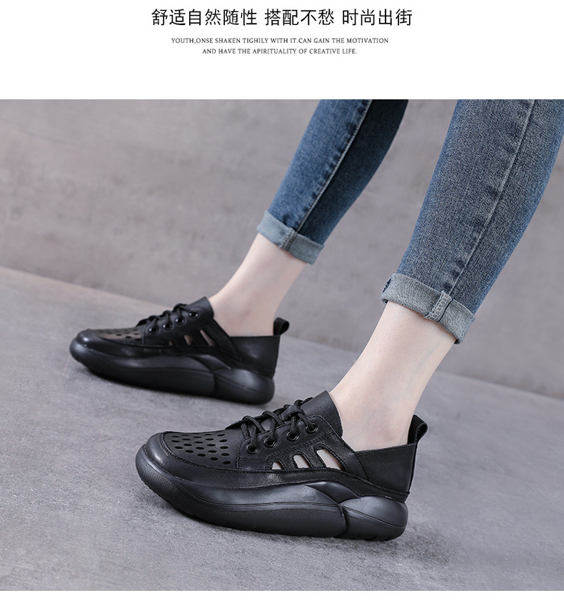 Đôi giày sử dụng chất liệu da thật, mang đến cảm giác mềm mại và bền lâu. Phong cách thiết kế cổ điển kết hợp đế xuồng dày dặn, tạo điểm nhấn cá tính. Các lỗ thông hơi nhỏ ở mũi giày giúp không khí lưu thông tốt, mang lại sự thoáng mát cho đôi chân trong những ngày hè. Dây giày có thể điều chỉnh linh hoạt, ôm vừa vặn bàn chân. Sản phẩm phù hợp để đi dạo hoặc kết hợp với nhiều trang phục thường ngày. | Tên sản phẩm: Giày Dép Sandal Nữ Chất Liệu Da Bò Thoáng Khí Đế Cao Hàng Mùa Hè Phục Cổ Cổ Điển - Giày Dép Nữ | Mã sản phẩm: K4728 - Giá: 1.420.000đ | Mã nhà sản xuất: WEDS-G04Hình ảnh sản phẩm