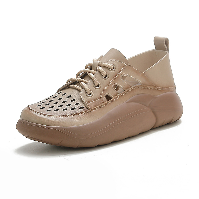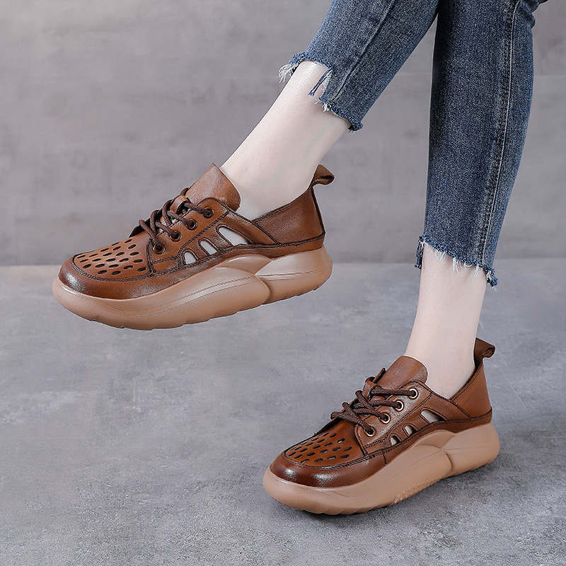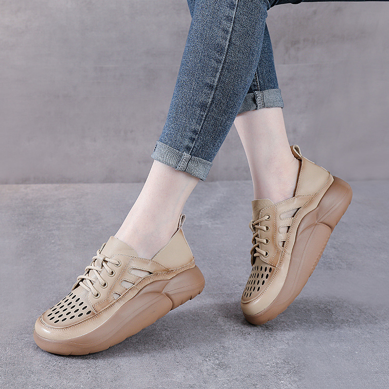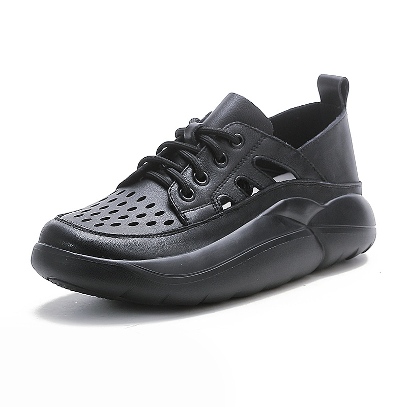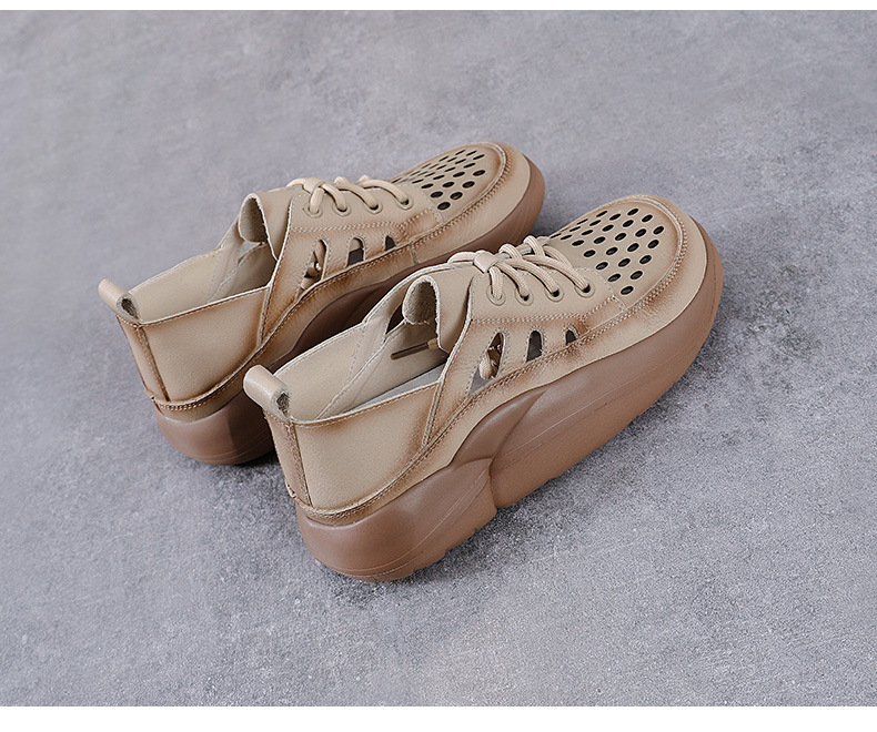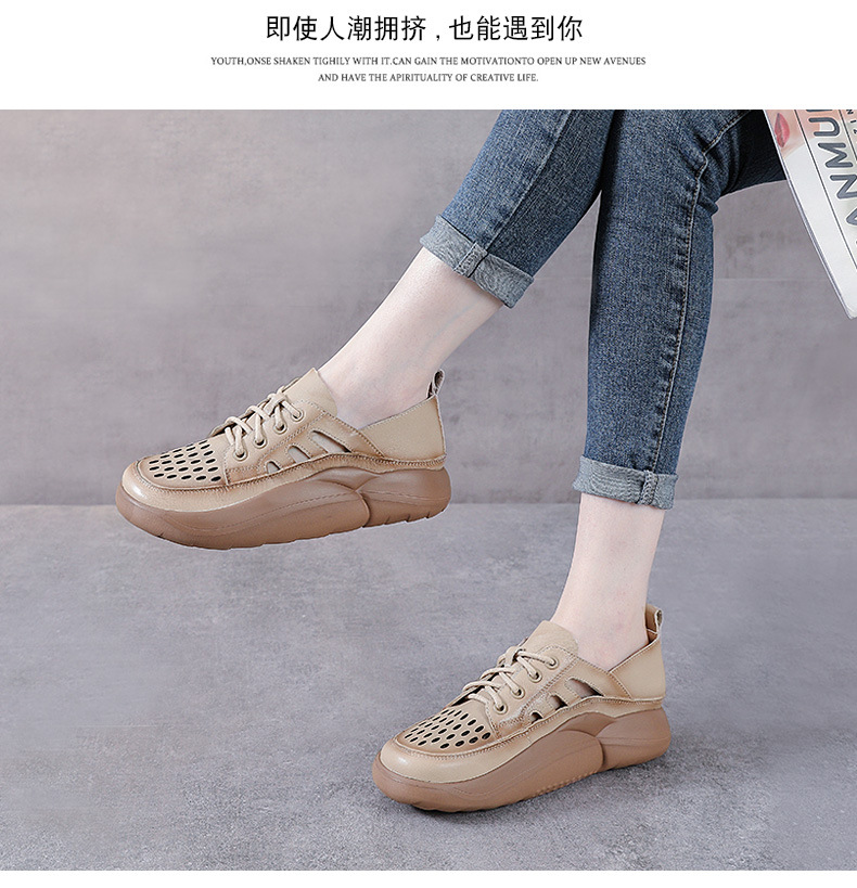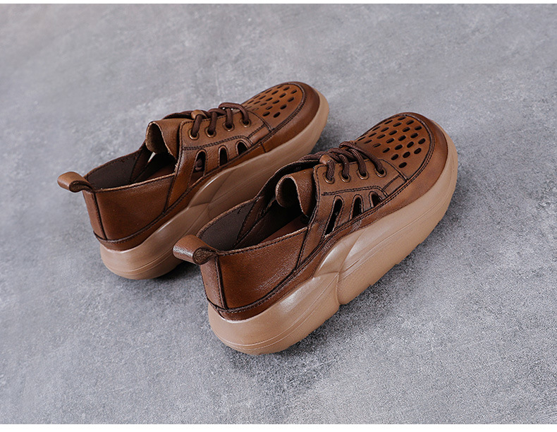 Đôi giày sử dụng chất liệu da thật, mang đến cảm giác mềm mại và bền lâu. Phong cách thiết kế cổ điển kết hợp đế xuồng dày dặn, tạo điểm nhấn cá tính. Các lỗ thông hơi nhỏ ở mũi giày giúp không khí lưu thông tốt, mang lại sự thoáng mát cho đôi chân trong những ngày hè. Dây giày có thể điều chỉnh linh hoạt, ôm vừa vặn bàn chân. Sản phẩm phù hợp để đi dạo hoặc kết hợp với nhiều trang phục thường ngày. | Tên sản phẩm: Giày Dép Sandal Nữ Chất Liệu Da Bò Thoáng Khí Đế Cao Hàng Mùa Hè Phục Cổ Cổ Điển - Giày Dép Nữ | Mã sản phẩm: K4728 - Giá: 1.420.000đ | Mã nhà sản xuất: WEDS-G04Hình ảnh sản phẩm