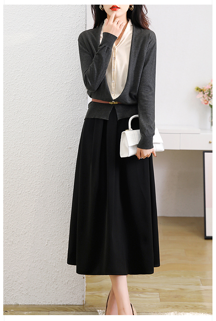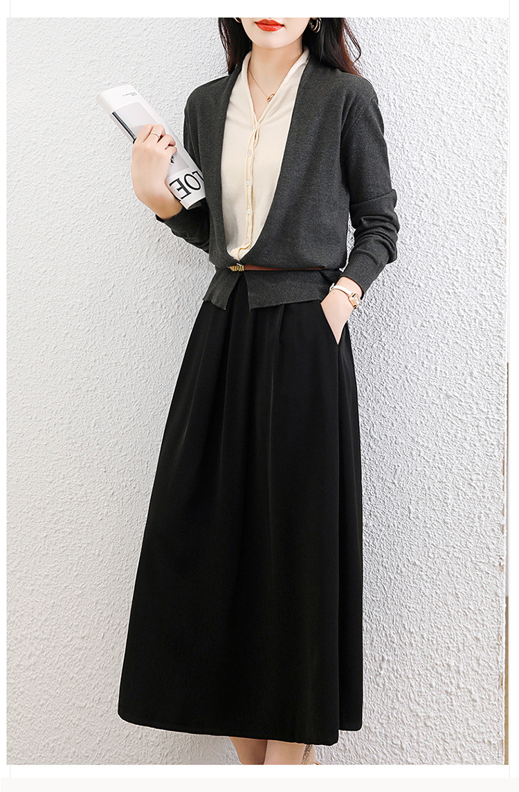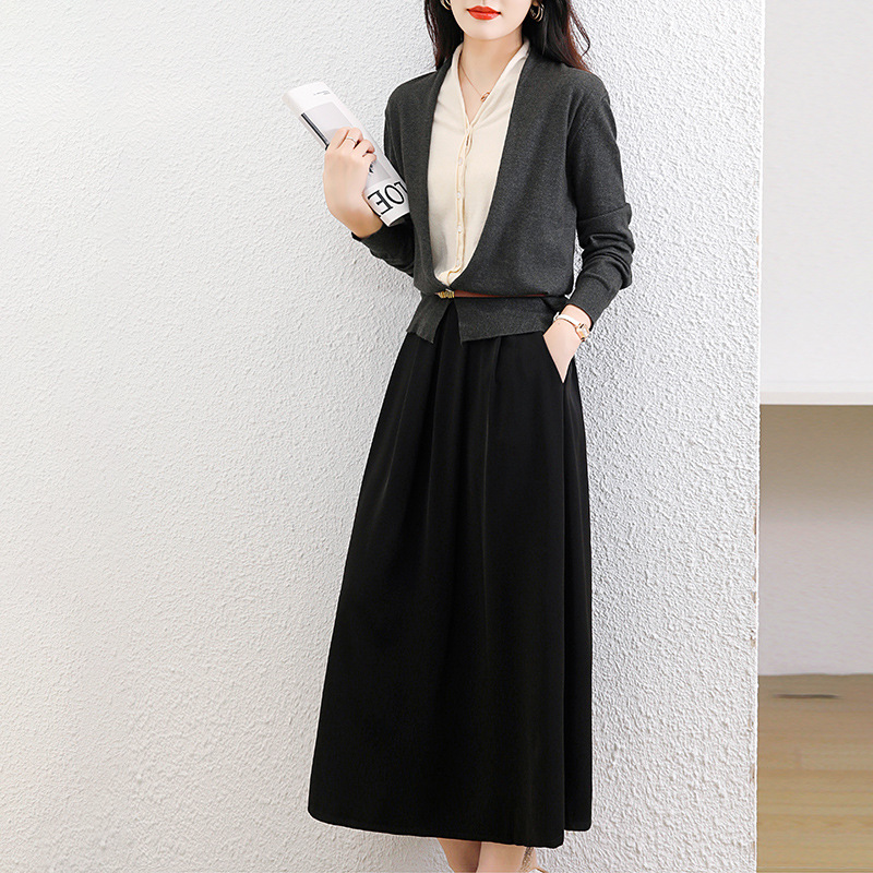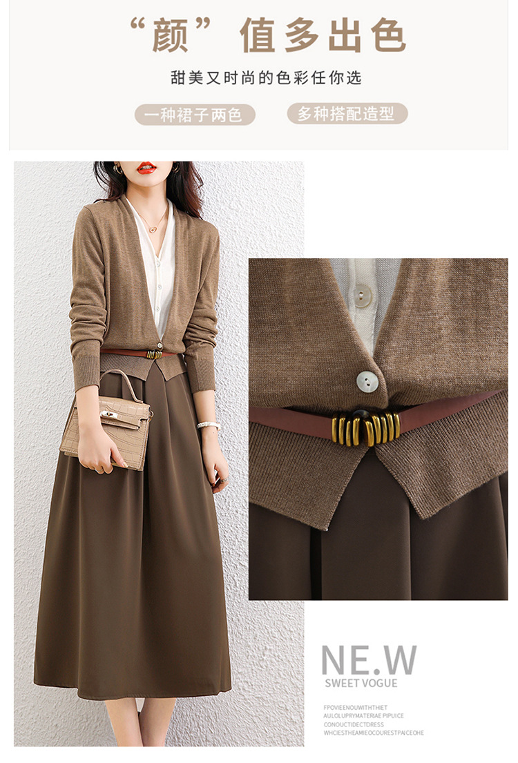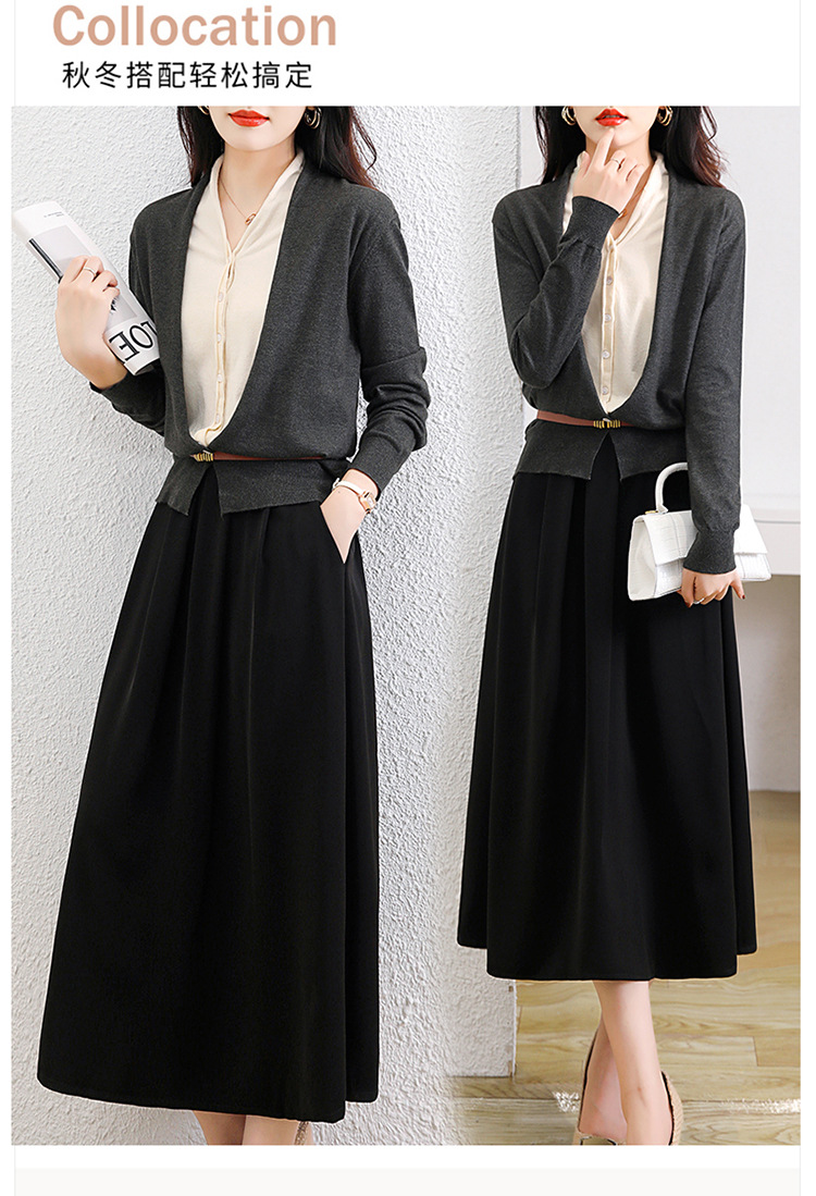 Bộ trang phục hai mảnh dành cho mùa thu, gồm áo dài tay và đầm, được làm từ chất liệu dệt kim mềm mại. Thiết kế mang phong cách thanh lịch, nhẹ nhàng, tạo điểm nhấn với những đường nét tinh tế, giúp tôn lên vẻ đẹp hiện đại và trẻ trung cho người mặc. Có thể phối hợp mặc chung như một bộ đồ hoàn chỉnh, hoặc tách rời để phối với các trang phục khác nhau, rất tiện lợi và dễ dàng tạo nên nhiều phong cách. | Tên sản phẩm: Đồ Bộ Nữ Áo Len Dài Tay Cả Bộ 2 Món Trông Trẻ Hơn Tuổi Hàng Mùa Xuân Thu Đông - Thời Trang Nữ | Mã sản phẩm: K4730 - Giá: 1.680.000đ | Mã nhà sản xuất: HADA-G05Hình ảnh sản phẩm