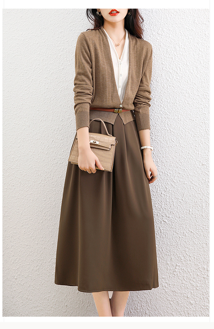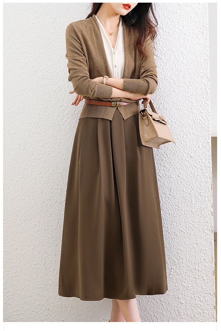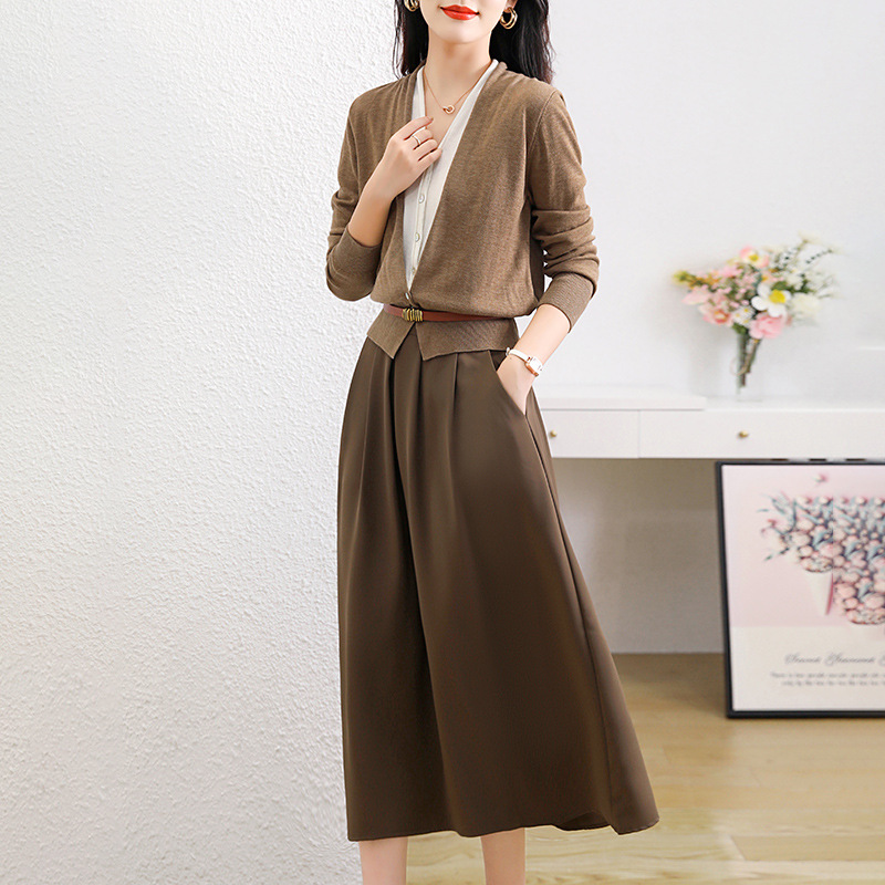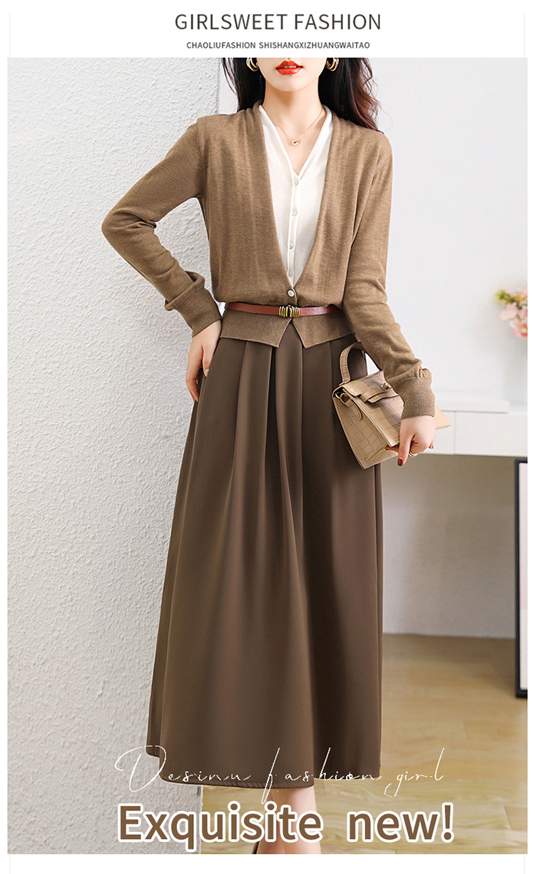 Bộ trang phục hai mảnh dành cho mùa thu, gồm áo dài tay và đầm, được làm từ chất liệu dệt kim mềm mại. Thiết kế mang phong cách thanh lịch, nhẹ nhàng, tạo điểm nhấn với những đường nét tinh tế, giúp tôn lên vẻ đẹp hiện đại và trẻ trung cho người mặc. Có thể phối hợp mặc chung như một bộ đồ hoàn chỉnh, hoặc tách rời để phối với các trang phục khác nhau, rất tiện lợi và dễ dàng tạo nên nhiều phong cách. | Tên sản phẩm: Đồ Bộ Nữ Áo Len Dài Tay Cả Bộ 2 Món Trông Trẻ Hơn Tuổi Hàng Mùa Xuân Thu Đông - Thời Trang Nữ | Mã sản phẩm: K4730 - Giá: 1.680.000đ | Mã nhà sản xuất: HADA-G05Hình ảnh sản phẩm