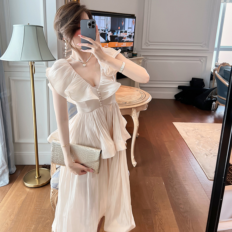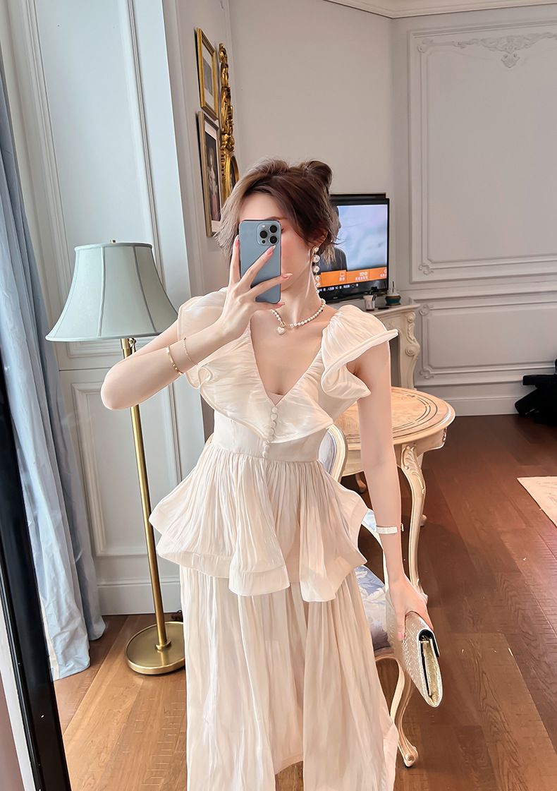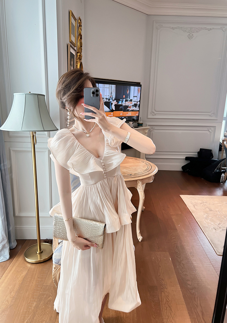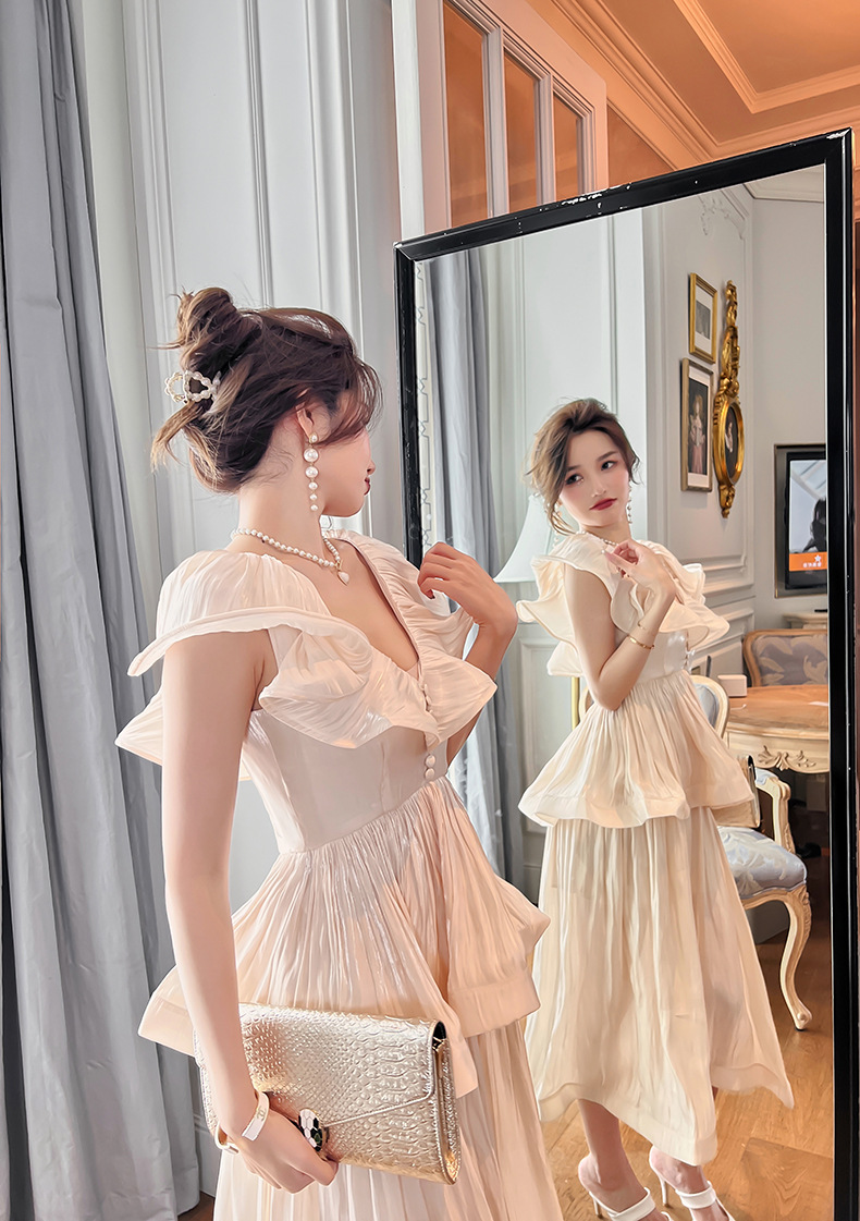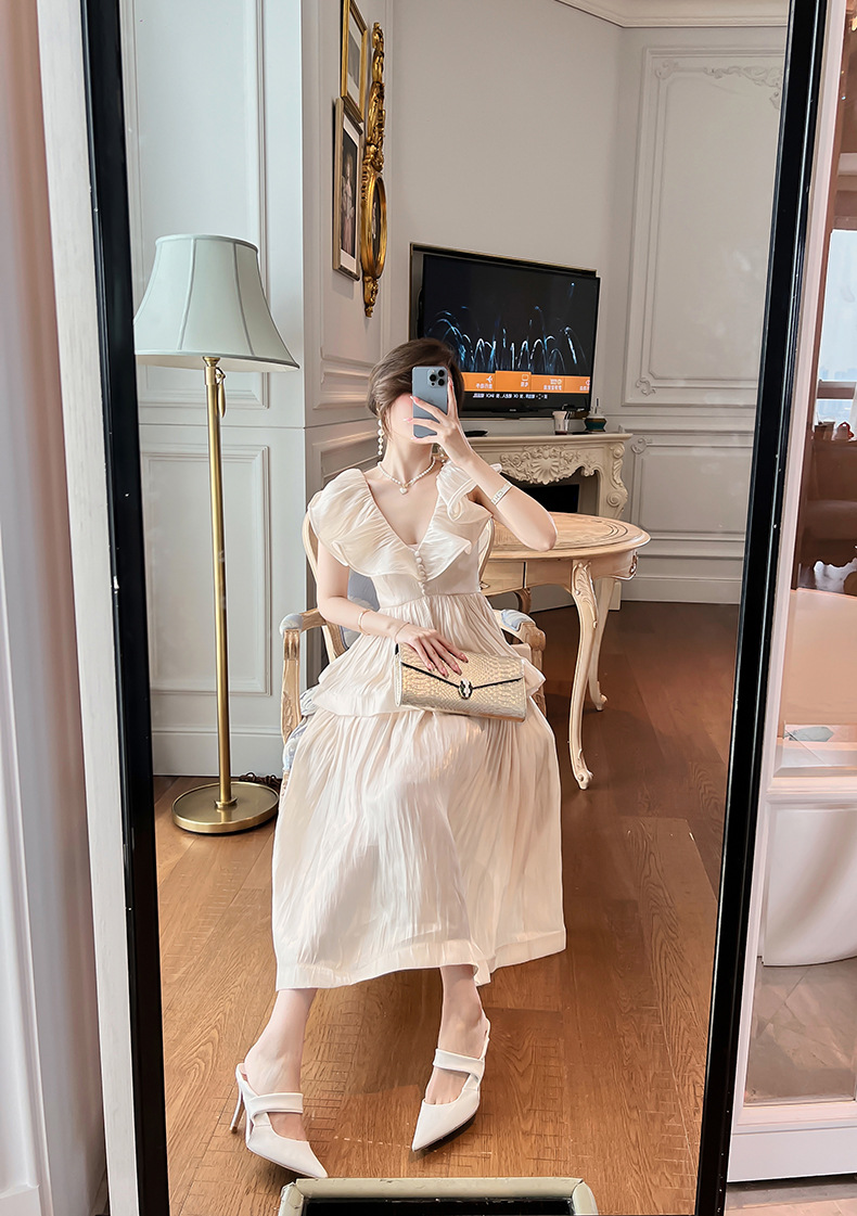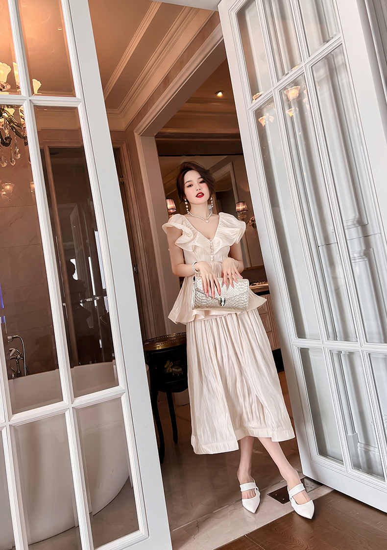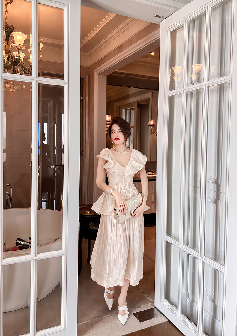 Đầm thiết kế kiểu dáng cổ điển lấy cảm hứng từ phong cách miền nam nước Pháp. Tay áo được cách điệu như những chiếc lá sen, tạo điểm nhấn bồng bềnh và dịu dàng. Phần eo may ôm vừa vặn giúp tôn lên đường nét cơ thể một cách tinh tế. Chất vải mềm mại, thoáng mát, thích hợp mặc trong mùa hè. Có thể phối cùng giày sandal và mũ rộng vành để tạo nên vẻ ngoại thanh lịch, đi dạo phố hay dự tiệc nhẹ. | Tên sản phẩm: Váy Đầm Liền Thân Nữ Hàng Mùa Hè - Thời Trang Nữ | Mã sản phẩm: K4877 - Giá: 1.590.000đ | Mã nhà sản xuất: CHDG-G04Hình ảnh sản phẩm