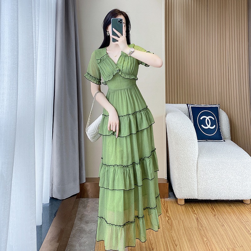 Chiếc đầm dành cho nữ này có thiết kế ôm nhẹ ở eo, giúp tôn dáng một cách tinh tế. Với phần cạp nâng cao và những đường xếp ly mềm mại ở viền, sản phẩm che đi phần bụng một cách hiệu quả. Kiểu dáng mang phong cách nhẹ nhàng, phù hợp cho mùa hè. Bạn có thể mặc chiếc đầm này để đi làm, dạo phố hay dự những buổi gặp mặt thân mật. | Tên sản phẩm: Váy Đầm Liền Thân Dáng Dài Nữ Hàng Mùa Hè - Thời Trang Nữ | Mã sản phẩm: K4887 - Giá: 1.230.000đ | Mã nhà sản xuất: DODAP-G04Hình ảnh sản phẩm