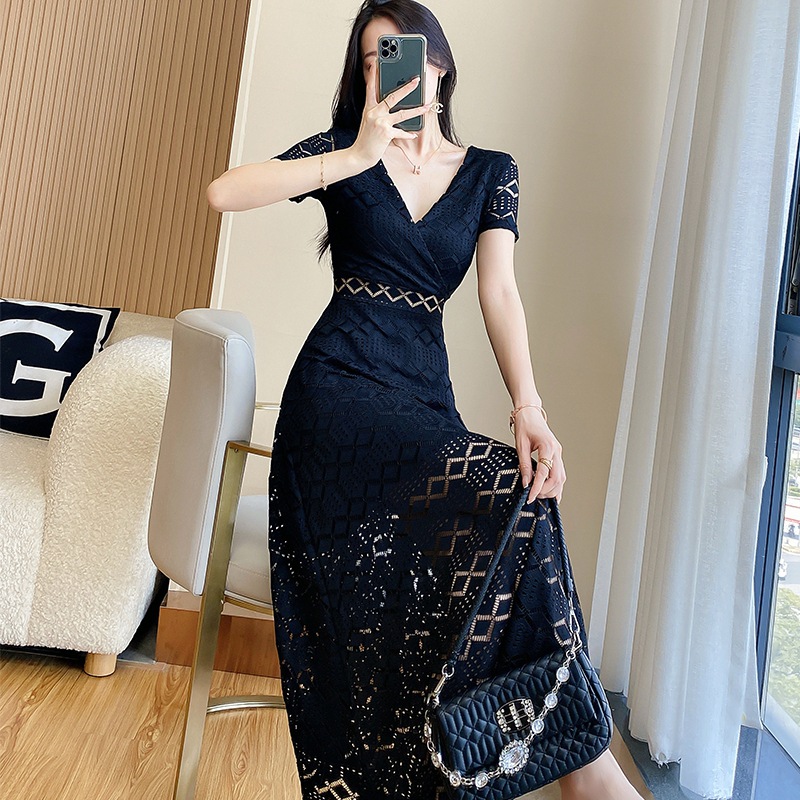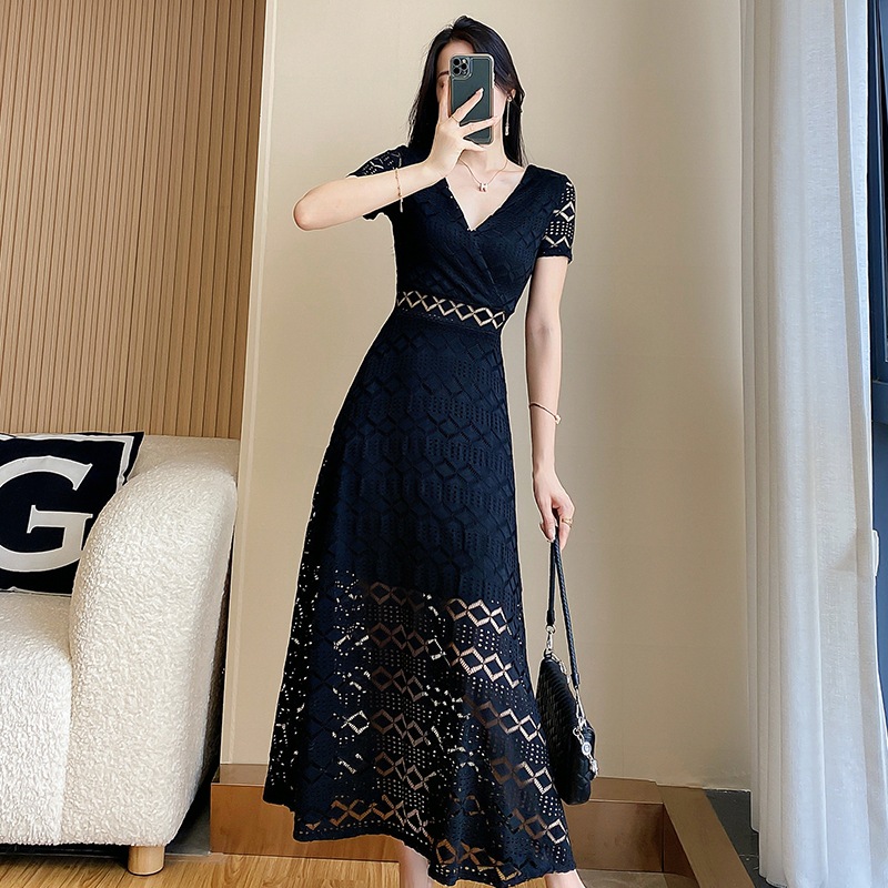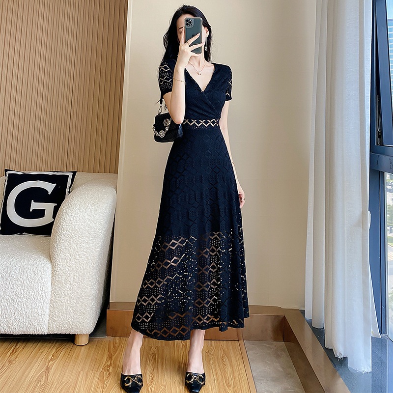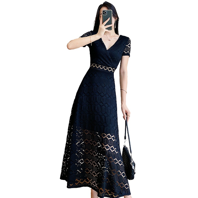 Đầm ngắn tay dáng dài màu đen, điểm nhấn là chi tiết ren tinh tế. Thiết kế ôm vừa vặn giúp tôn dáng một cách tự nhiên. Chất vải mềm mại, thoáng mát, rất phù hợp cho những ngày hè. Có thể mặc đi làm, dự tiệc hoặc dạo phố. Dễ dàng phối cùng giày cao gót hoặc trang sức lấp lánh để tạo điểm nhấn. | Tên sản phẩm: Váy Đầm Liền Thân Dáng Dài Nữ Chất Liệu Ren Hàng Mùa Hè - Thời Trang Nữ | Mã sản phẩm: K4889 - Giá: 1.180.000đ | Mã nhà sản xuất: DODAP-G04Hình ảnh sản phẩm