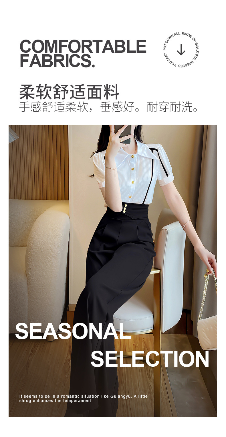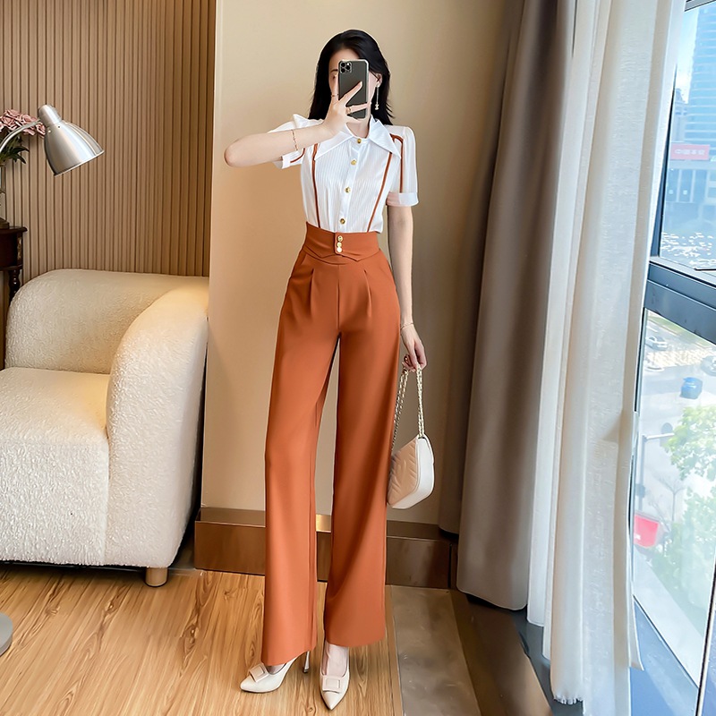 Bộ trang phục hai mảnh này, gồm áo và quần, rất phù hợp cho môi trường công sở hoặc dạo phố. Chất vải nhẹ nhàng, thoáng mát, giúp bạn cảm thấy dễ chịu trong những ngày hè. Áo kiểu dáng thanh lịch, kết hợp cùng quần ống rộng tạo nên vẻ ngoại hình chỉn chu, năng động. Bạn có thể mặc nguyên bộ để đi làm hoặc phối cùng các trang phục khác cho những dịp gặp gỡ thường ngày. | Tên sản phẩm: Đồ Bộ Nữ Cả Bộ 2 Món Hàng Mùa Hè Đồ Công Sở - Thời Trang Nữ | Mã sản phẩm: K4914 - Giá: 1.400.000đ | Mã nhà sản xuất: DODAP-G04Hình ảnh sản phẩm