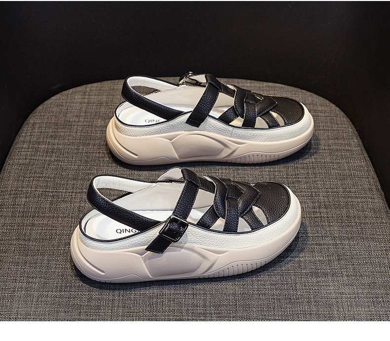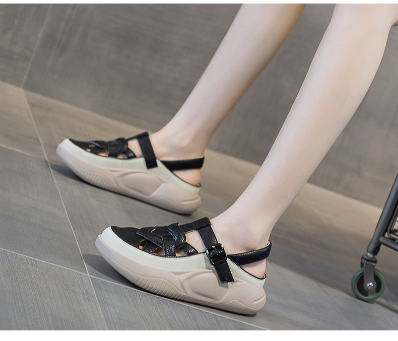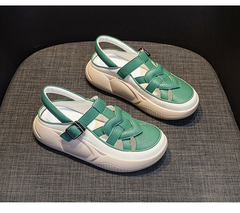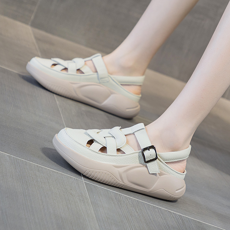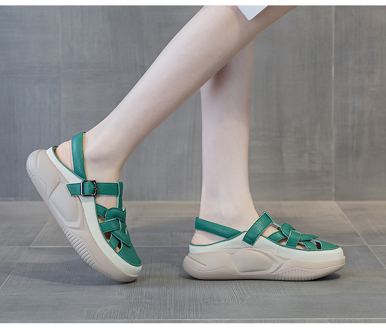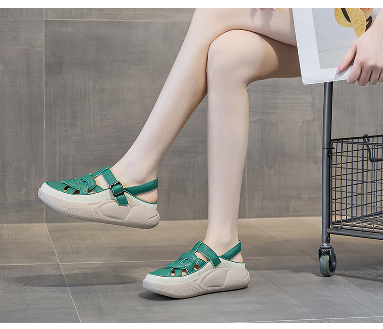 Đôi dép qu hậu dành cho nữ, kiểu dáng kín mũi với mặt trên làm từ chất liệu mềm mại. Đế dép bằng phẳng và êm ái, tạo cảm giác dễ chịu khi mang trong thời gian dài. Thiết kế nhiều màu kết hợp sinh động, phù hợp cho các hoạt động ngoài trời như dạo biển. Bạn có thể sử dụng như một đôi dép thông thường, dễ dàng kết hợp với nhiều loại trang phục trong mùa hè. | Tên sản phẩm: Giày Dép Sandal Nữ Chất Liệu Da Bò Đế Mềm Hàng Mùa Hè - Giày Dép Nữ | Mã sản phẩm: K5382 - Giá: 980.000đ | Mã nhà sản xuất: WEDG-G03Hình ảnh sản phẩm
