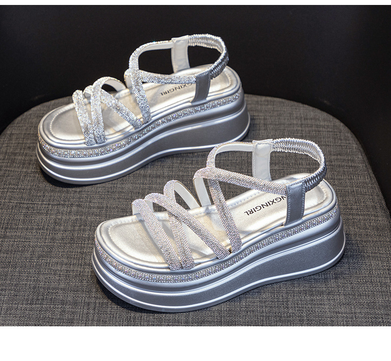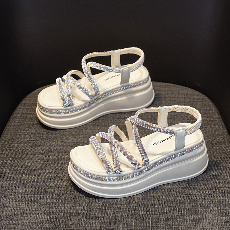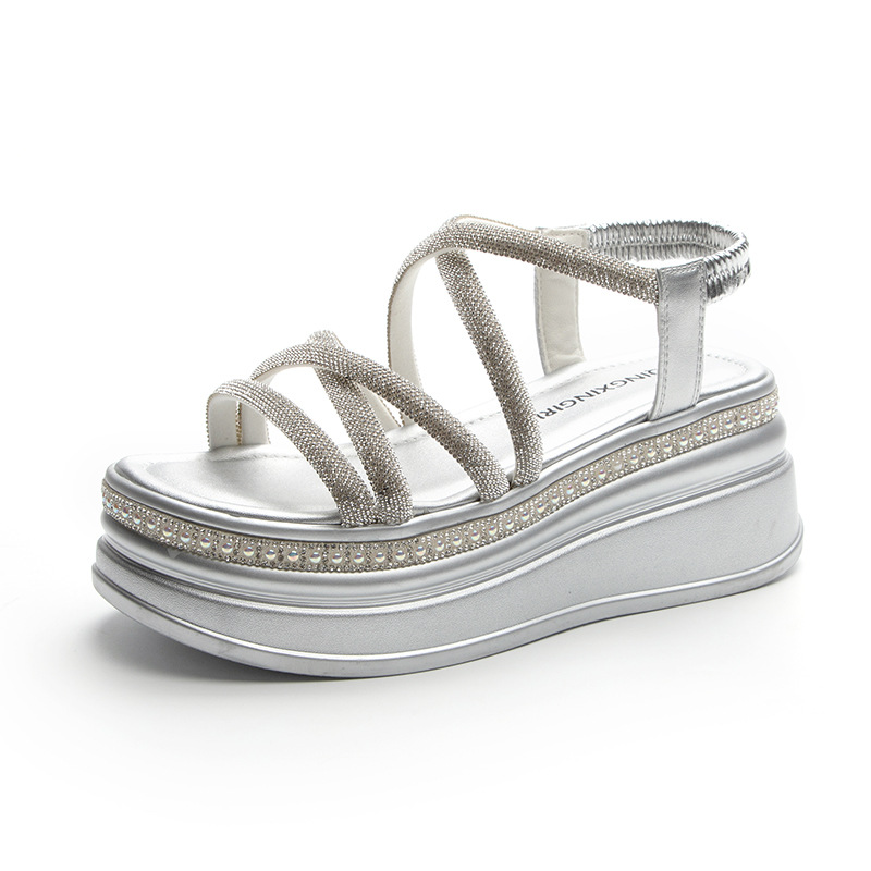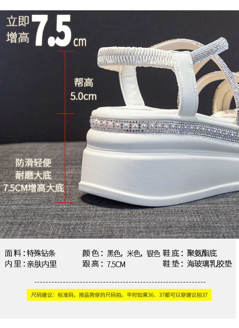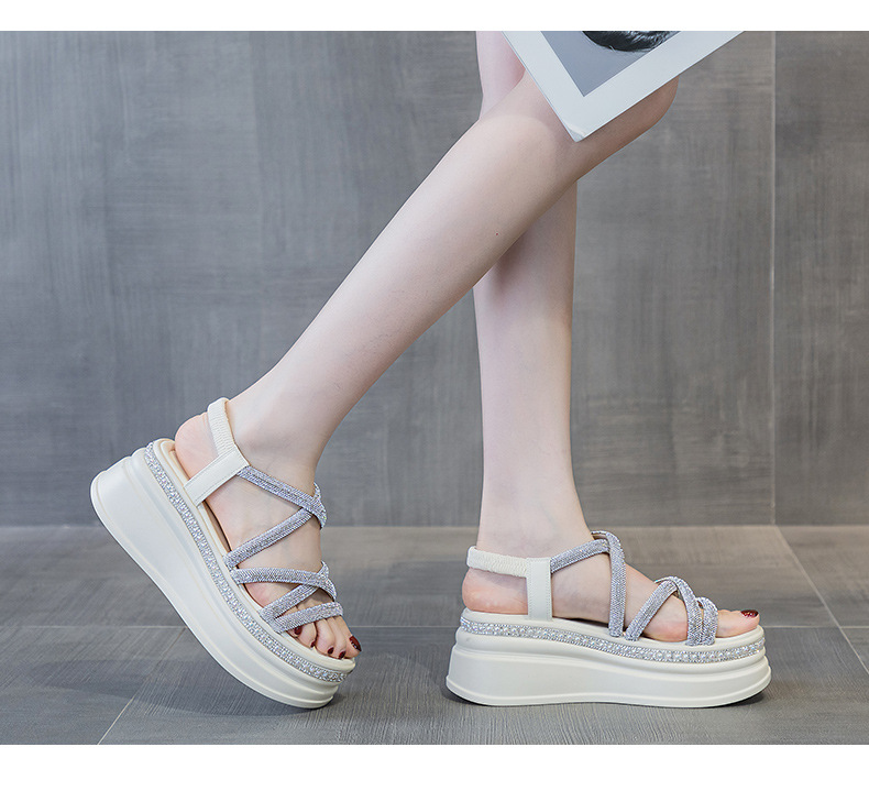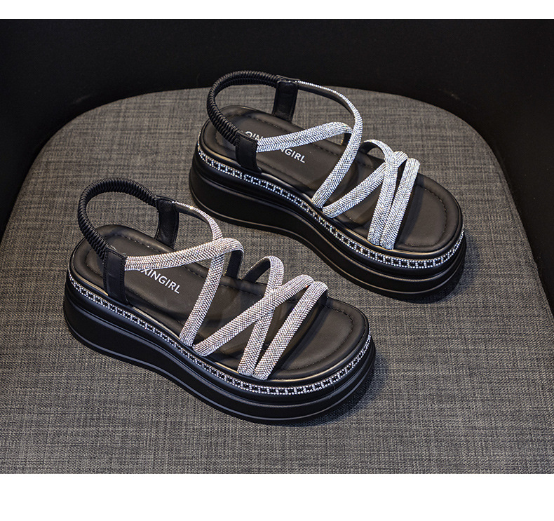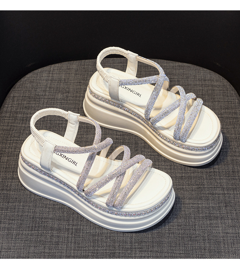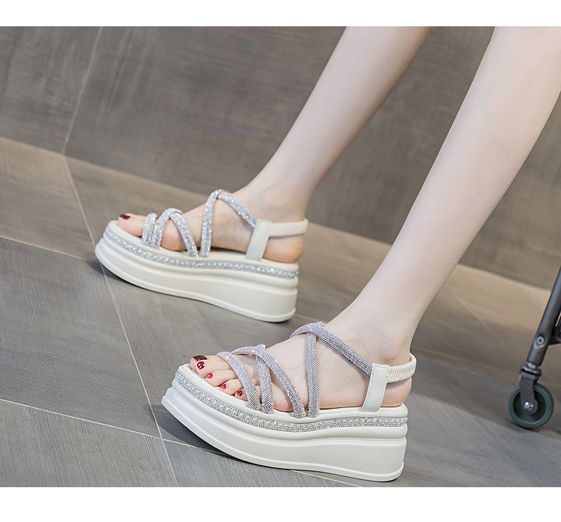 Dép quai ngang kiểu dáng châu Âu cho nữ, thiết kế mới cho mùa hè. Đế dép dày giúp tăng chiều cao nhẹ nhàng, phù hợp cho những bạn gái có chiều cao khiêm tốn. Các hạt đá lấp lánh được điểm xuyết tinh tế, tạo điểm nhấn nổi bật. Kiểu dép thoải mái, dễ dàng phối hợp với nhiều loại trang phục khác nhau như quần short, váy hay quần jeans. Mang dép này để tạo phong cách năng động và tươi mát cho những ngày hè. | Tên sản phẩm: Giày Dép Sandal Nữ Gắn Đá Tăng Chiều Cao Đế Cao Hàng Mùa Hè - Giày Dép Nữ | Mã sản phẩm: K5417 - Giá: 1.020.000đ | Mã nhà sản xuất: WEDG-G03Hình ảnh sản phẩm
