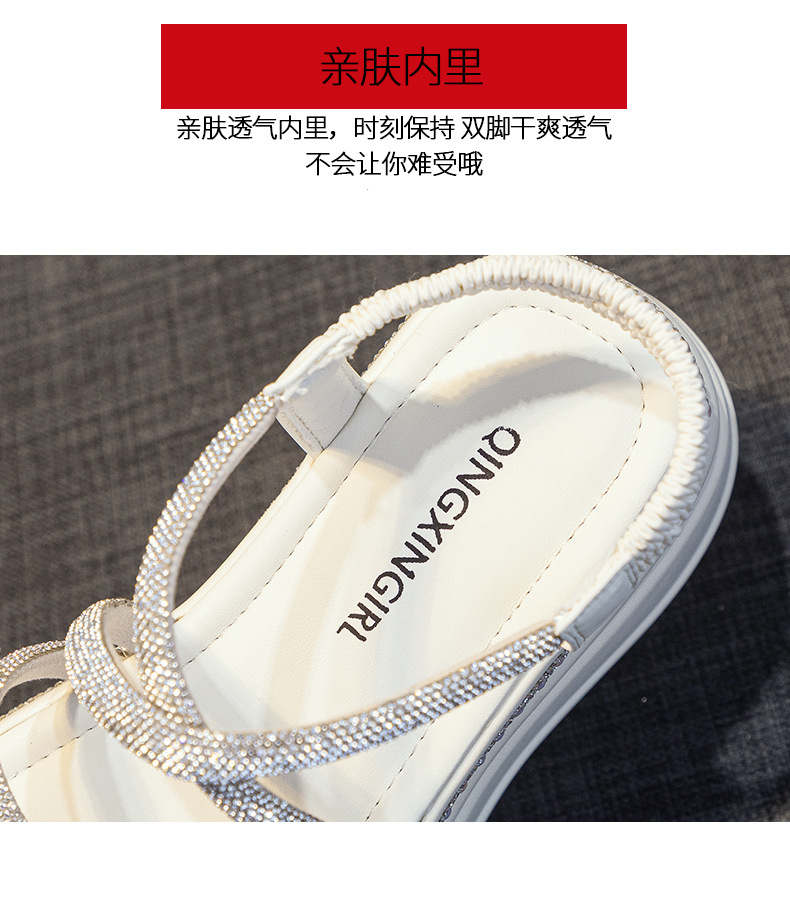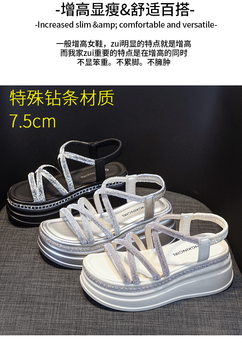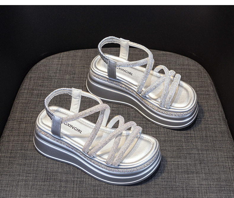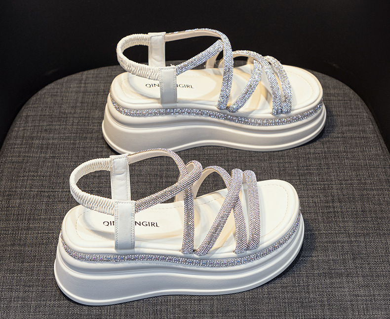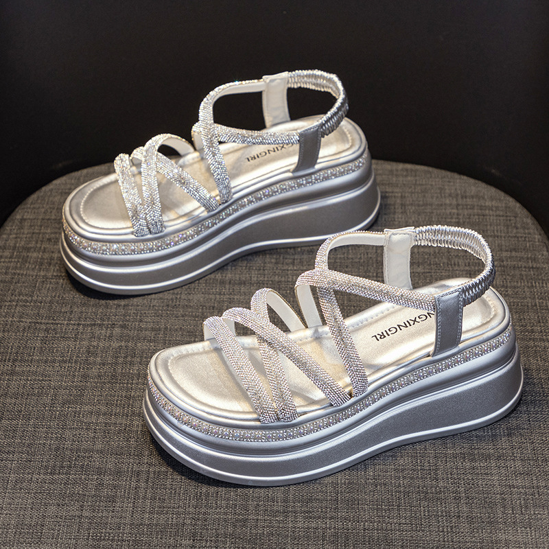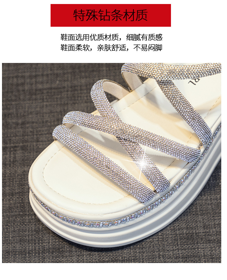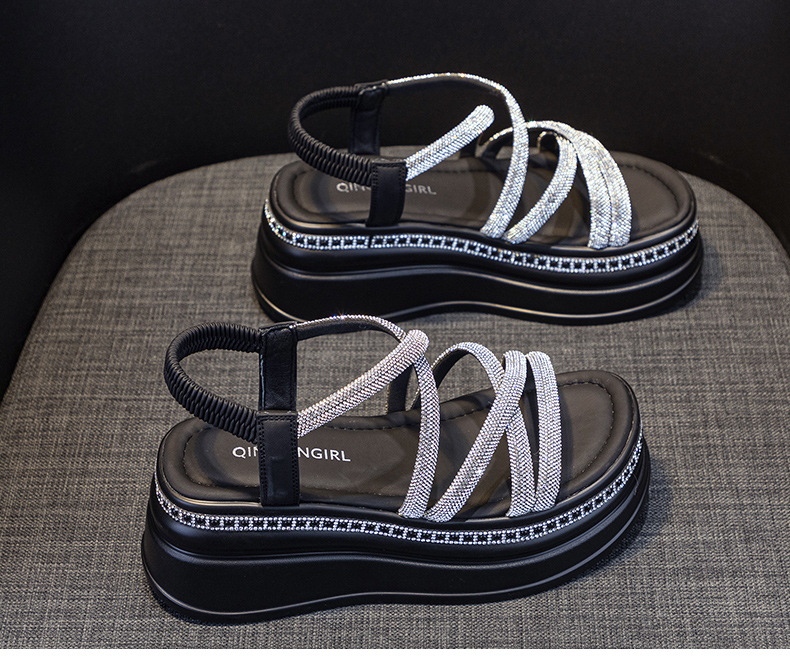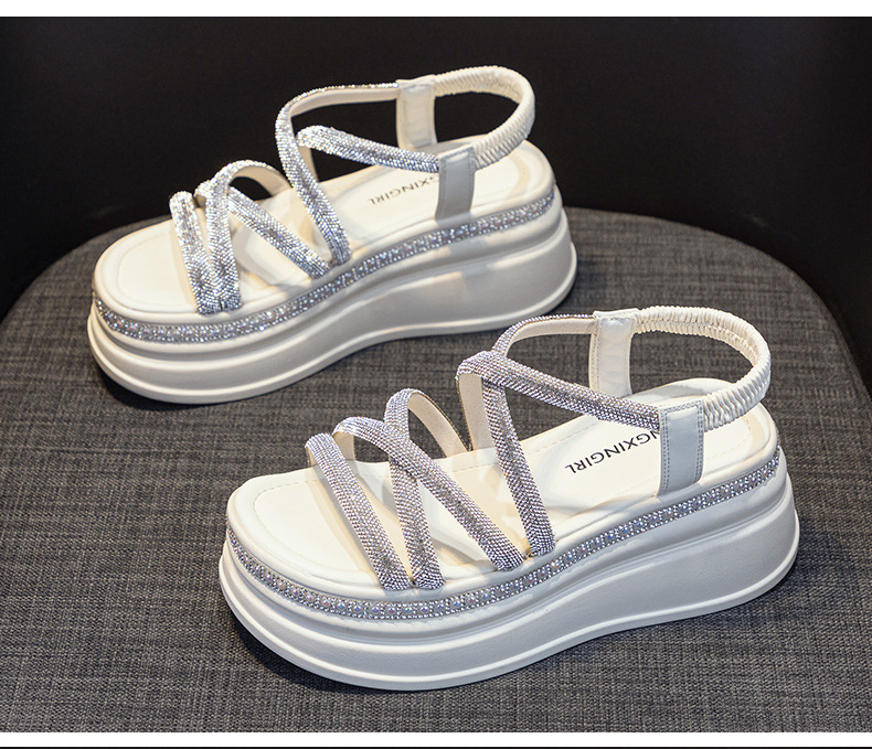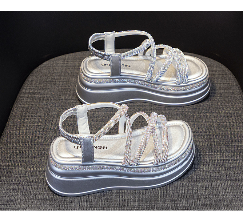 Dép quai ngang kiểu dáng châu Âu cho nữ, thiết kế mới cho mùa hè. Đế dép dày giúp tăng chiều cao nhẹ nhàng, phù hợp cho những bạn gái có chiều cao khiêm tốn. Các hạt đá lấp lánh được điểm xuyết tinh tế, tạo điểm nhấn nổi bật. Kiểu dép thoải mái, dễ dàng phối hợp với nhiều loại trang phục khác nhau như quần short, váy hay quần jeans. Mang dép này để tạo phong cách năng động và tươi mát cho những ngày hè. | Tên sản phẩm: Giày Dép Sandal Nữ Gắn Đá Tăng Chiều Cao Đế Cao Hàng Mùa Hè - Giày Dép Nữ | Mã sản phẩm: K5417 - Giá: 1.020.000đ | Mã nhà sản xuất: WEDG-G03Hình ảnh sản phẩm