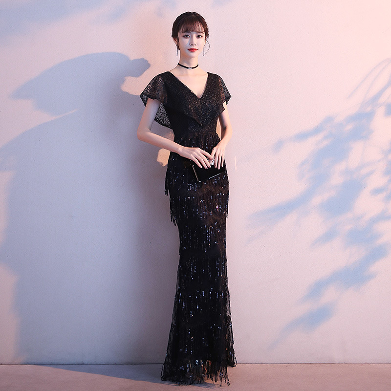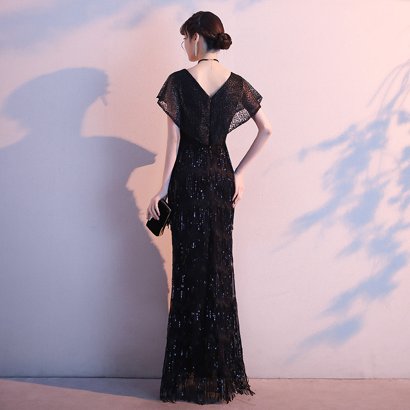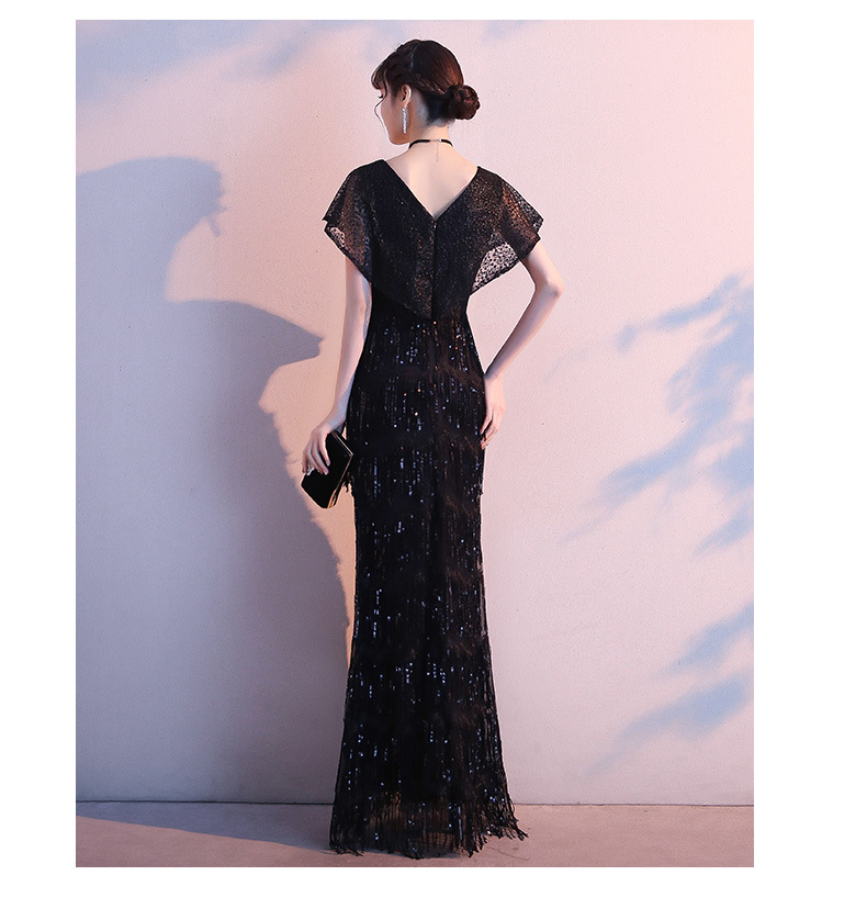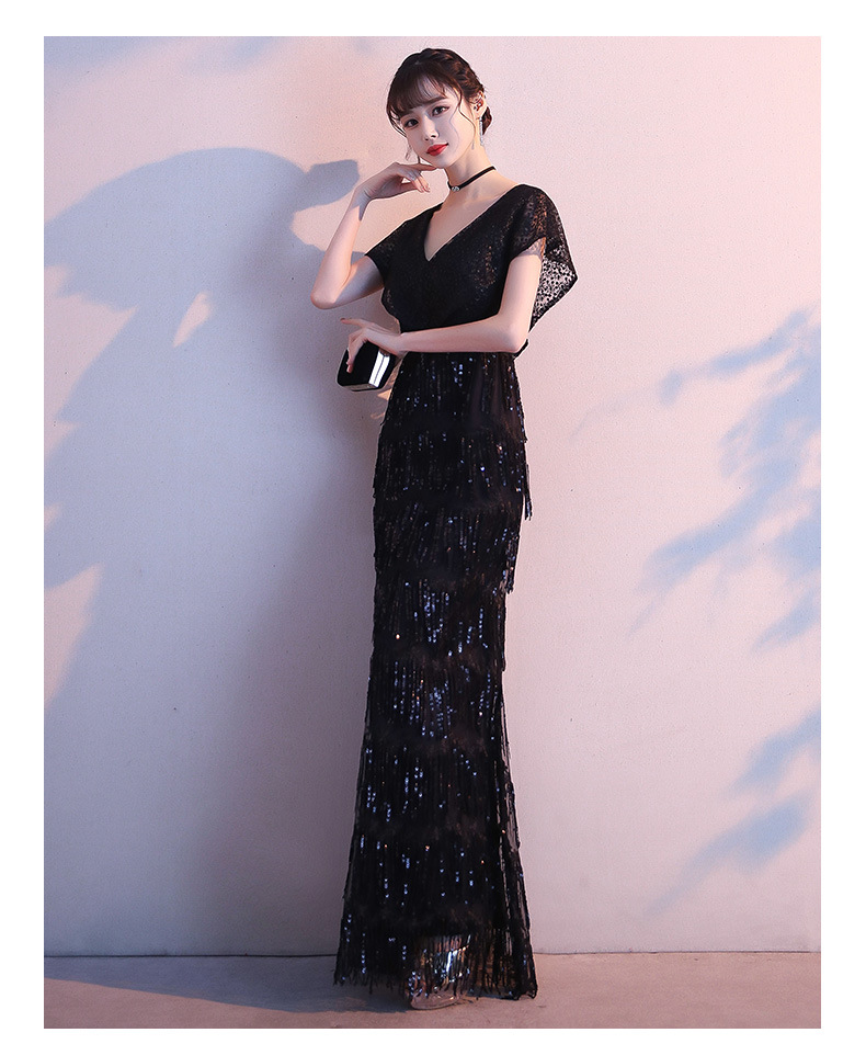 Đầm dạ hội nữ tính với thiết kế cổ chữ V tôn dáng, tay dài lịch sự. Đầm ôm sát cơ thể tạo phom dáng thanh thoát, phần chân váy xòe nhẹ tựa đuôi cá duyên dáng. Chất vải mềm mại giúp bạn dễ dàng vận động. Sản phẩm thích hợp cho các buổi tiệc tối, sự kiện hoặc v trò dẫn chương trình. Phù hợp để diện trong những dịp cần sự trang trọng và nổi bật. | Tên sản phẩm: Váy Đầm Liền Thân Dự Tiệc Nữ Dáng Ôm Kiểu Đuôi Cá Cổ Chữ V - Thời Trang Nữ | Mã sản phẩm: K5663 - Giá: 1.390.000đ | Mã nhà sản xuất: MITY,-G04Hình ảnh sản phẩm