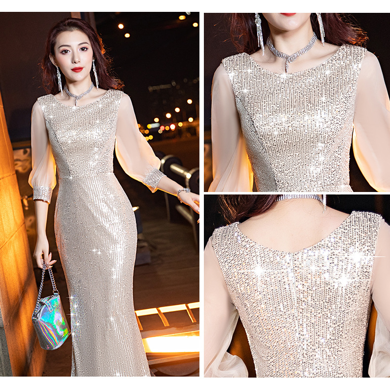 Chiếc váy dự tiệc này có điểm nhấn là các hạt ánh sáng lấp lánh tinh tế. Thiết kế ôm sát cơ thể, xòe nhẹ ở phần gấu tạo dáng như đuôi cá, giúp tôn lên những đường nét cơ thể. Váy rất phù hợp cho các buổi biểu diễn, dẫn chương trình hay dự tiệc cuối năm. Bạn có thể kết hợp cùng phụ kiện đơn giản để tạo điểm nhấn cho trang phục. | Tên sản phẩm: Váy Đầm Liền Thân Dự Tiệc Nữ Kiểu Đuôi Cá - Thời Trang Nữ | Mã sản phẩm: K6076 - Giá: 1.380.000đ | Mã nhà sản xuất: MITY,-G04Hình ảnh sản phẩm