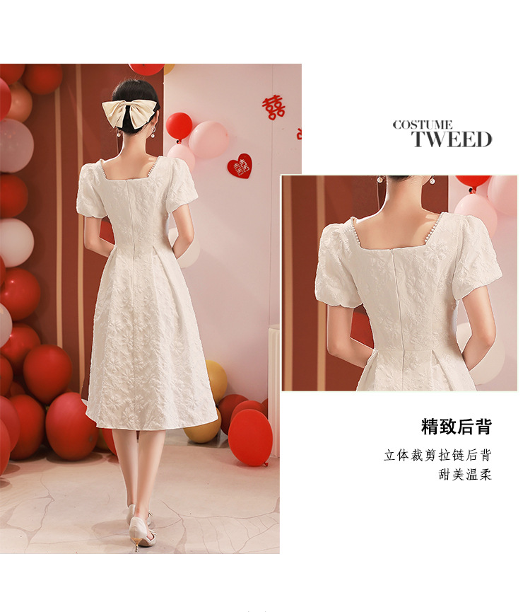 Chiếc đầm trắng tinh khôi này mang phong cách lãng mạn, rất phù hợp cho những dịp quan trọng như làm thủ tục kết hôn, tiệc cưới hay gặp mặt gia đình. Thiết kế thanh lịch với những đường cắt may tinh tế giúp tôn lên vẻ đẹp dịu dàng của người mặc. Sản phẩm được làm từ chất vải nhẹ, mát mẻ, thích hợp dùng trong mùa hè. Bạn có thể mặc nó trong nhiều sự kiện khác nhau, dễ dàng phối cùng giày cao gót và một vài phụ kiện đơn giản để hoàn thiện bộ trang phục. | Tên sản phẩm: Váy Đầm Liền Thân Dự Tiệc Nữ Hàng Mùa Hè Dùng Trong Lễ Cưới - Thời Trang Nữ | Mã sản phẩm: K6113 - Giá: 1.250.000đ | Mã nhà sản xuất: MITY,-G04Hình ảnh sản phẩm