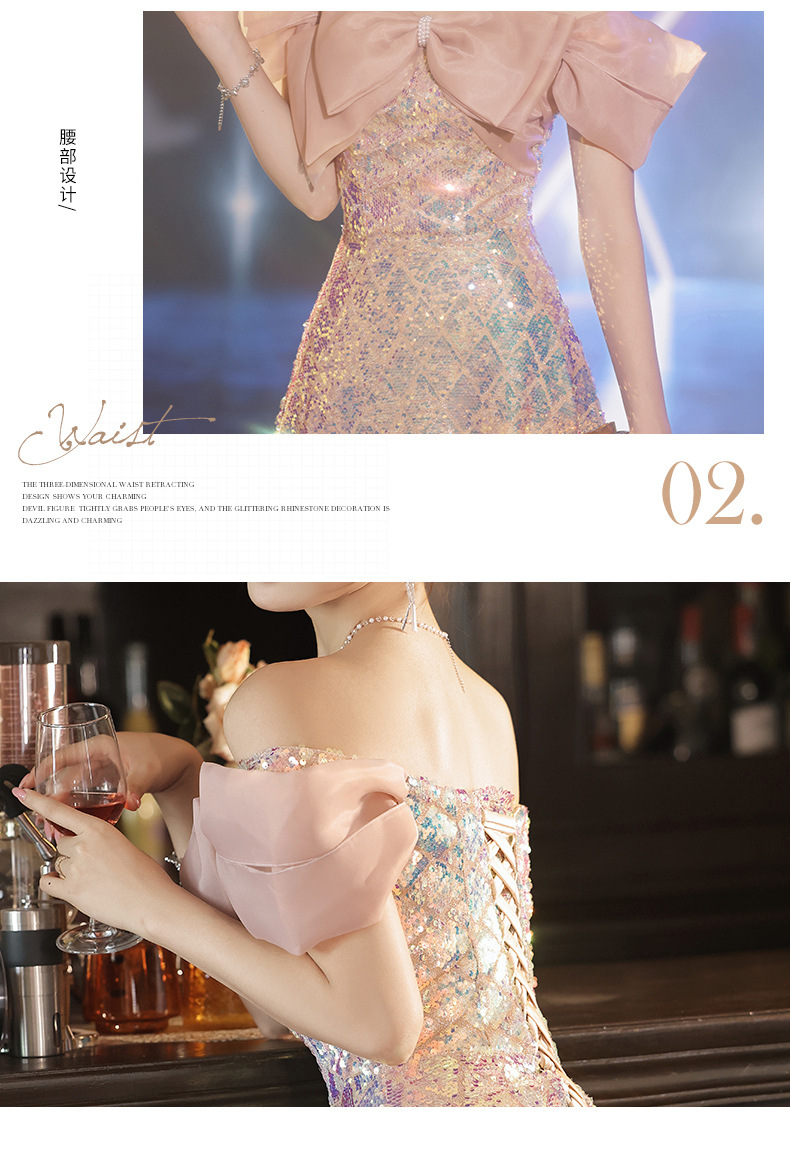 Chiếc đầm dạ hội mang phong cách Pháp, điểm nhấn là phần v được khoét thẳng. Thiết kế này toát lên vẻ thanh lịch và nữ tính, rất phù hợp cho các buổi tiệc hoặc sự kiện quan trọng. Áo được phối màu hồng ngọt ngào cùng các chi tiết ánh kim lấp lánh tinh tế. Bạn chỉ cần mặc và kết hợp cùng một đôi giày cao gót nhẹ nhàng là đã có một set đồ hoàn hảo. | Tên sản phẩm: Váy Đầm Liền Thân Dự Tiệc Nữ - Thời Trang Nữ | Mã sản phẩm: K6171 - Giá: 1.570.000đ | Mã nhà sản xuất: MITY,-G04Hình ảnh sản phẩm