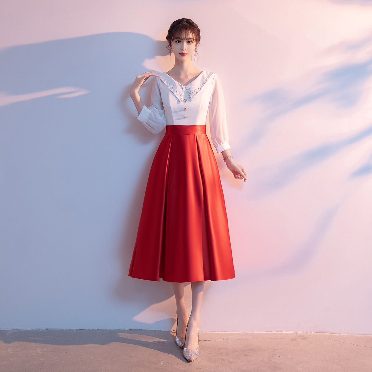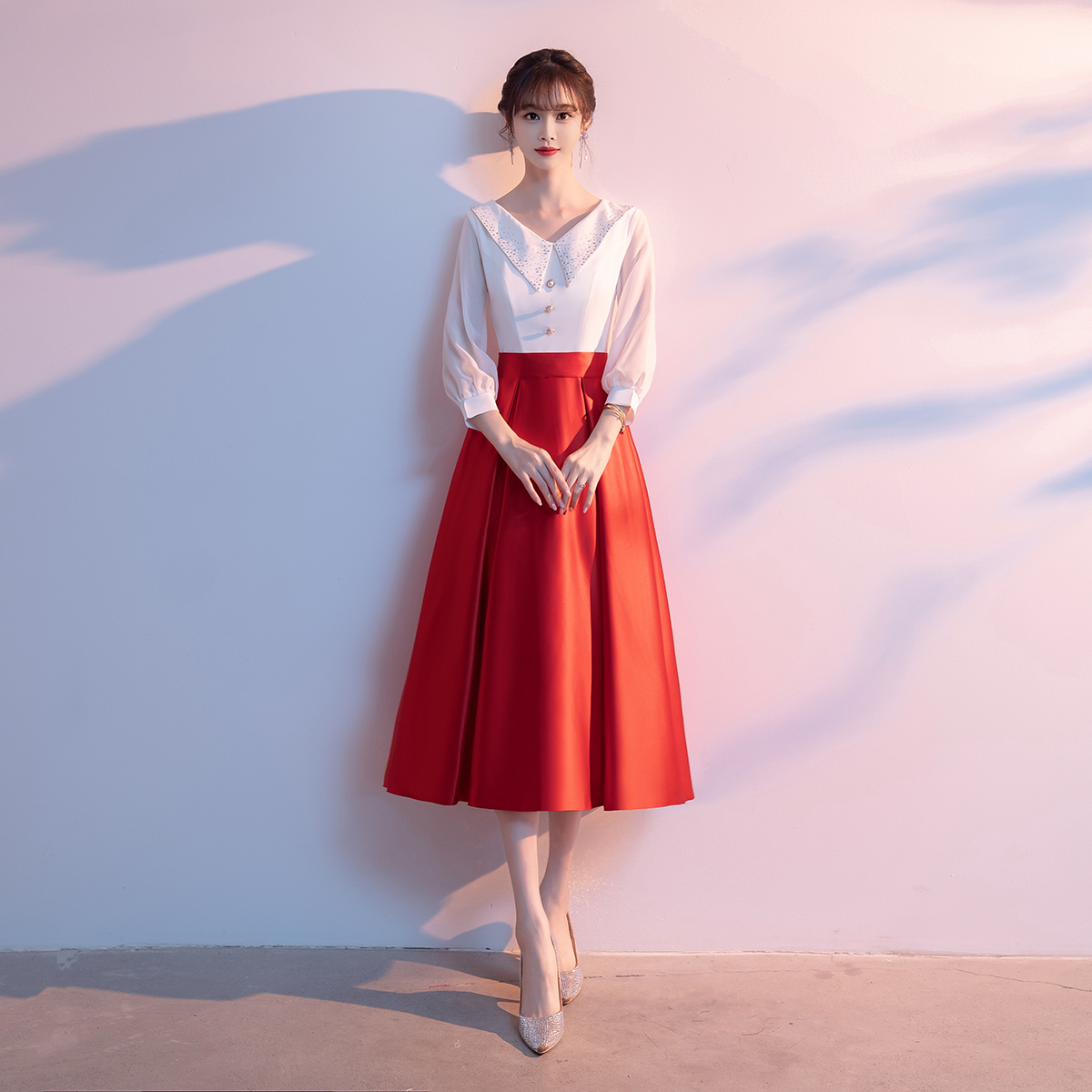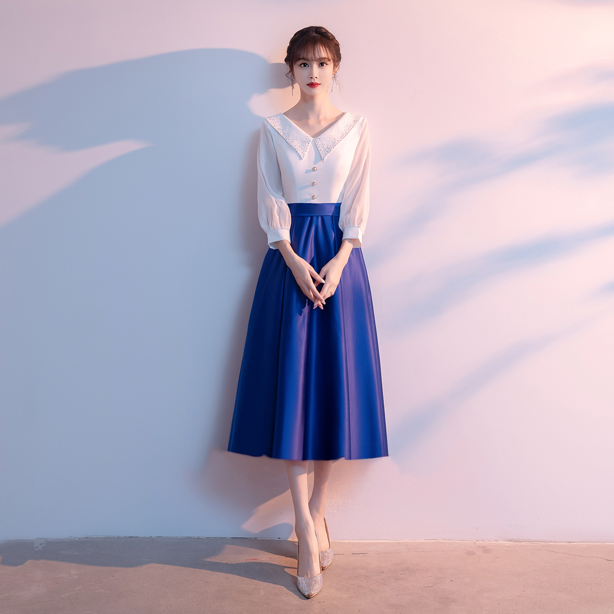 Bộ trang phục biểu diễn này mang phong cách học viện trẻ trung, dành riêng cho các bạn nữ trong dàn hợp xướng hoặc tiết mục ngâm thơ. Thiết kế gồm áo và chân váy ngắn, tạo vẻ ngoài lịch sự, năng động. Chất vải co giãn nhẹ giúp người mặc thoải mái di chuyển và biểu diễn. Sản phẩm dễ dàng phối cùng giày và phụ kiện, phù hợp cho nhiều dịp biểu diễn trên sân khấu. | Tên sản phẩm: Váy Đầm Ngắn Nữ - Thời Trang Nữ | Mã sản phẩm: K6205 - Giá: 1.140.000đ | Mã nhà sản xuất: MITY,-G04Hình ảnh sản phẩm