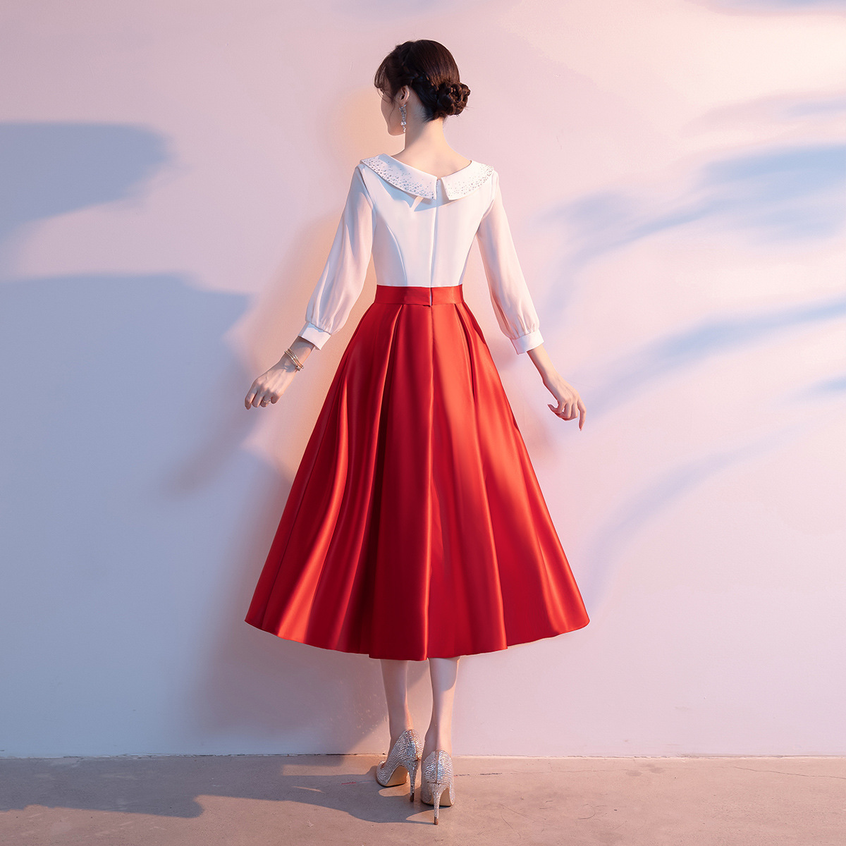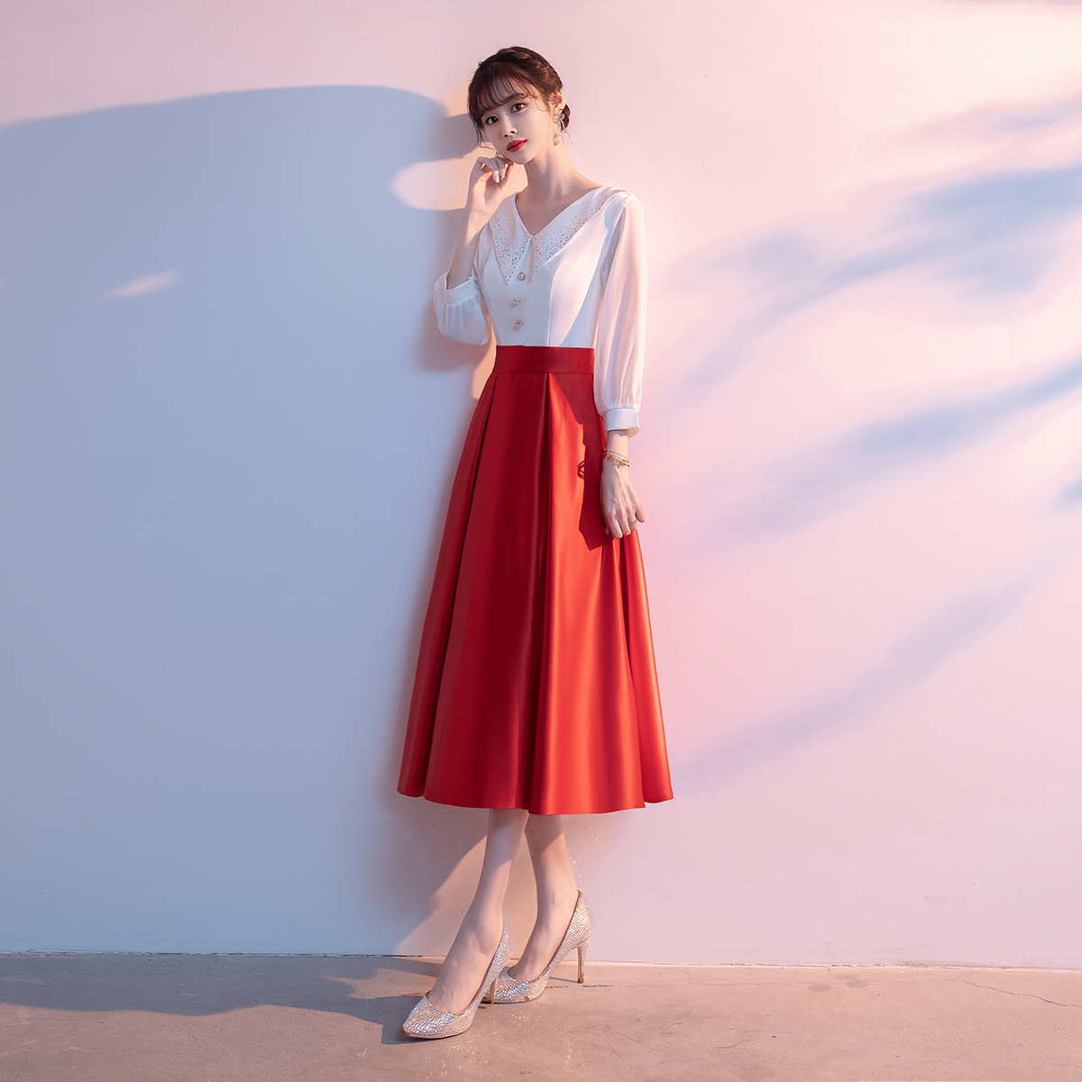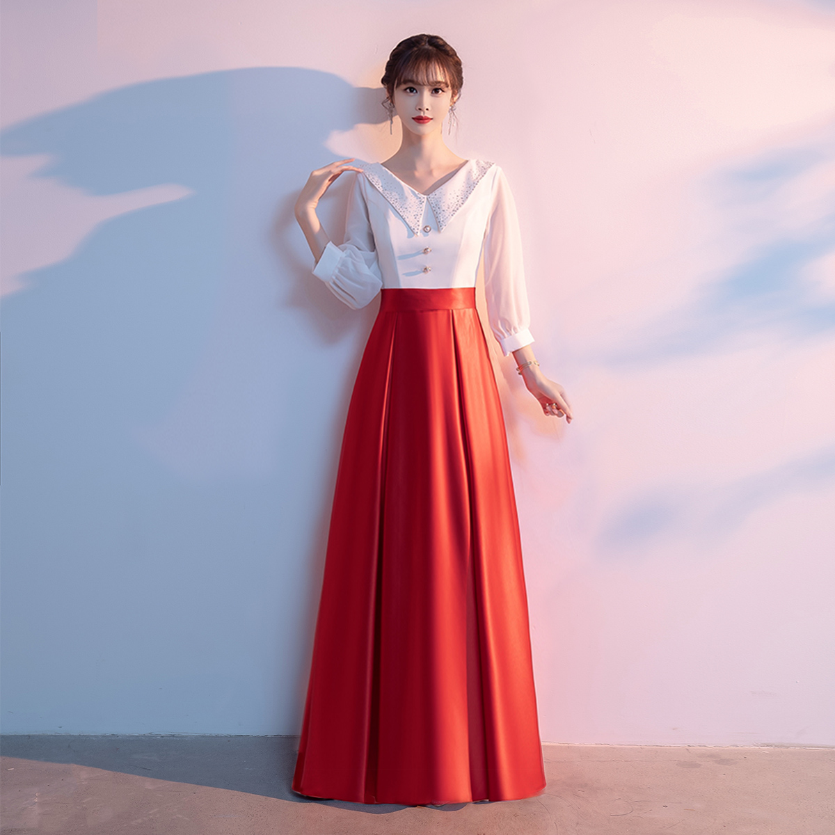 Bộ trang phục biểu diễn này mang phong cách học viện trẻ trung, dành riêng cho các bạn nữ trong dàn hợp xướng hoặc tiết mục ngâm thơ. Thiết kế gồm áo và chân váy ngắn, tạo vẻ ngoài lịch sự, năng động. Chất vải co giãn nhẹ giúp người mặc thoải mái di chuyển và biểu diễn. Sản phẩm dễ dàng phối cùng giày và phụ kiện, phù hợp cho nhiều dịp biểu diễn trên sân khấu. | Tên sản phẩm: Váy Đầm Ngắn Nữ - Thời Trang Nữ | Mã sản phẩm: K6205 - Giá: 1.140.000đ | Mã nhà sản xuất: MITY,-G04Hình ảnh sản phẩm