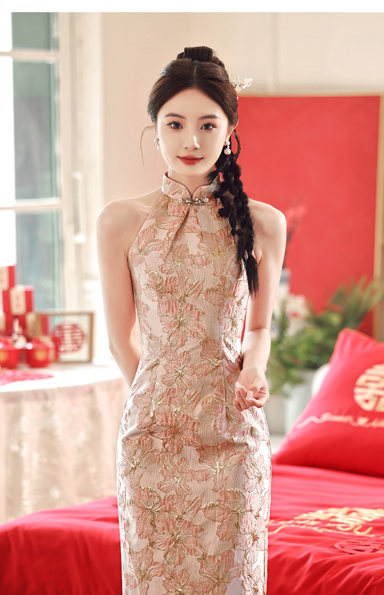 Áo dài cách tân dành cho cô dâu trong ngày cưới. Thiết kế theo phong cách hiện đại pha trộn nét duyên dáng truyền thống, tôn dáng người mặc. Chất liệu vải mềm mại, màu hồng thắm tươi tắn phù hợp cho các nghi thức trong tiệc cưới. Sản phẩm thích hợp mặc trong lễ thành hôn, tiếp khách hoặc chụp ảnh kỷ niệm. Có thể giặt tay nhẹ nhàng và bảo quản nơi khô ráo để giữ form áo luôn đẹp. | Tên sản phẩm: Váy Đầm Liền Thân Dự Tiệc Nữ Hàng Mùa Xuân Thu Đông Dùng Trong Lễ Cưới - Thời Trang Nữ | Mã sản phẩm: K6405 - Giá: 1.520.000đ | Mã nhà sản xuất: LURYMI-G04Hình ảnh sản phẩm