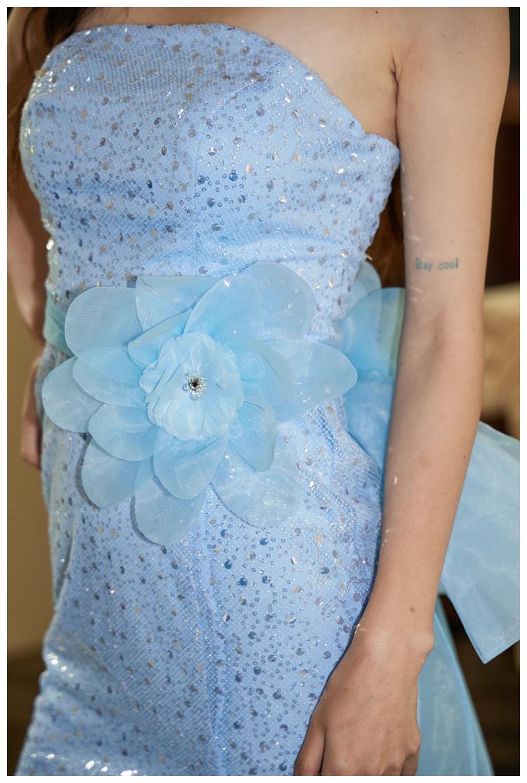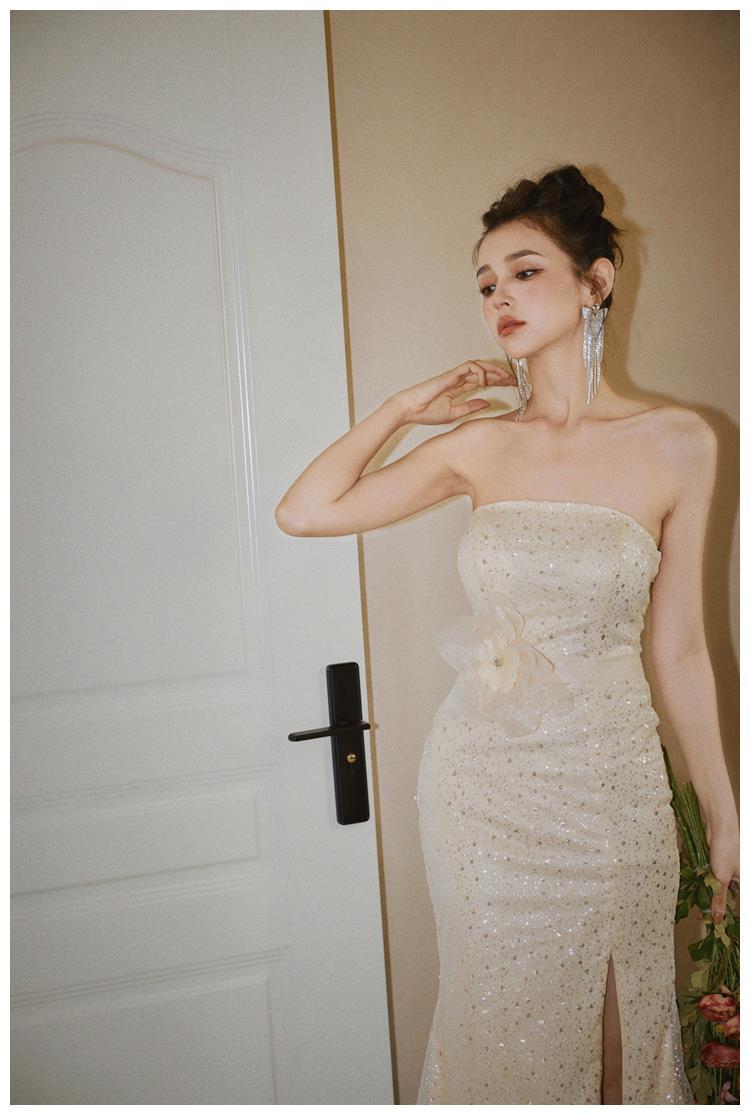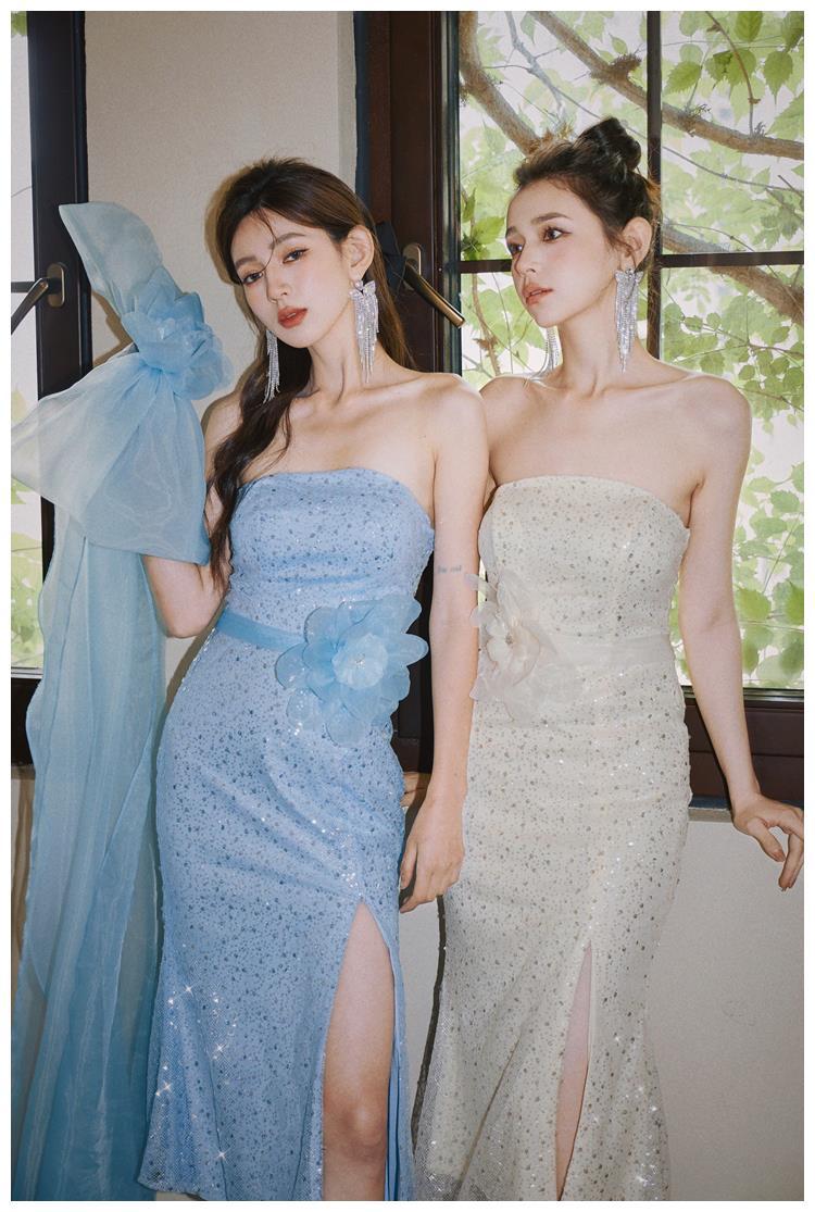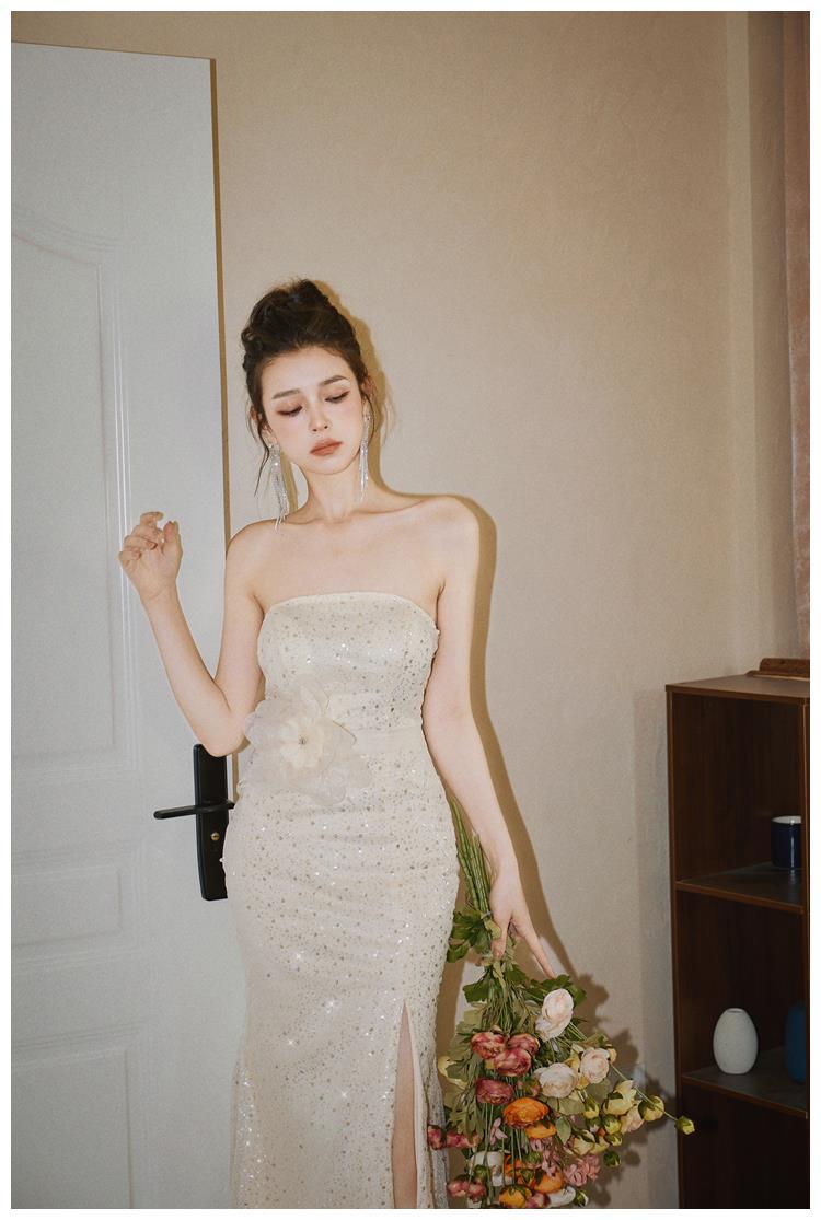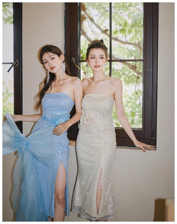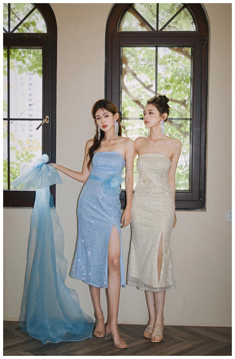 Đầm dự tiệc ôm sát với phần trên là kiểu áo không tay, điểm nhấn là những bông hoa nổi cùng dải băng mềm mại. Từ eo trở xuống, thiết kế xòe nhẹ tạo dáng như đuôi cá, toàn thân được phủ bởi những hạt lấp lánh li ti. Sản phẩm phù hợp cho các buổi tiệc tối, dễ dàng kết hợp với phụ kiện và giày cao gót để tạo nên vẻ ngoại hình ấn tượng. | Tên sản phẩm: Váy Đầm Liền Thân Nữ Họa Tiết Hoa - Thời Trang Nữ | Mã sản phẩm: K6457 - Giá: 2.000.000đ | Mã nhà sản xuất: LURYMI-G05Hình ảnh sản phẩm