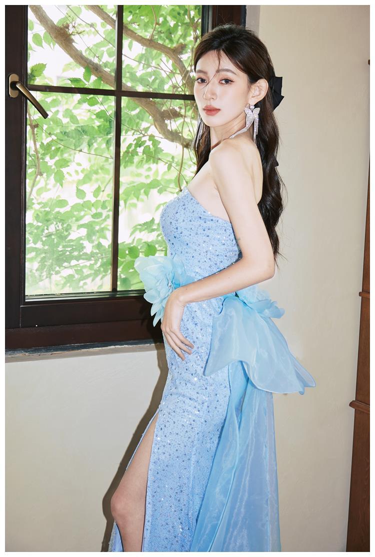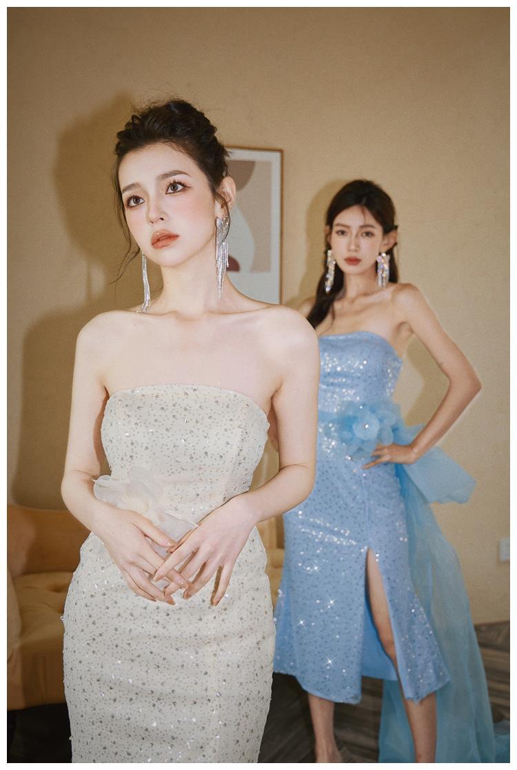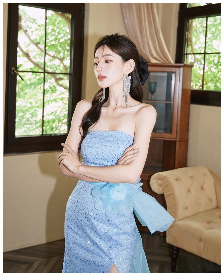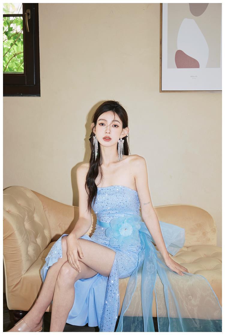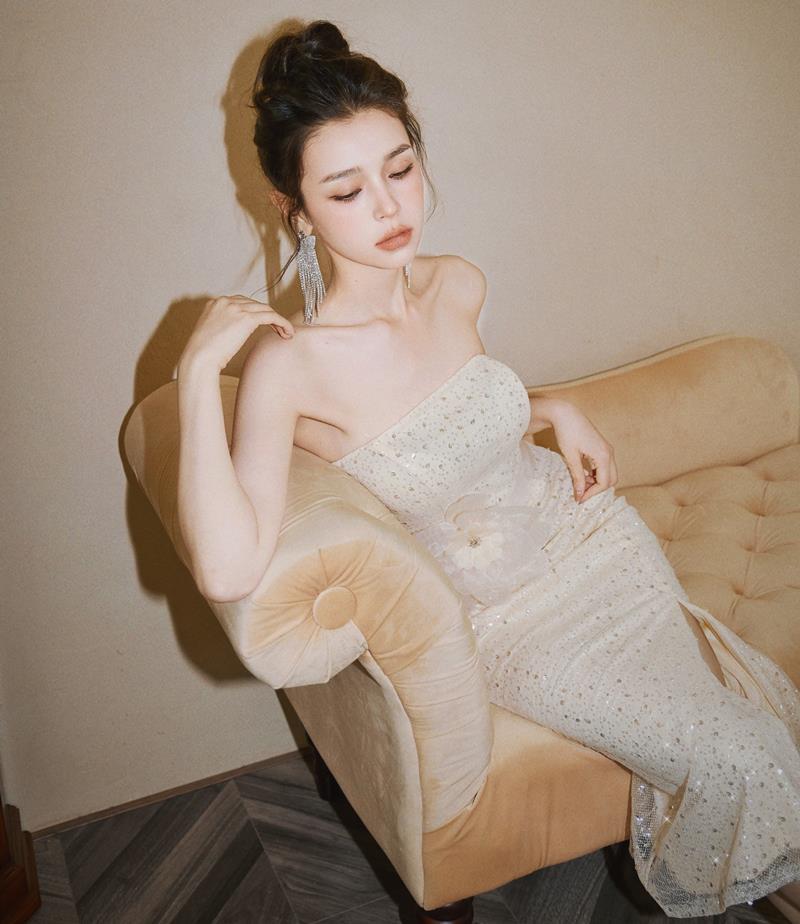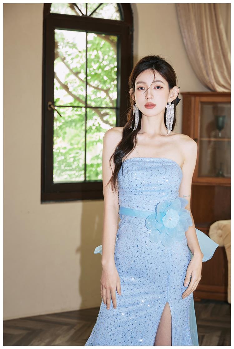 Đầm dự tiệc ôm sát với phần trên là kiểu áo không tay, điểm nhấn là những bông hoa nổi cùng dải băng mềm mại. Từ eo trở xuống, thiết kế xòe nhẹ tạo dáng như đuôi cá, toàn thân được phủ bởi những hạt lấp lánh li ti. Sản phẩm phù hợp cho các buổi tiệc tối, dễ dàng kết hợp với phụ kiện và giày cao gót để tạo nên vẻ ngoại hình ấn tượng. | Tên sản phẩm: Váy Đầm Liền Thân Nữ Họa Tiết Hoa - Thời Trang Nữ | Mã sản phẩm: K6457 - Giá: 2.000.000đ | Mã nhà sản xuất: LURYMI-G05Hình ảnh sản phẩm