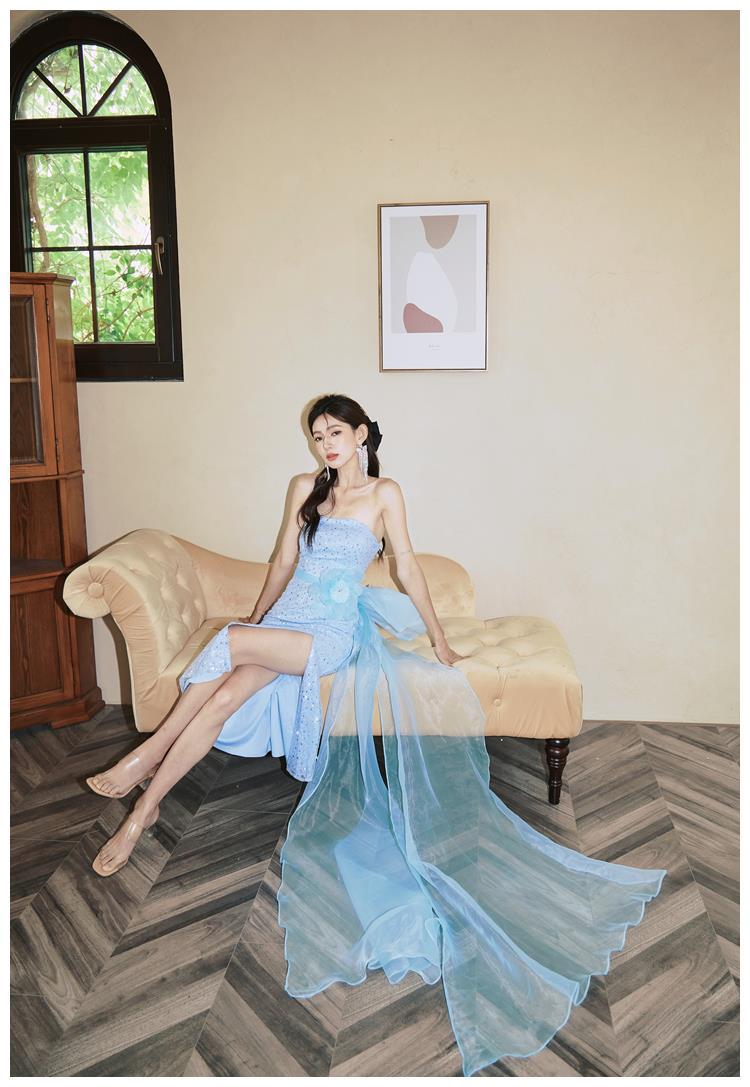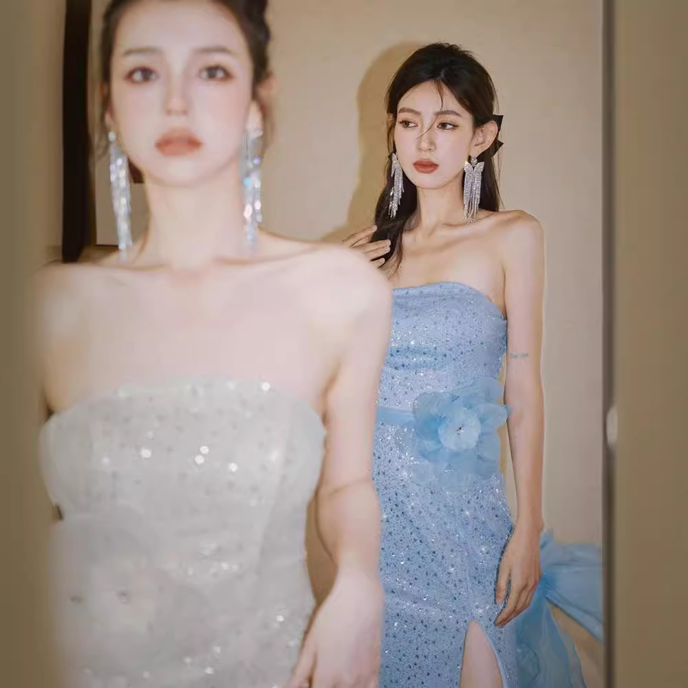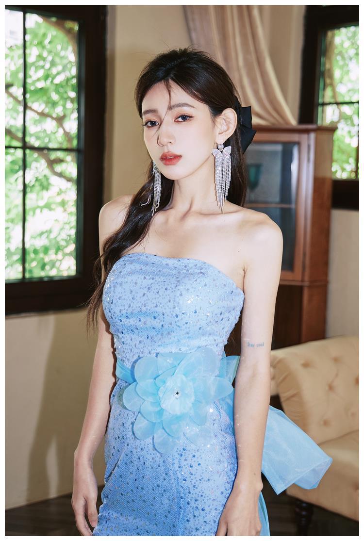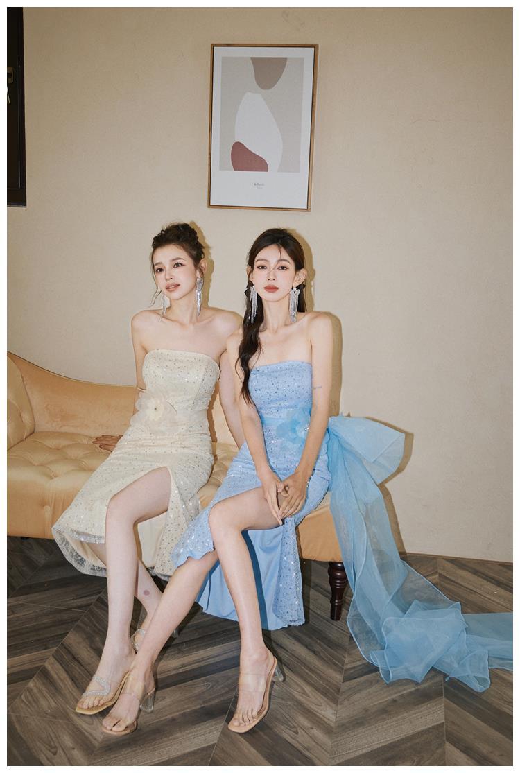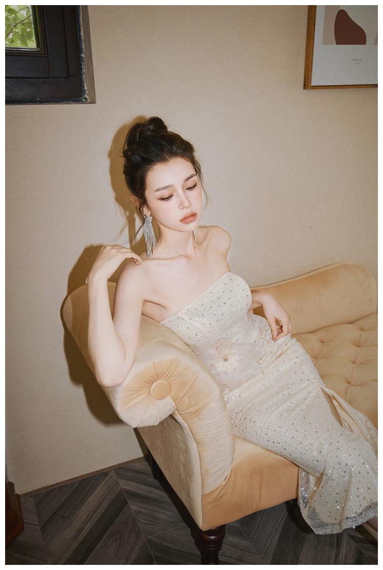 Đầm dự tiệc ôm sát với phần trên là kiểu áo không tay, điểm nhấn là những bông hoa nổi cùng dải băng mềm mại. Từ eo trở xuống, thiết kế xòe nhẹ tạo dáng như đuôi cá, toàn thân được phủ bởi những hạt lấp lánh li ti. Sản phẩm phù hợp cho các buổi tiệc tối, dễ dàng kết hợp với phụ kiện và giày cao gót để tạo nên vẻ ngoại hình ấn tượng. | Tên sản phẩm: Váy Đầm Liền Thân Nữ Họa Tiết Hoa - Thời Trang Nữ | Mã sản phẩm: K6457 - Giá: 2.000.000đ | Mã nhà sản xuất: LURYMI-G05Hình ảnh sản phẩm