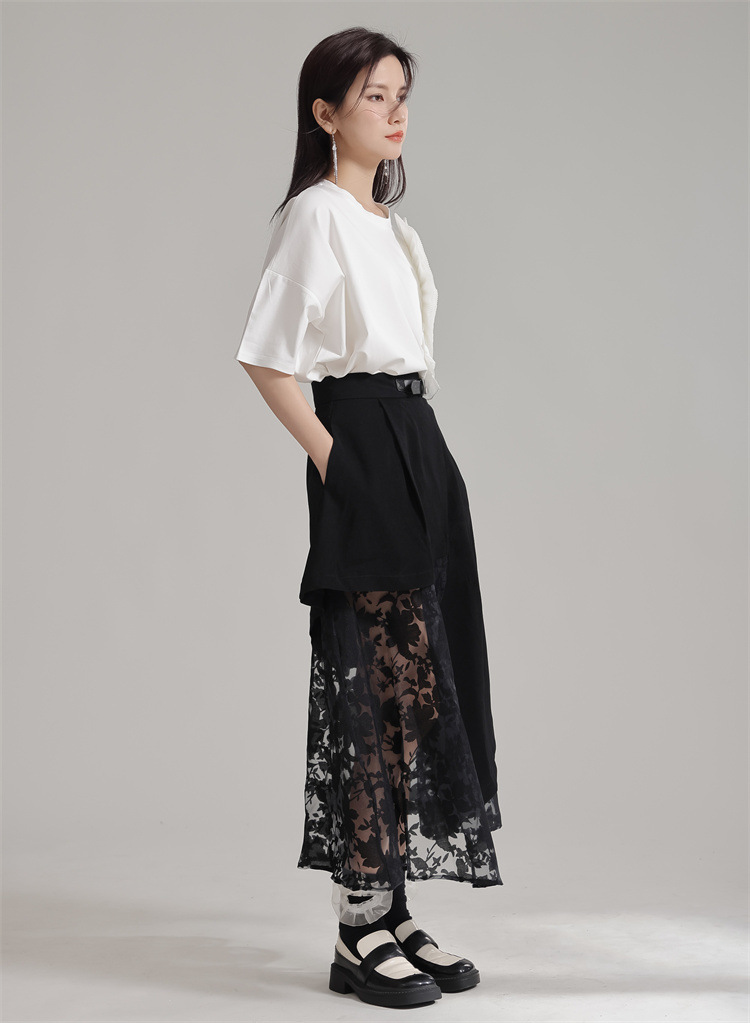 Chiếc váy dáng dài qua gối này có điểm nhấn từ phần cắt ghép vải lưới một cách ngẫu hứng, tạo nên vẻ đẹp hiện đại nhưng vẫn giữ được nét duyên dáng. Thiết kế với phần eo cao giúp tôn dáng người mặc. Bạn có thể phối cùng áo thun hoặc áo sơ mi đơn giản để tạo nên những bộ trang phục hàng ngày vừa thoải mái lại không kém phần ấn tượng. | Tên sản phẩm: Chân Váy Đầm Nữ Hàng Mùa Hè - Thời Trang Nữ | Mã sản phẩm: K6499 - Giá: 940.000đ | Mã nhà sản xuất: GUDOR-G03Hình ảnh sản phẩm