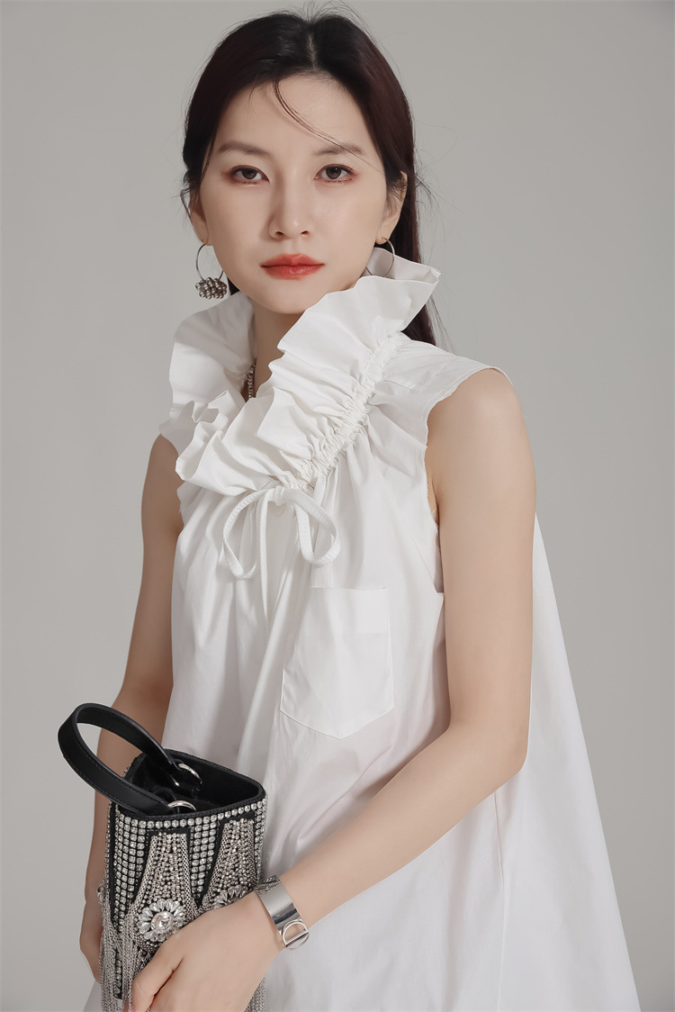 Áo kiểu dáng không tay, phong cách cổ điển với điểm nhấn là những đường vân hoa nổi được tạo hình tinh tế. Phần eo có dây rút điều chỉnh giúp ôn nhẹ vào cơ thể, tạo form dáng thanh thoát. Chất vải mềm mại, thoáng mát, thích hợp cho những ngày hè. Có thể mặc kết hợp với quần ống rộng hoặc chân váy dài để tạo nên vẻ đẹp dịu dàng và nữ tính. | Tên sản phẩm: Áo Sơ Mi Nữ Họa Tiết Hoa Hàng Mùa Hè - Thời Trang Nữ | Mã sản phẩm: K6505 - Giá: 880.000đ | Mã nhà sản xuất: GUDOR-G03Hình ảnh sản phẩm
