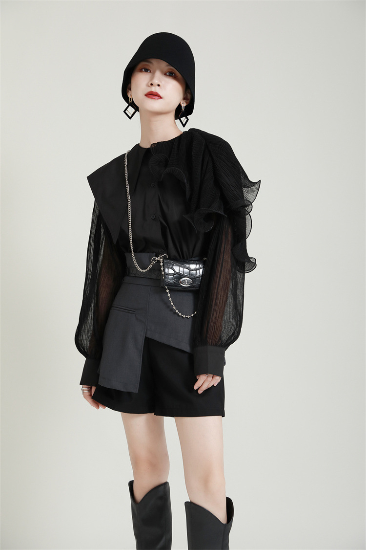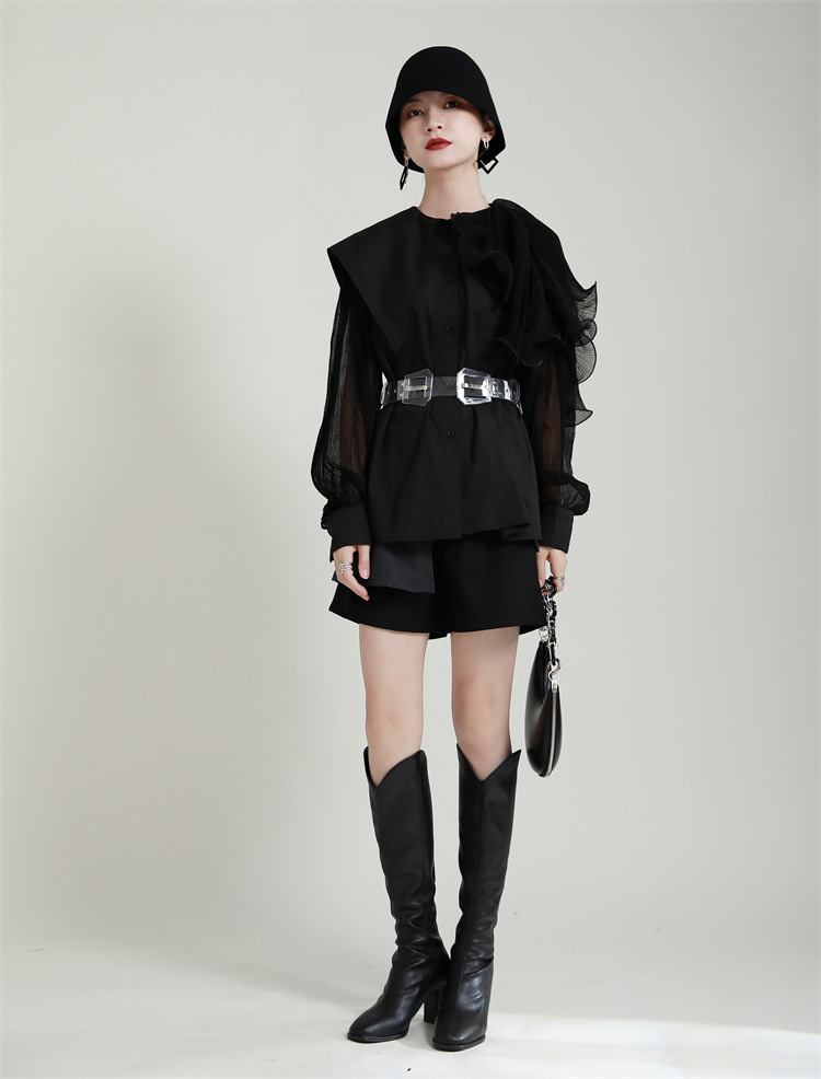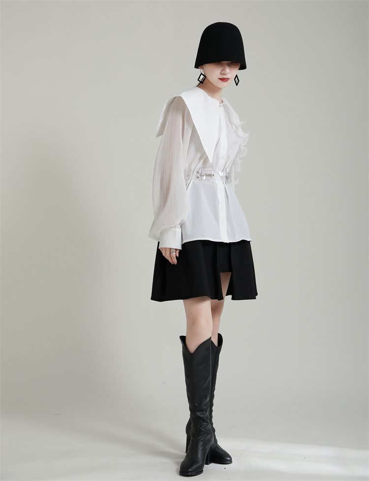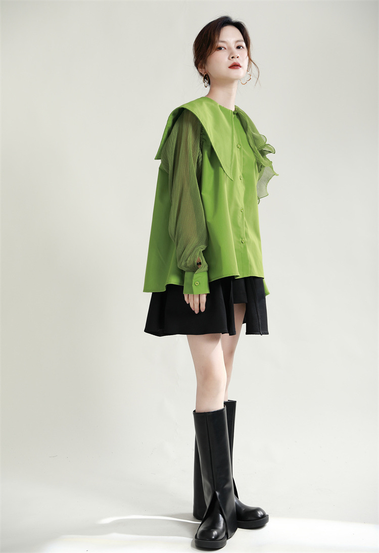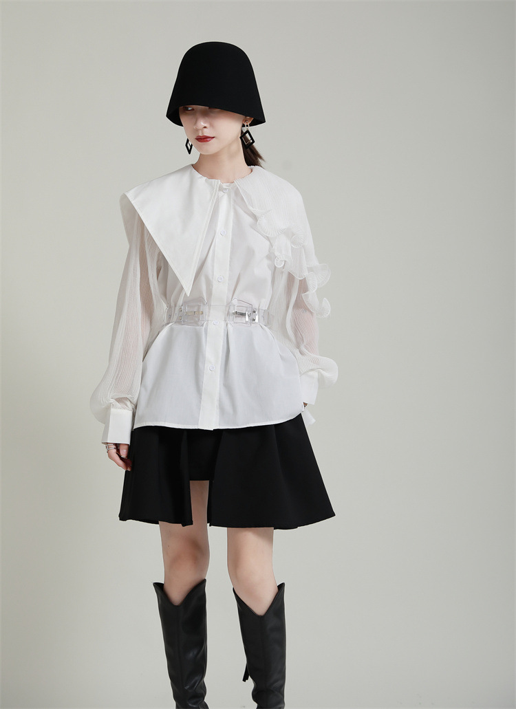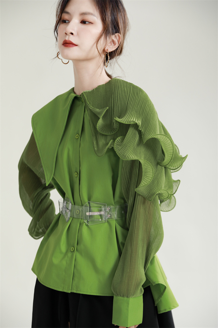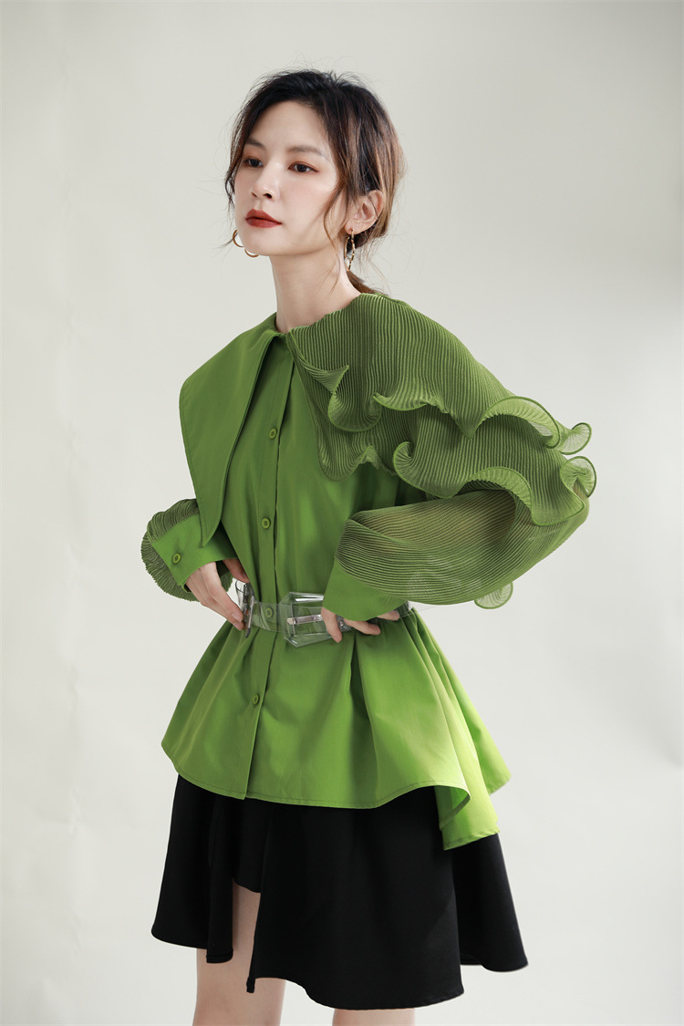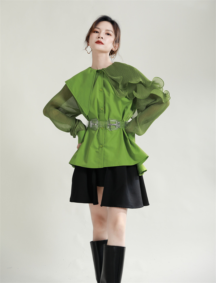 Áo kiểu dáng rộng tay dài, cổ bẻ với điểm nhấn là đường nhún tạo hình cánh sen cách điệu. Các mảng ghép phá cách kết hợp cùng thắt lưng đi kèm tôn lên vẻ nữ tính. Chất vải mềm mại mang đến sự thoải mái khi mặc. Phù hợp phối cùng quần ống rộng hoặc chân váy. Có thể mặc đi làm, đi chơi hoặc dự tiệc nhẹ. | Tên sản phẩm: Áo Sơ Mi Nữ Dài Tay Kín Cổ Hàng Mùa Xuân Thu Đông - Thời Trang Nữ | Mã sản phẩm: K6566 - Giá: 890.000đ | Mã nhà sản xuất: GUDOR-G03Hình ảnh sản phẩm