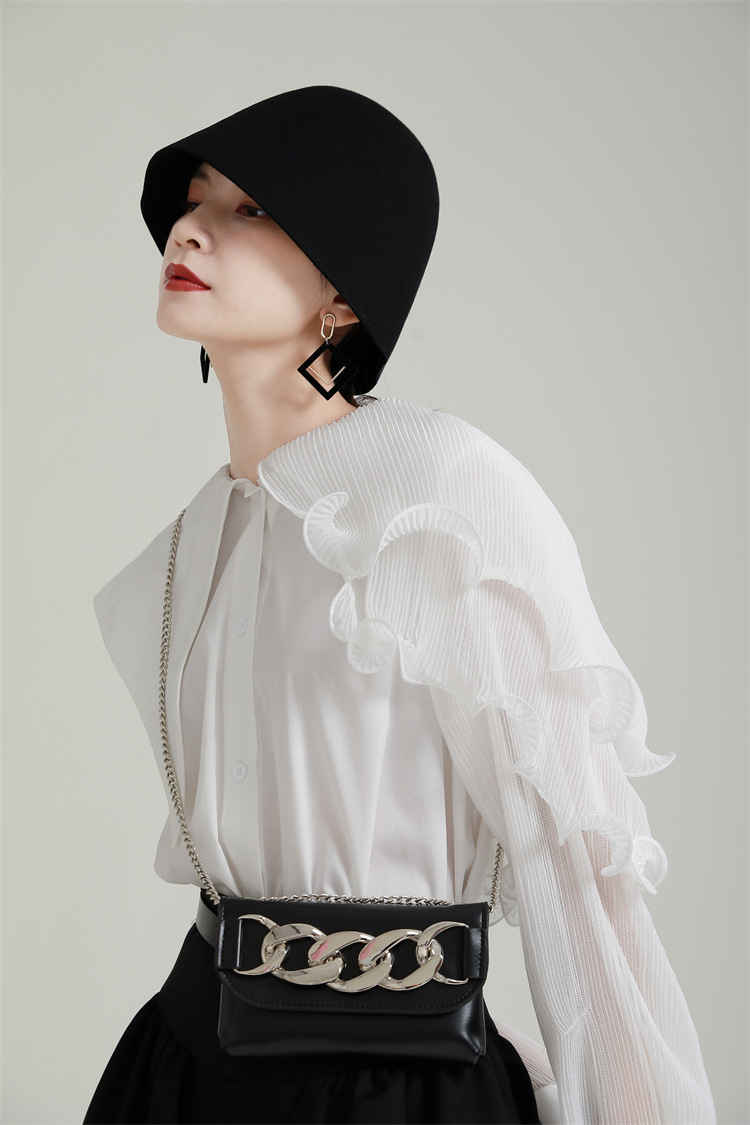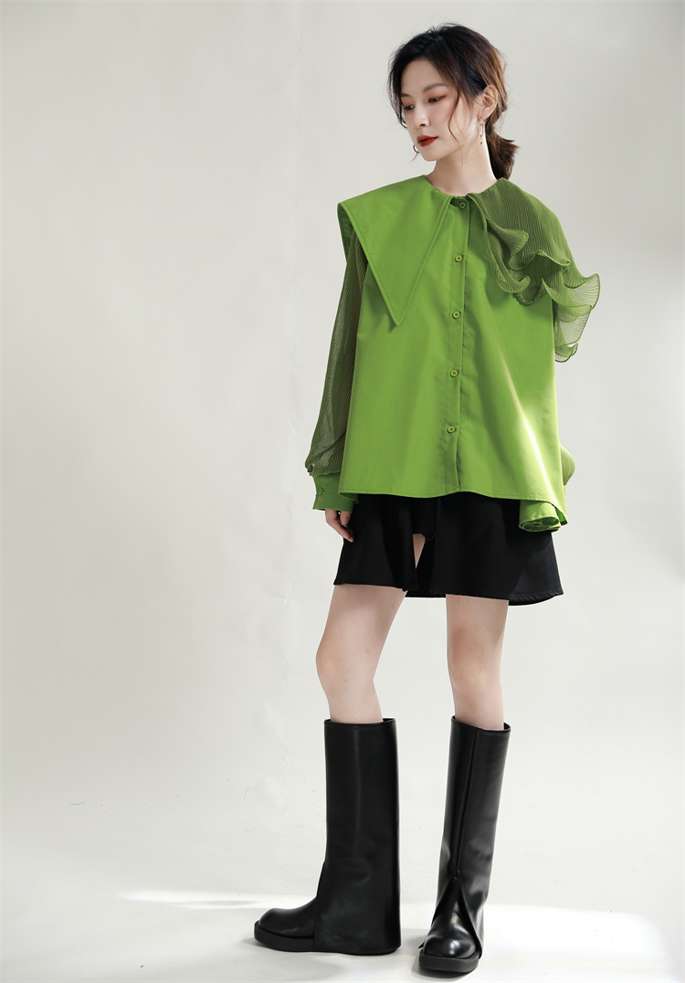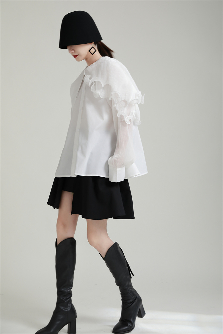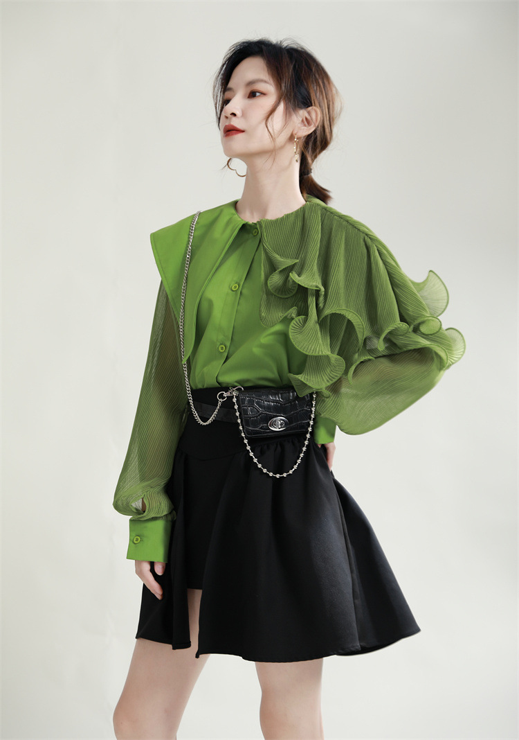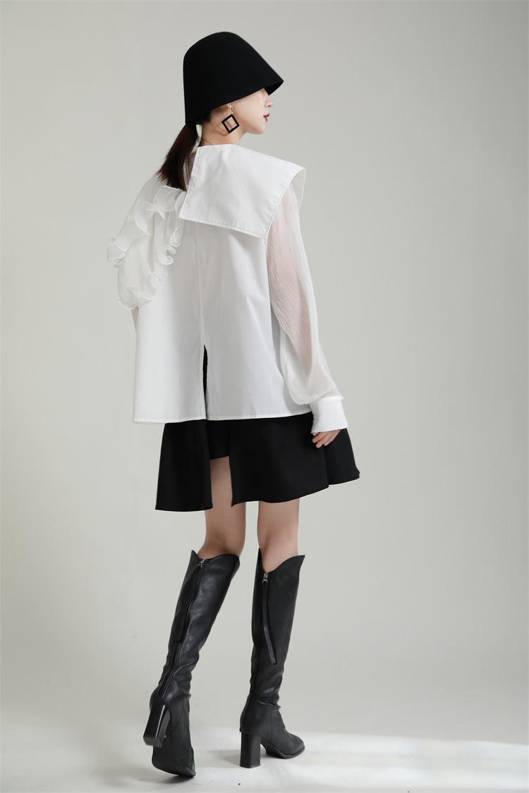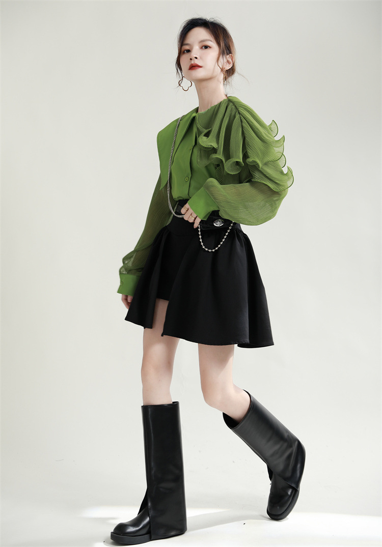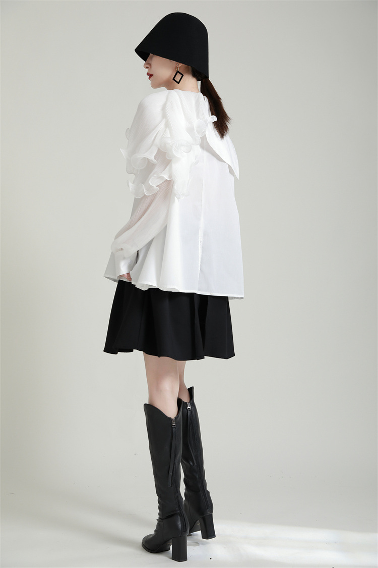 Áo kiểu dáng rộng tay dài, cổ bẻ với điểm nhấn là đường nhún tạo hình cánh sen cách điệu. Các mảng ghép phá cách kết hợp cùng thắt lưng đi kèm tôn lên vẻ nữ tính. Chất vải mềm mại mang đến sự thoải mái khi mặc. Phù hợp phối cùng quần ống rộng hoặc chân váy. Có thể mặc đi làm, đi chơi hoặc dự tiệc nhẹ. | Tên sản phẩm: Áo Sơ Mi Nữ Dài Tay Kín Cổ Hàng Mùa Xuân Thu Đông - Thời Trang Nữ | Mã sản phẩm: K6566 - Giá: 890.000đ | Mã nhà sản xuất: GUDOR-G03Hình ảnh sản phẩm
